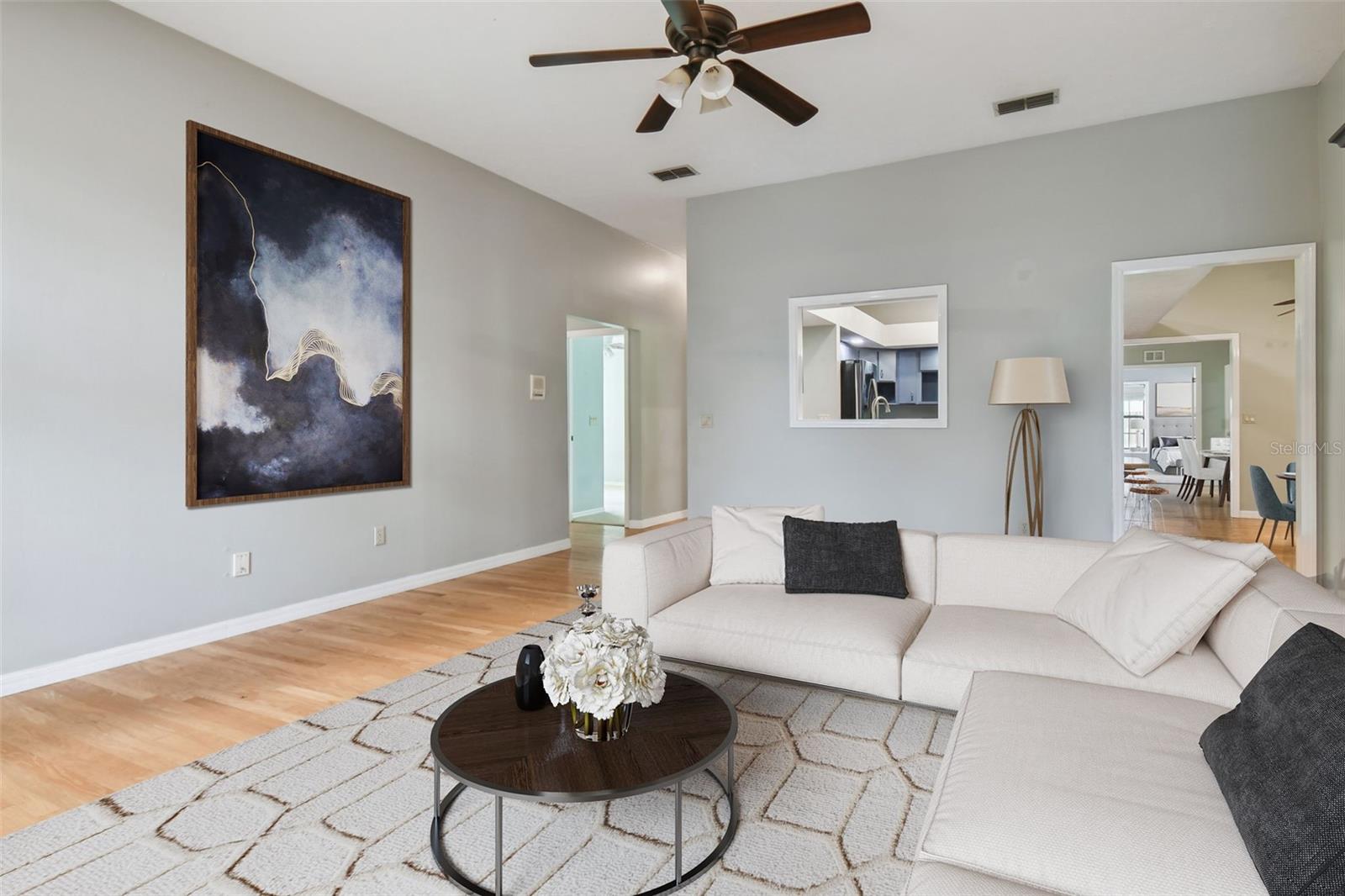 One or more photo(s) has been virtually staged. This well-maintained MOVE-IN ready home is located in the beautiful community of Hickory Hill. This 3,000 sq ft home features 4 beds, 3 baths and sits on a .30 acre lot w/no rear neighbors. Built in 1988, this ranch floor plan has many home improvements including: HVAC (2021), Hot Water Heater (2020), Roof (2012), Flooring, Exterior/Interior Paint, plus much more! The kitchen features stainless-steel appliances & a large pantry and sit at bar. French doors in the over-sized family room will lead you out to a large fully heated Sunroom that includes a deep 20 ft closet w/shelving for additional storage. This room is perfect for a home gym or game room. The 2nd living room features a wood burning stove and is located just off of the kitchen. All bedrooms have built in shelving/drawers and some w/sit in reading nooks. The Primary Bedroom features a large walk-in closet, stand up shower, dual sinks w/Corian countertops and a separate powder space. The additional baths feature Corian countertops w/stand up showers. The laundry room is located right off the kitchen before you head out to the garage and has a utility sink and cabinets. The spacious 2.5 car garage offers ample parking with storage cabinets and has an additional large parking pad perfect for a Boat or RV. NO HOA and NO CDD. Hickory Hill is conveniently located close to all major hospitals, schools, shopping, minutes away from I-75 and I-4. Come see this meticulously maintained home!