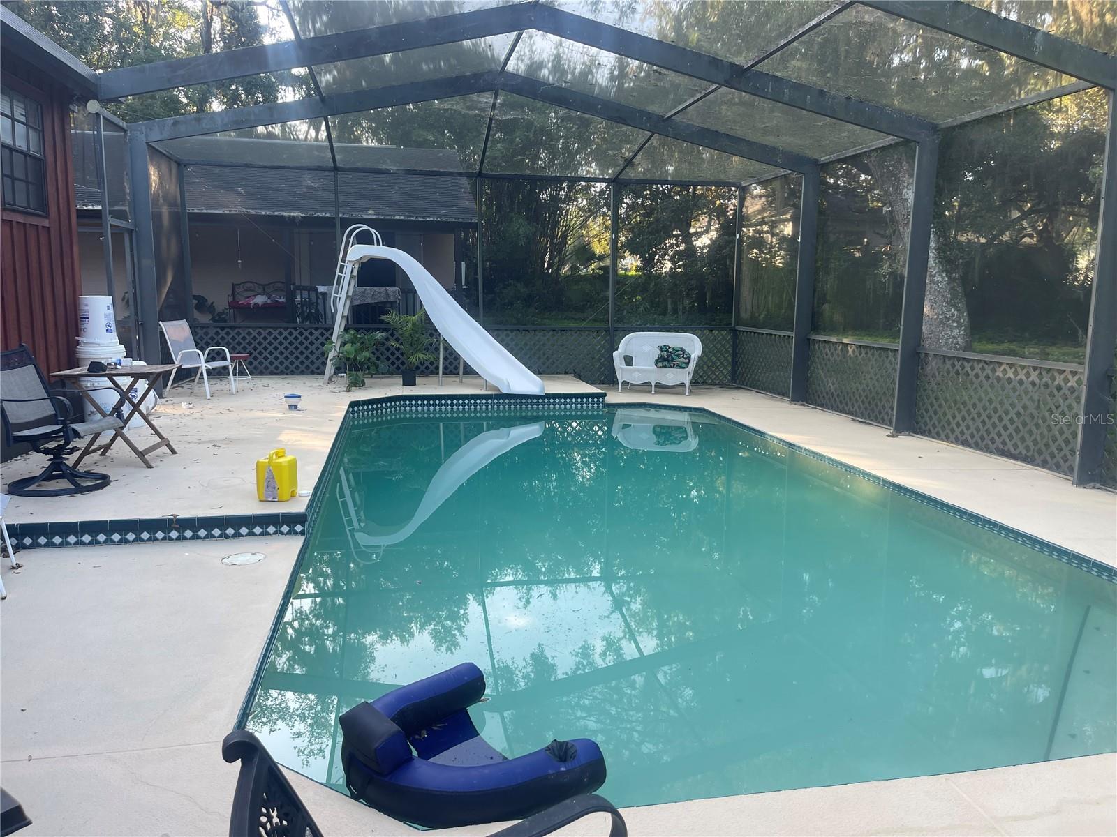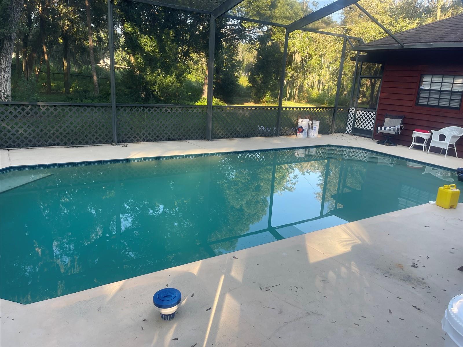 This beautiful 12+acres of land could be used in so many ways; family compound, small mobile home park, horse farm, cattle, a business, or sub divide and sell lots. SO many possibilities. This beautiful tree lined private entry is gated for privacy and leads to one of the gorgeous lakes on the property. You can have a day of fishing in your fishing boat, canoe, kayak or take a dip! There is a 2-bedroom, 1 bathroom home which features a cozy enclosed front porch, living room, large eating area off of the kitchen, a flex room that is multi-purpose with a sky light and family room. There is a sparkling pool with slide under a screened in lanai that is perfect for Florida’s hot days! There is plenty of room to add on to this house if you desire more square footage. Or live in the house and build another! So many options! This property also offers a 'mother-in-law suite' with a kitchen and bathroom with a stand-up shower. There is also a 29X22 garage area with lots of storage and an attached covered workshop/RV parking area with 220-volt power supply.