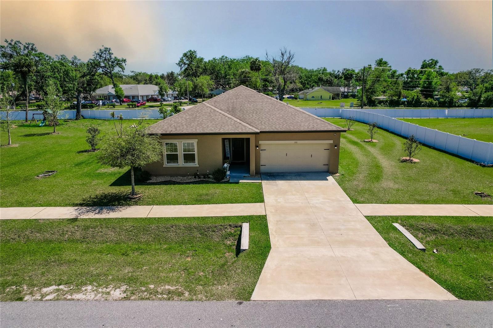 PRICE DROP !!!! This beautifully built home, completed in 2020, is the perfect blend of modern comfort and stylish living. The property boasts stunning updates throughout, with the roof and AC both replaced in 2020, ensuring worry-free maintenance for years to come. The spacious layout offers 1,979 square feet of heated living space, all crafted with attention to detail and quality finishes. As you step inside, you're greeted by an open and airy floor plan that includes a large living room, dining area, and a chef's kitchen, all seamlessly connected to one another. The high ceilings and the abundance of natural light flowing through the windows make the space feel even more expansive. The kitchen is a dream with solid wood cabinets, stone countertops, and ample room for cooking and entertaining. The island provides additional prep space, and the eat-in kitchen area is perfect for casual meals. The home features a well-thought-out split-bedroom design, with the primary bedroom offering a spacious retreat. With a walk-in closet and an en-suite bathroom, this space feels like a personal sanctuary. The other three bedrooms are generously sized and flexibility to accommodate family, guests, or a home office. Outside, the property is just as impressive. The lush green yard, coupled with an irrigation system, ensures that the landscaping stays beautiful year-round. There’s also a driveway and an oversized garage, providing plenty of space for parking and storage. Plus, you'll enjoy the peace of mind that comes with a home in a flood zone X, meaning you are not required to carry flood insurance. This home is not only move-in ready but also incredibly energy-efficient, featuring central air conditioning and a public water and sewer system. Located on nearly half an acre of land, there's ample space to enjoy the outdoors, whether it's gardening, hosting a barbecue, or just relaxing in your private oasis. This modern home combines the convenience of new construction with thoughtful upgrades and finishes that make it stand out. With a prime location, top-notch amenities, and the latest updates, this is the ideal place to call home for anyone looking for comfort, style, and peace of mind.