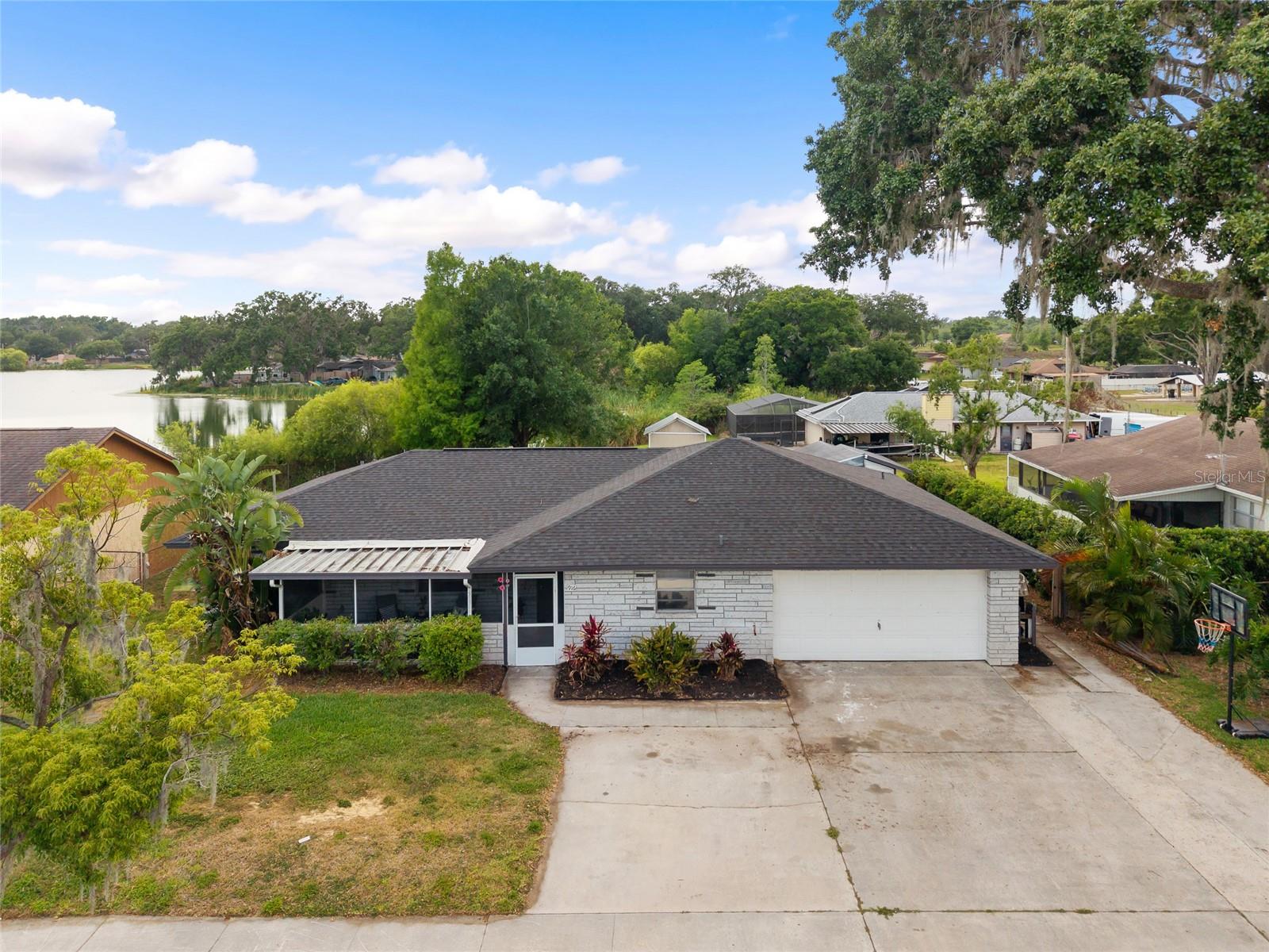 Welcome to your SPACIOUS & beautifully UPDATED 4 BED, 2 BATH, RANCH STYLE HOME with tranquil LAKE VIEWS! The thoughtfully designed 2404 sq ft home sits on a FENCED QUARTER ACRE LOT and is ideal for LARGE FAMILIES, MULTIGENERATIONAL living or as an AirBnB Investment home. Step inside to discover a light and airy floor plan featuring all new FLOORING (2022) and FRESH PAINT throughout. The FORMAL DINING ROOM showcases elegant PLANTATION SHUTTERS & NEW LIGHT FIXTURE (2024), while a versatile BONUS ROOM, currently serving as a homeschool space, is perfect for remote work, hobbies, or play. The 4th BEDROOM is set up as a dedicated OFFICE with PLANTATION SHUTTERS, BUILT-IN SHELVING, WALK-IN CLOSET & VIEW OF THE LAKE. The 3rd BEDROOM not only has a view of the lake but features a PRIVATE EXTERIOR DOOR leading to the backyard which is ideal for in-laws, guests, or older teens seeking independence. It also has a large WALK-IN CLOSET that is currently being used as a teenage gamers space! You’ll enjoy cooking and entertaining with the open concept, COMPLETELY REMODELED KITCHEN (2022) / living room combo with EAT-IN area, KITCHEN ISLAND for serving, GRANITE COUNTERS, & STAINLESS STEEL APPLIANCES. Both BATHROOMS were also REMODELED in 2022 & featured STYLISH CABINETS, GRANITE COUNTERS & TILED TUB & SHOWER SURROUNDS. Parking won’t be an issue with your EXTRA LARGE DRIVEWAY that can fit 6-8 vehicles! The real peace & serenity comes when you step outside into your WEST FACING FENCED BACKYARD overlooking a serene lake where you will witness the most UNFORGETTABLE FLORIDA SUNSETS! Get creative in this large space & add a pool, garden, outdoor kitchen or play area to make watching those sunsets even more amazing! MAJOR UPDATES include: ROOF & WATER HEATER (2022), A/C (2024), COMPLETELY NEW SEPTIC SYSTEM & DRAINFIELD (2024). MOST IMPORTANT TO NOTE is this home had NO FLOODING OR DAMAGE during the 2024 hurricanes! The Community has a private access area for lake access to fish, kayak or peddle boat. They also have a basketball court & picnic pavilion available to host gatherings. Located just minutes from shopping and dining, and offering EASY ACCESS TO I-4 and I-75, this home is a rare opportunity to enjoy space, flexibility, and peace of mind all in one place. Don’t miss out, schedule your private tour today!
