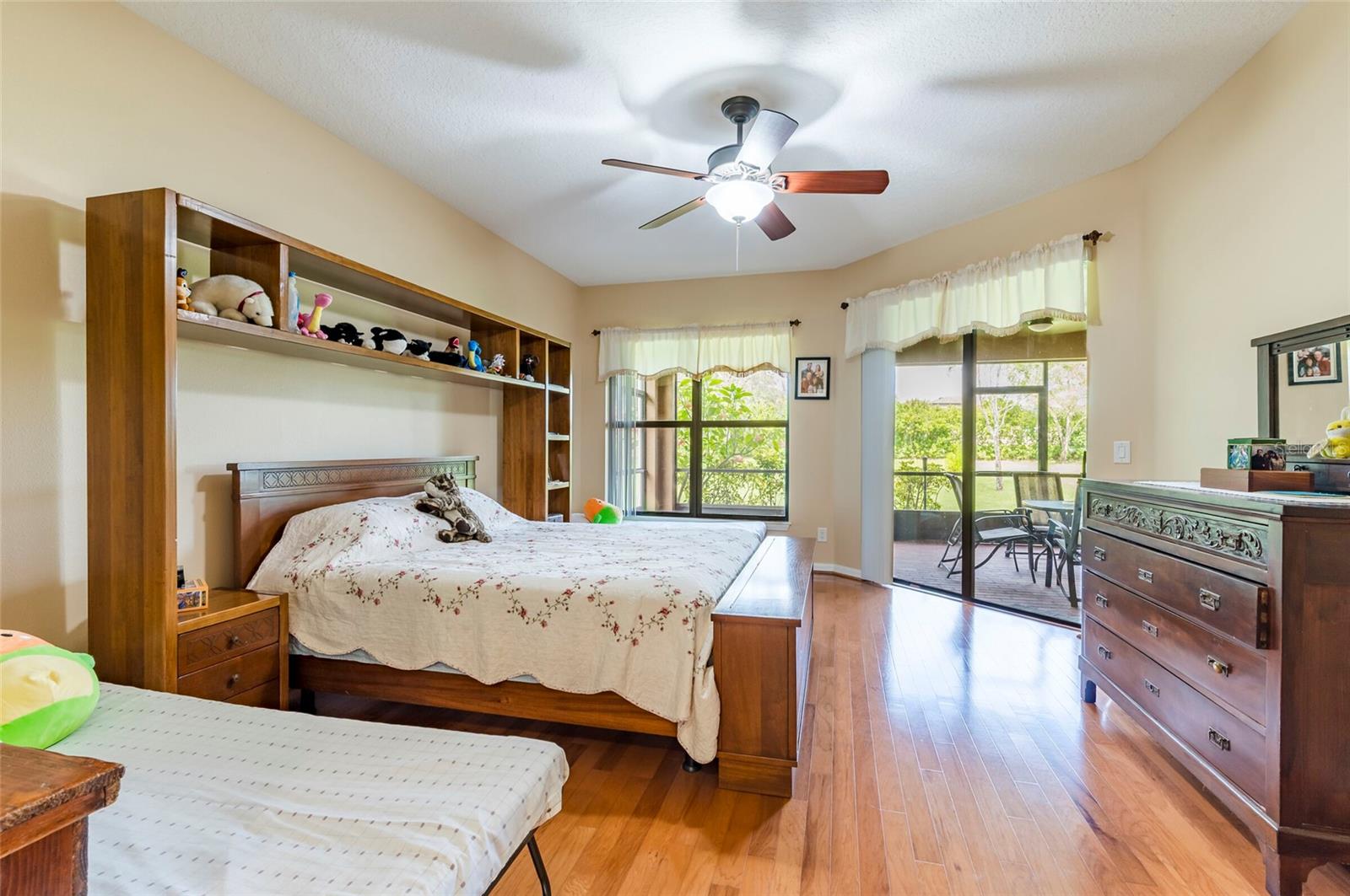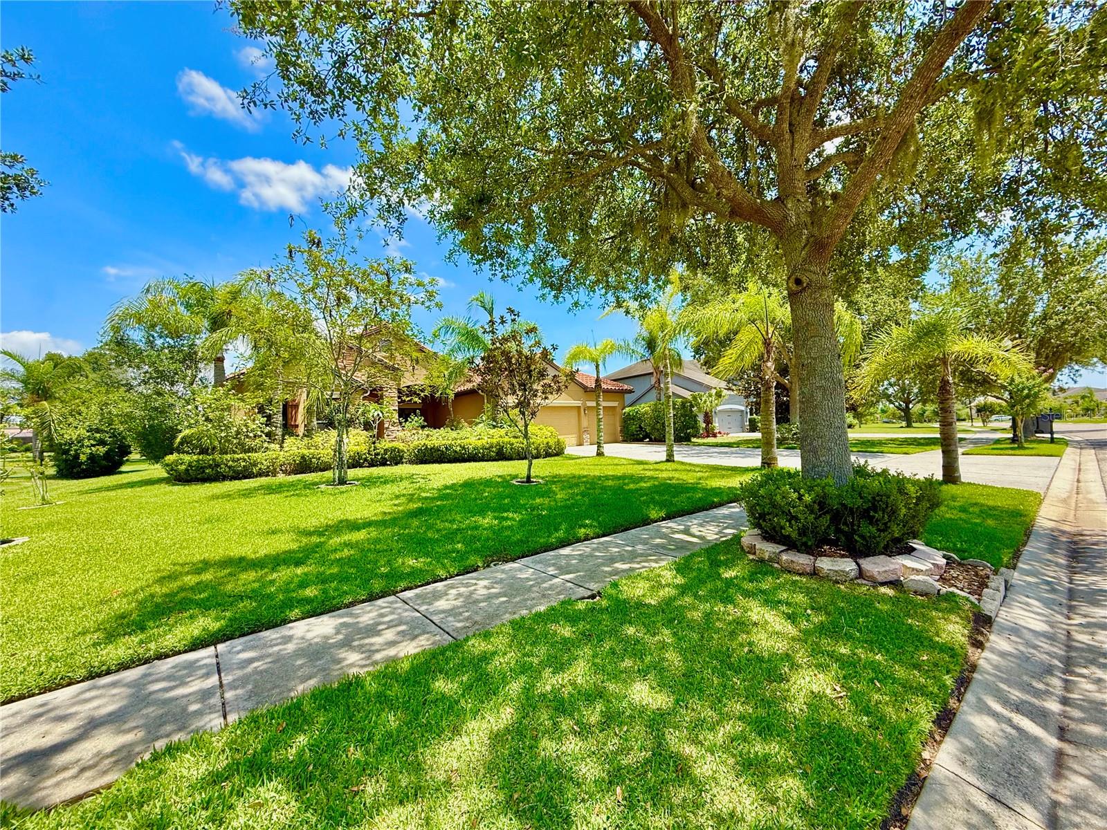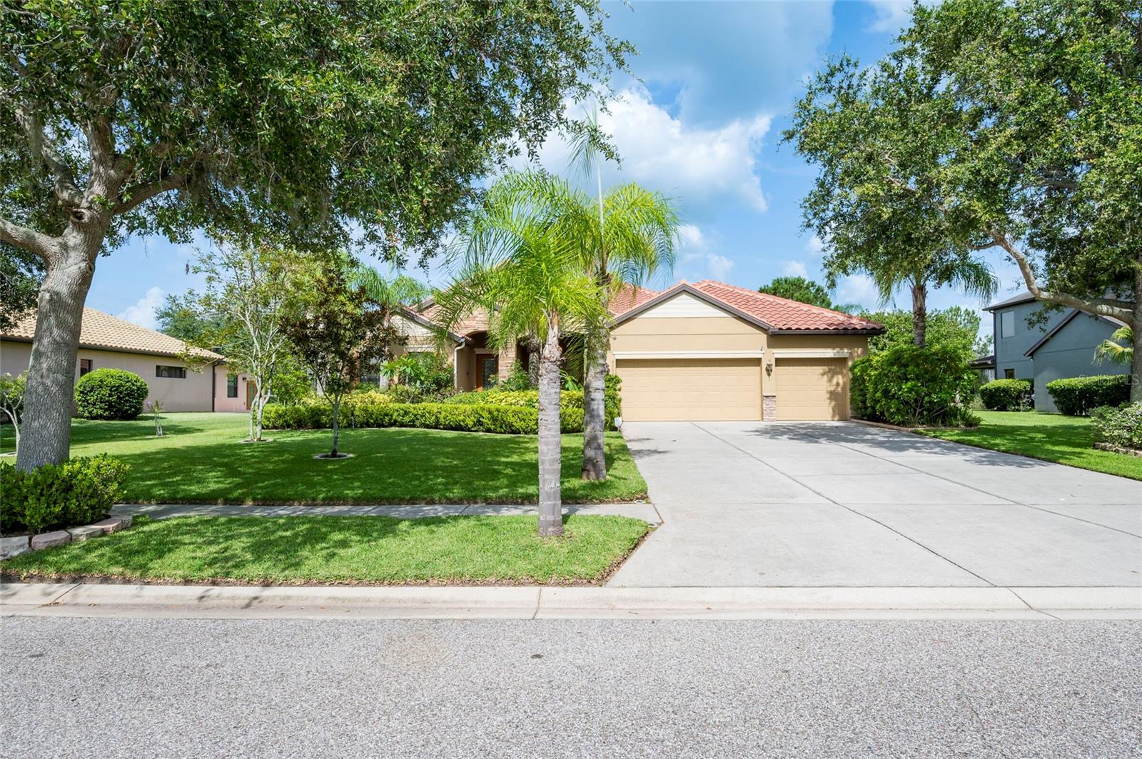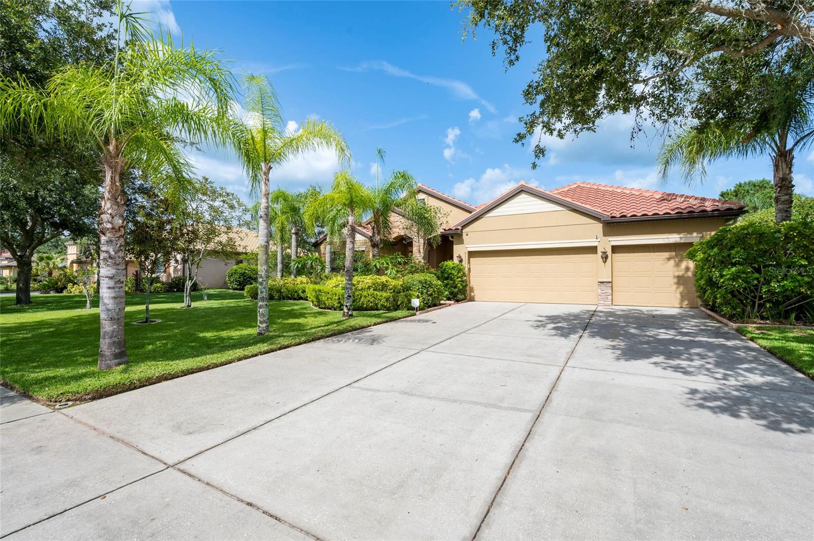 Step into this stunning 5-bedroom, 3-bathroom residence nestled on a spacious half-acre lot in the highly sought-after gated community of Toulon. This beautifully maintained home boasts curb appeal with a large, professionally landscaped yard and a classic Spanish tile roof. Inside, you’ll find an immaculate interior featuring elegant ceramic tile and rich hardwood floors throughout. The thoughtfully designed floor plan includes a spacious kitchen with stone countertops, ample cabinetry, and a large island—perfect for entertaining. The home offers multiple living spaces including a cozy family room and a formal living room, ideal for both relaxing and hosting guests. Retreat to the luxurious master suite complete with a spa-like bathroom featuring a garden tub, separate walk-in shower, and dual walk-in closets. The additional bedrooms are generously sized and filled with natural light. Enjoy Florida living at its best on the screened-in lanai overlooking the expansive backyard. Other features include a 3-car garage, an irrigation system powered by a private well, and sidewalks throughout the community. The A/C unit was replaced in 2020 for added peace of mind. Best of all, this home comes with NO CDD fees and offers unbeatable convenience—just 3.2 miles from I-75 and 4 miles from I-4, making your daily commute a breeze.