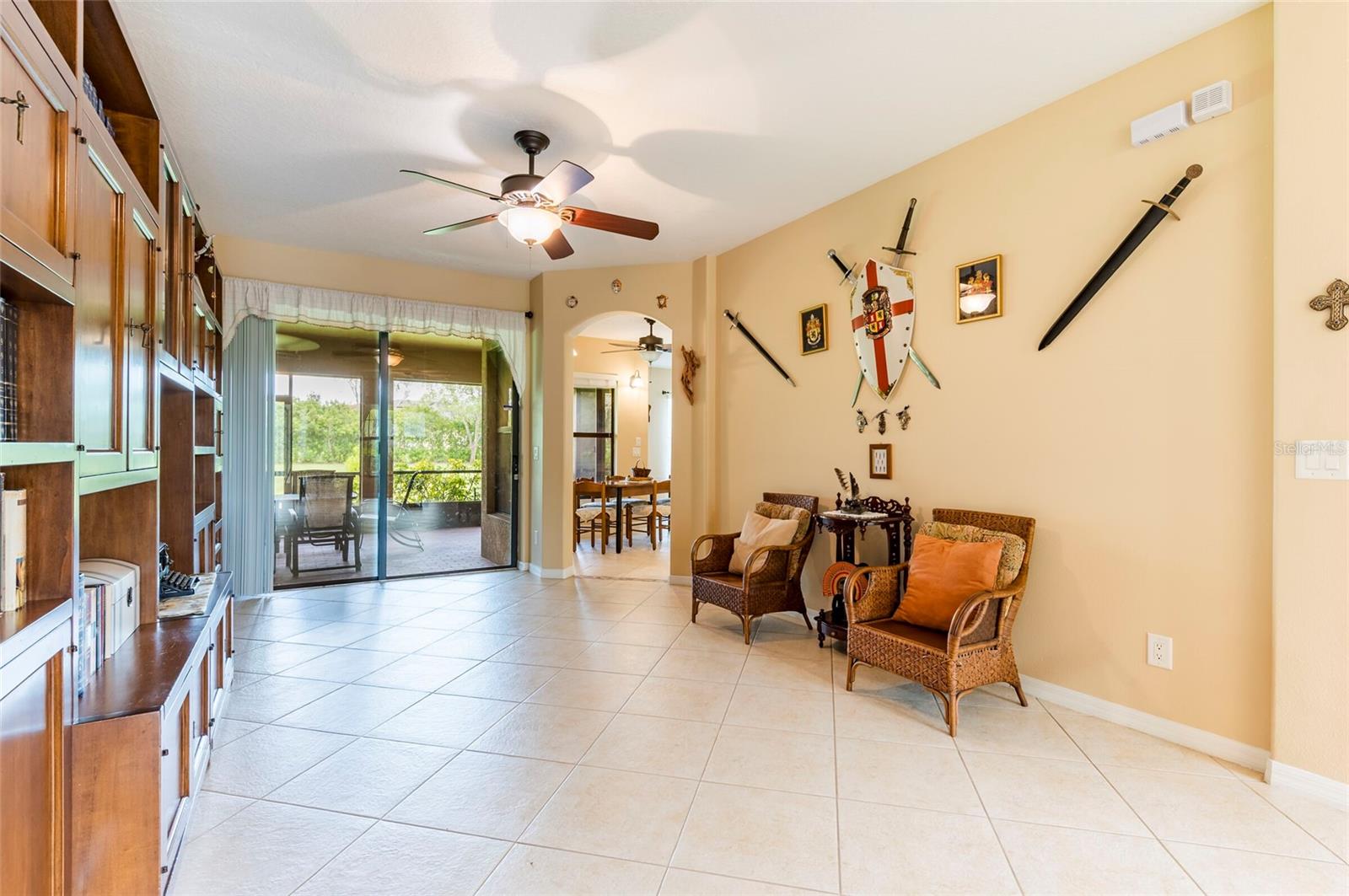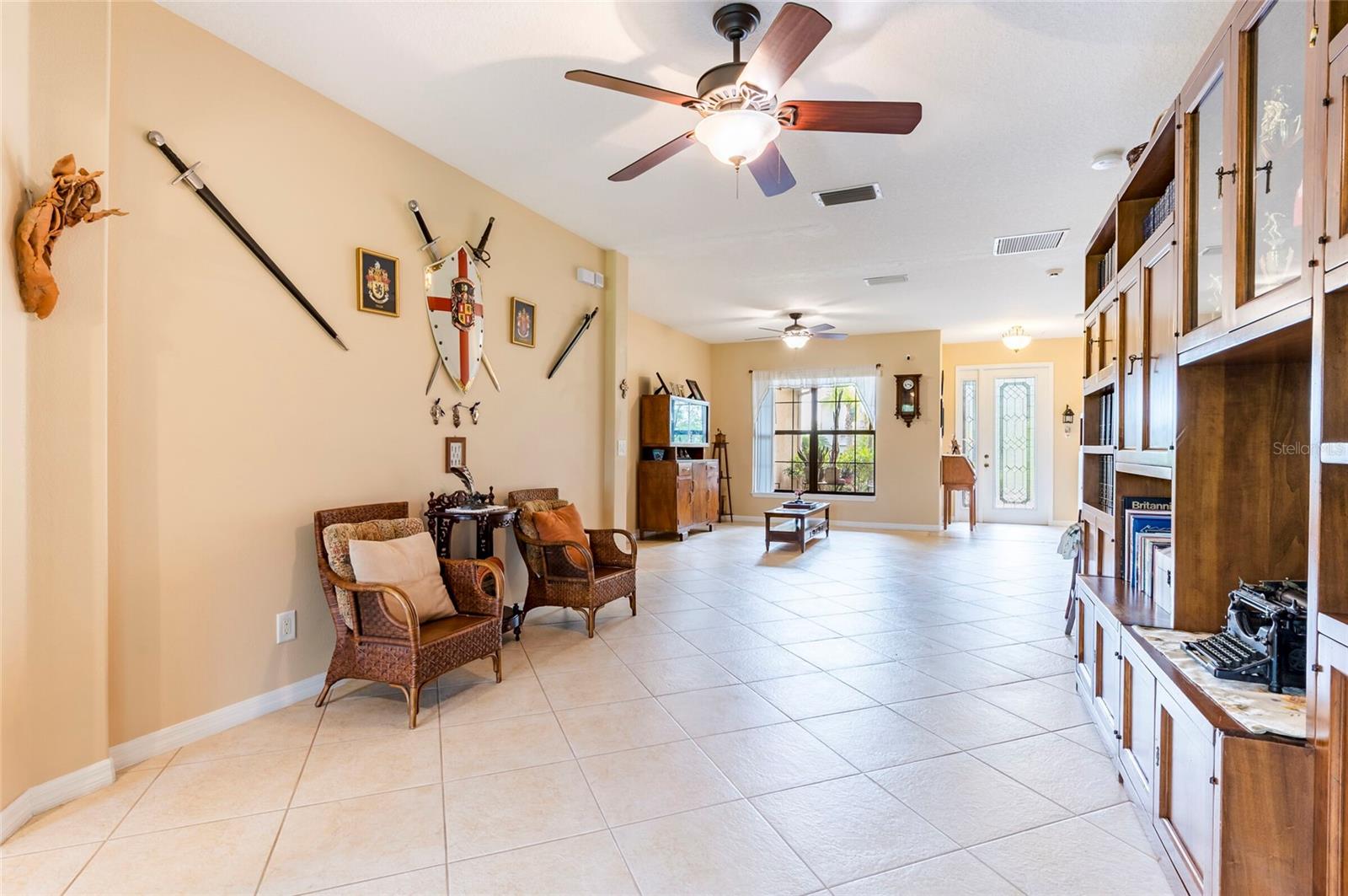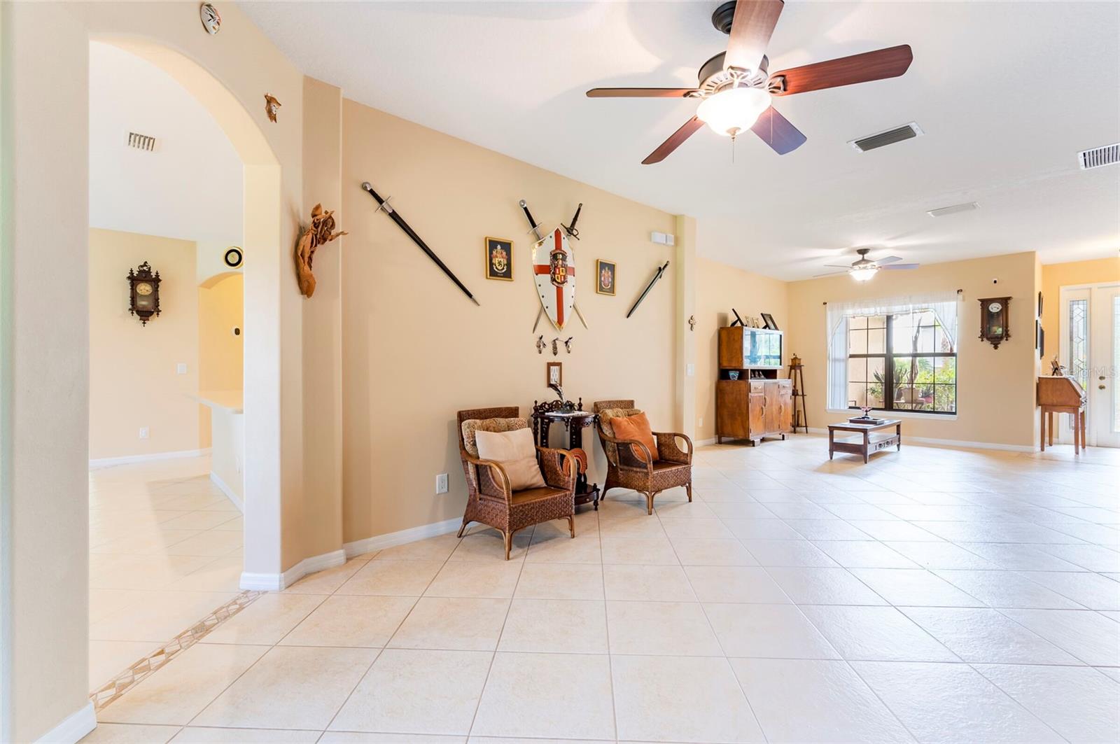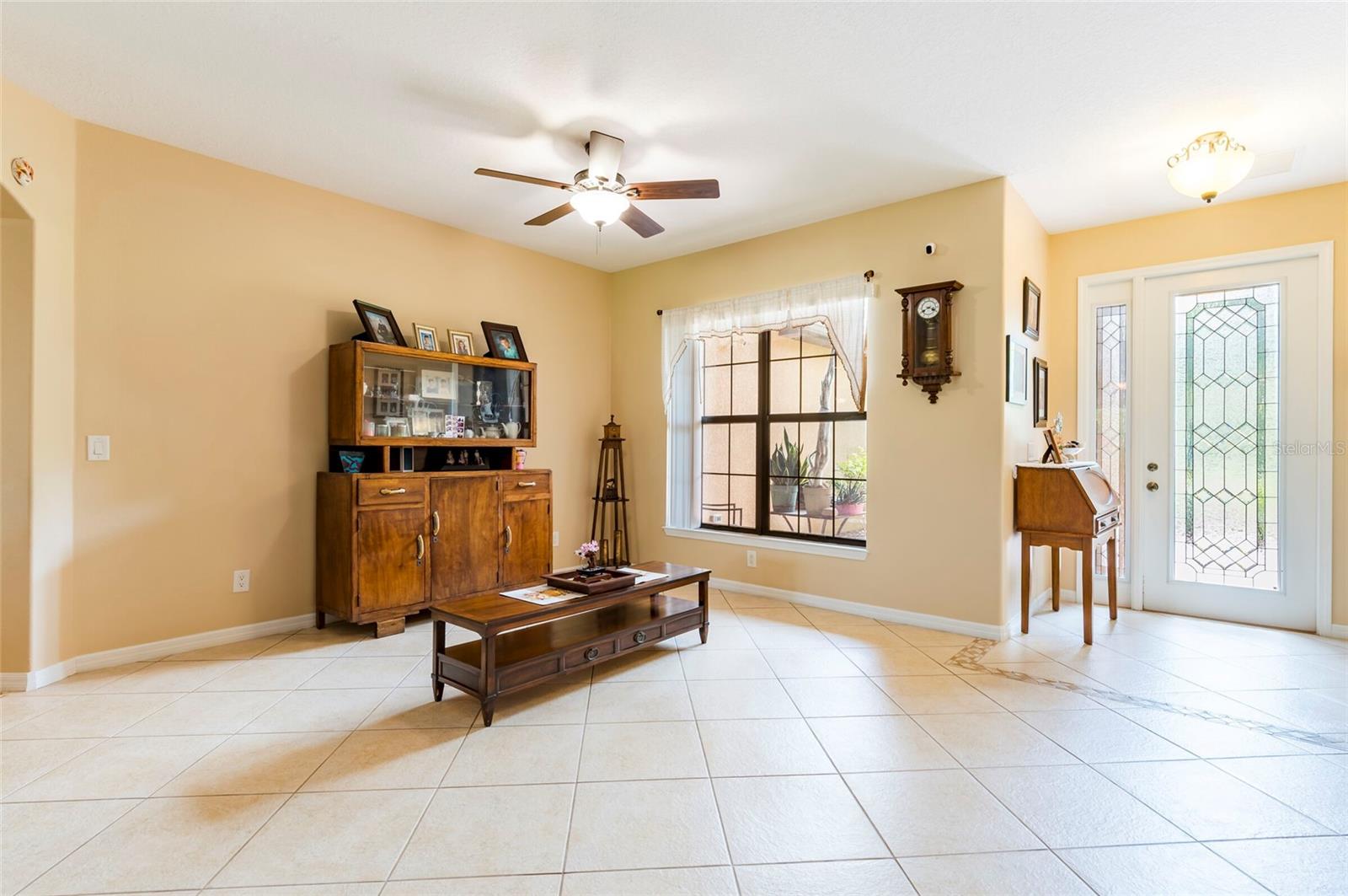Step into this stunning 5-bedroom, 3-bathroom residence nestled on a spacious half-acre lot in the highly sought-after gated community of Toulon. This beautifully maintained home boasts curb appeal with a large, professionally landscaped yard and a classic Spanish tile roof. Inside, you’ll find an immaculate interior featuring elegant ceramic tile and rich hardwood floors throughout. The thoughtfully designed floor plan includes a spacious kitchen with stone countertops, ample cabinetry, and a large island—perfect for entertaining. The home offers multiple living spaces including a cozy family room and a formal living room, ideal for both relaxing and hosting guests. Retreat to the luxurious master suite complete with a spa-like bathroom featuring a garden tub, separate walk-in shower, and dual walk-in closets. The additional bedrooms are generously sized and filled with natural light. Enjoy Florida living at its best on the screened-in lanai overlooking the expansive backyard. Other features include a 3-car garage, an irrigation system powered by a private well, and sidewalks throughout the community. The A/C unit was replaced in 2020 for added peace of mind. Best of all, this home comes with NO CDD fees and offers unbeatable convenience—just 3.2 miles from I-75 and 4 miles from I-4, making your daily commute a breeze.