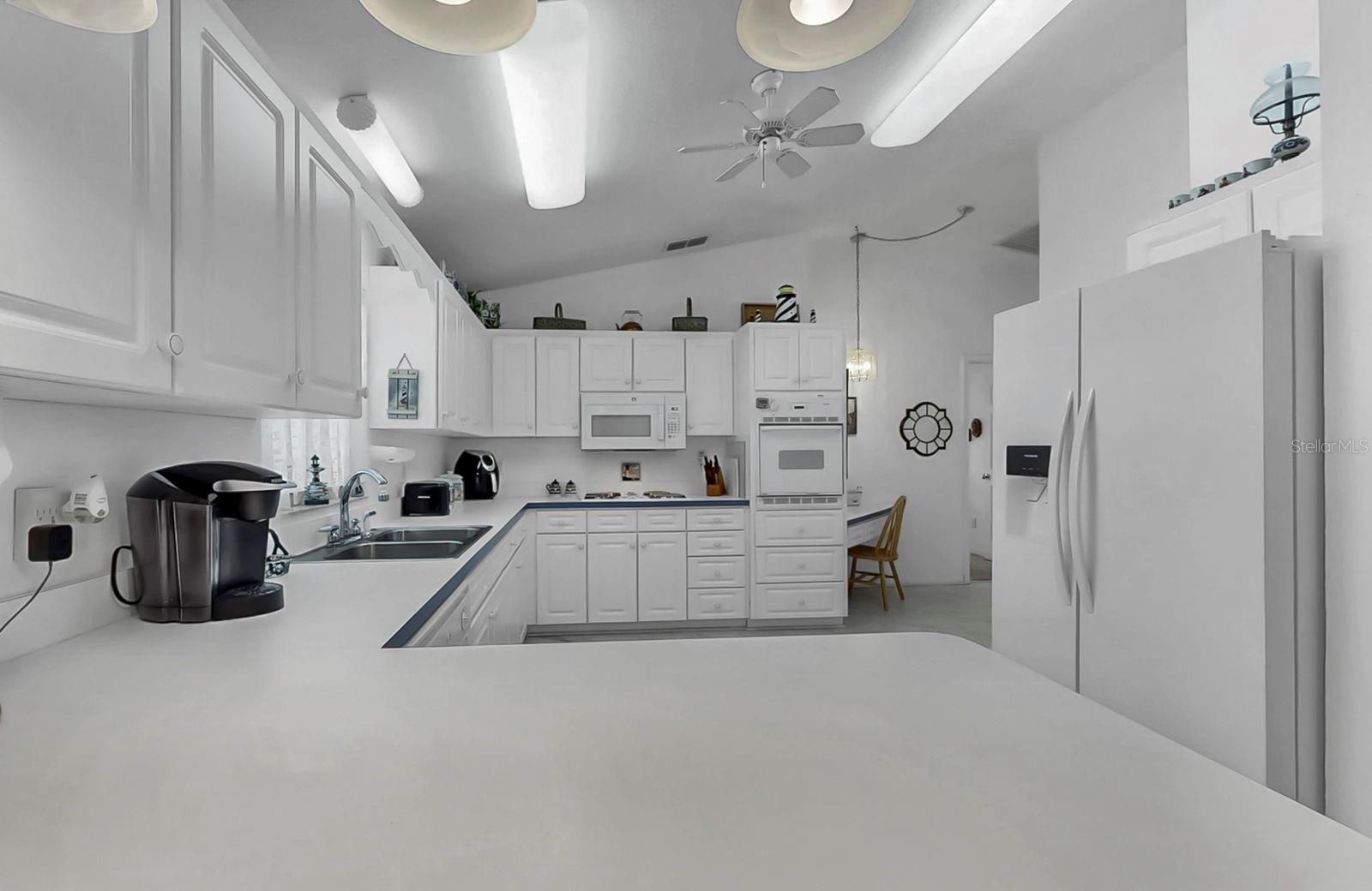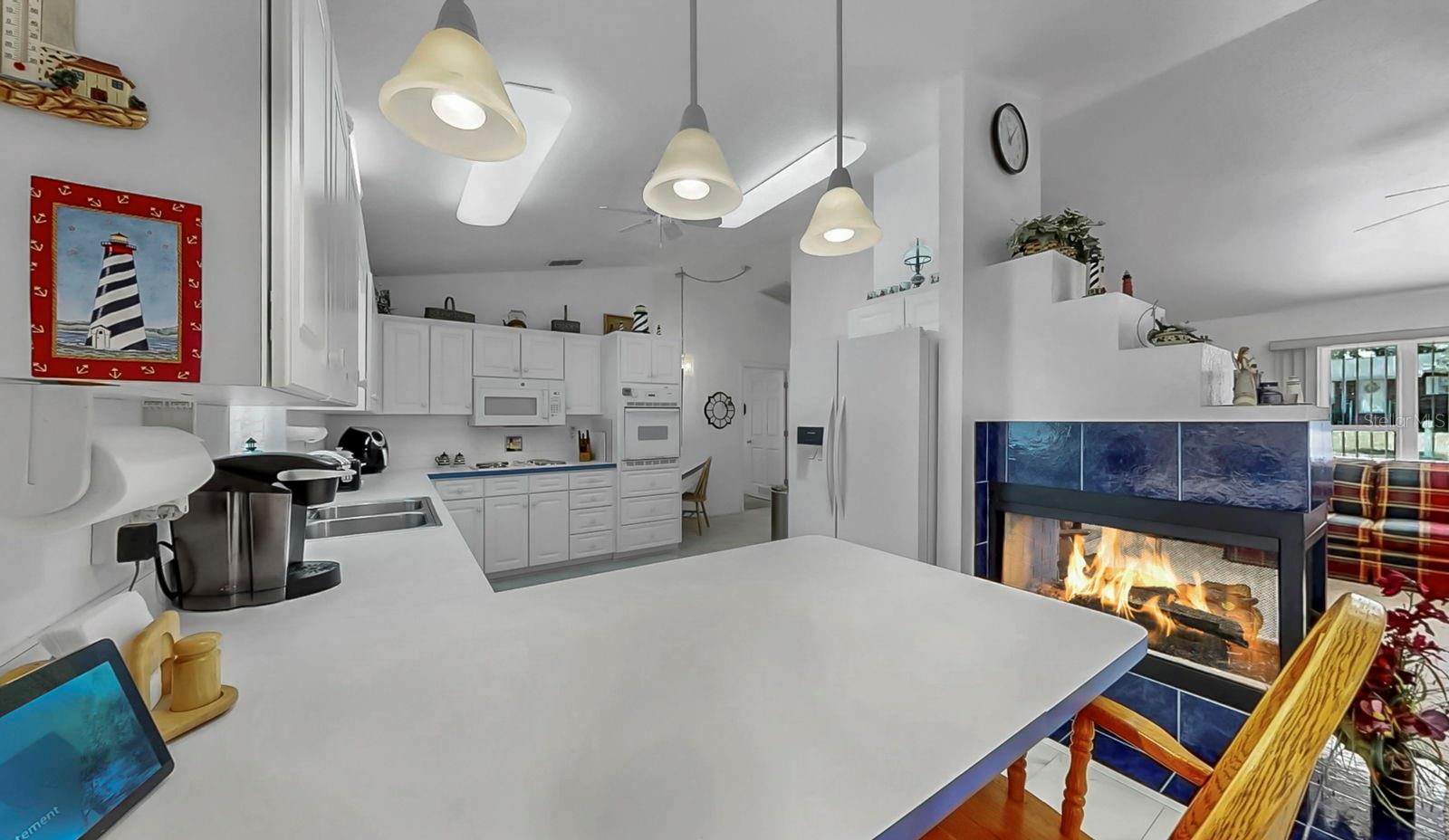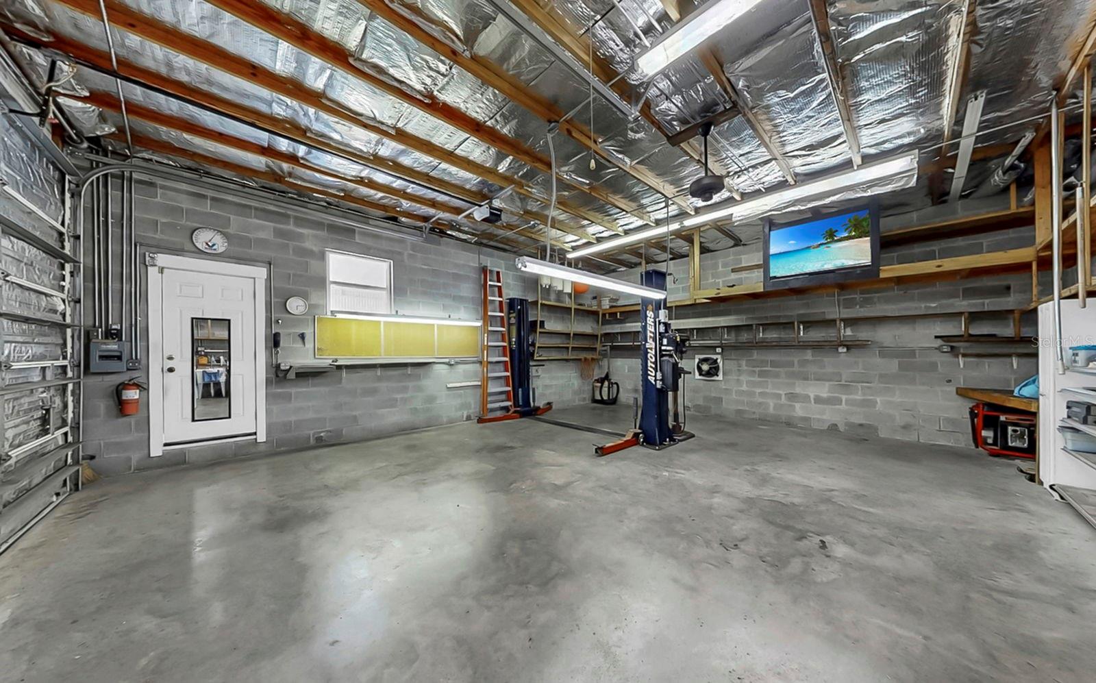 Welcome to this cherished and well-maintained 3-bedroom, 2-bath home offering exceptional value and versatility. Designed for both comfort and entertaining, the spacious living and dining areas flow seamlessly off the kitchen, with a cozy fireplace serving as the heart of the home. The open kitchen features a wall oven and newer appliances, ideal for everyday living and hosting gatherings. The generous owner’s retreat is conveniently located near the kitchen and offers it's own access to the back lanai—perfect for relaxing mornings or quiet evenings. Step down from the enclosed, air-conditioned lanai into the backyard and discover this property's standout feature: a large, air-conditioned workshop garage equipped with a wash tub sink, refrigerator, TV, car lift, bench grinder, and drill press—an incredible space for hobbyists, car enthusiasts, or additional storage. Adding to the home’s appeal are both attached and detached garages, two carports, a well for irrigation, fenced yard, and an electric side gate, providing ample parking and secure access. Thoughtfully cared for and full of potential, this home is ready for its next owner to create lasting memories for years to come.