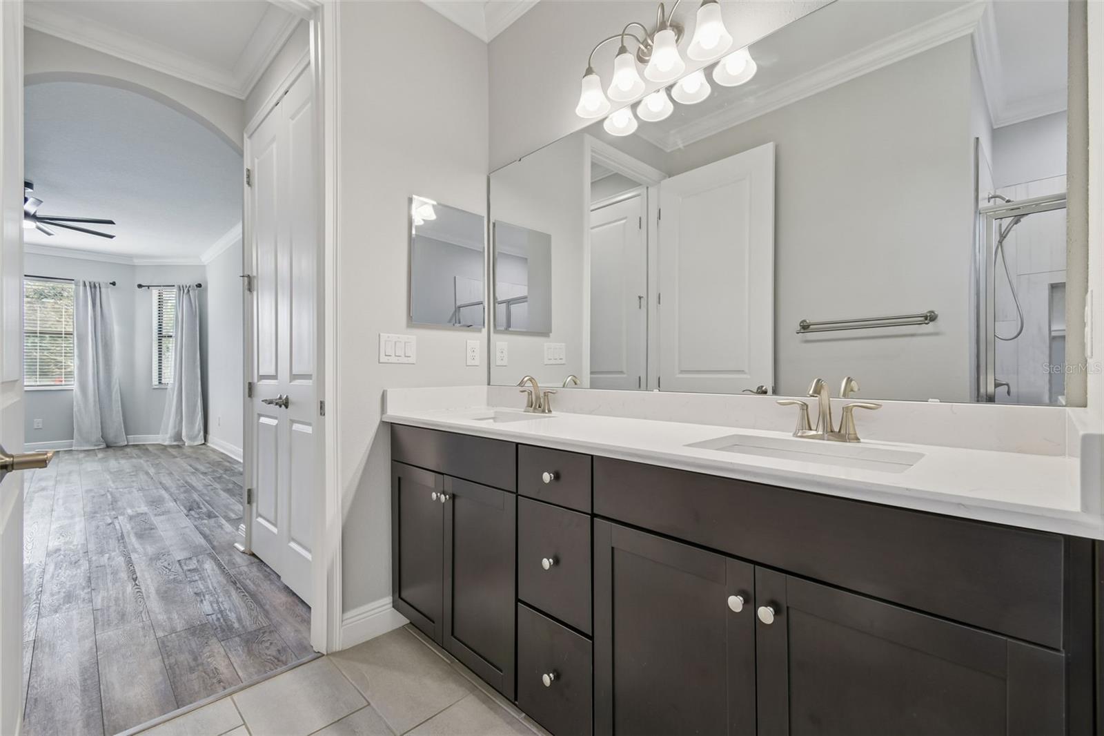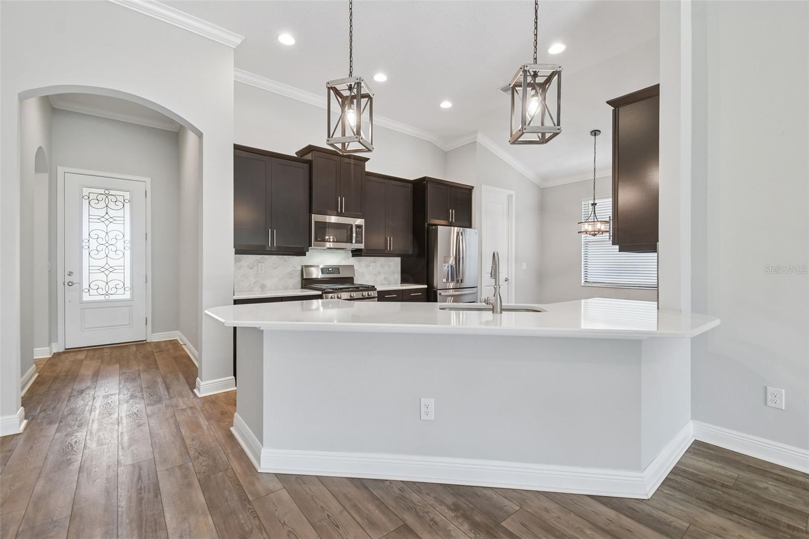 Tucked within a gated community, this home welcomes you with a sense of peace and privacy from the moment you arrive. Thoughtfully designed and lovingly maintained, this 4-bedroom, 2-bath residence offers comfort, warmth, and ease in every space—a place where everyday moments feel meaningful. Wide luxury vinyl plank flooring flows effortlessly from room to room, while tile bathrooms and crown molding throughout add a timeless, finished touch. At the heart of the home, the kitchen invites connection, featuring quartz countertops, GE Cafe stainless steel appliances, and a gas range—perfect for morning coffee, shared meals, and conversations that linger. The primary suite offers a calming retreat at the end of the day, complete with a custom California Closet that brings ease and organization to your daily routine. In the living room, an electric fireplace creates a soft, welcoming glow—ideal for quiet evenings or gathering with those you love. The extra-wide garage with an 8-foot door is designed for modern living, featuring a Stage 2 Ford Fast Charger, compatible with electric vehicles using the proper attachment. Step outside and imagine relaxed evenings spent grilling and entertaining, with a gas hookup already in place and pre-plumbed for a future outdoor kitchen, ready when you are. The home backs to a community drainage pond that fills during certain times of the year, creating a sense of openness and privacy with no direct rear neighbors. Perfectly positioned, this home offers easy access to MacDill Air Force Base, I-4, I-75, shopping, dining, and everyday conveniences, while Tampa’s downtown attractions and beautiful beaches are just a drive away. With solar panels and a transferable warranty, this home provides not only beauty, but peace of mind through lower electric bills and thoughtful efficiency. Meticulously cared for and truly move-in ready, this isn’t just a house—it’s a place to settle in, feel at home, and begin your next chapter.