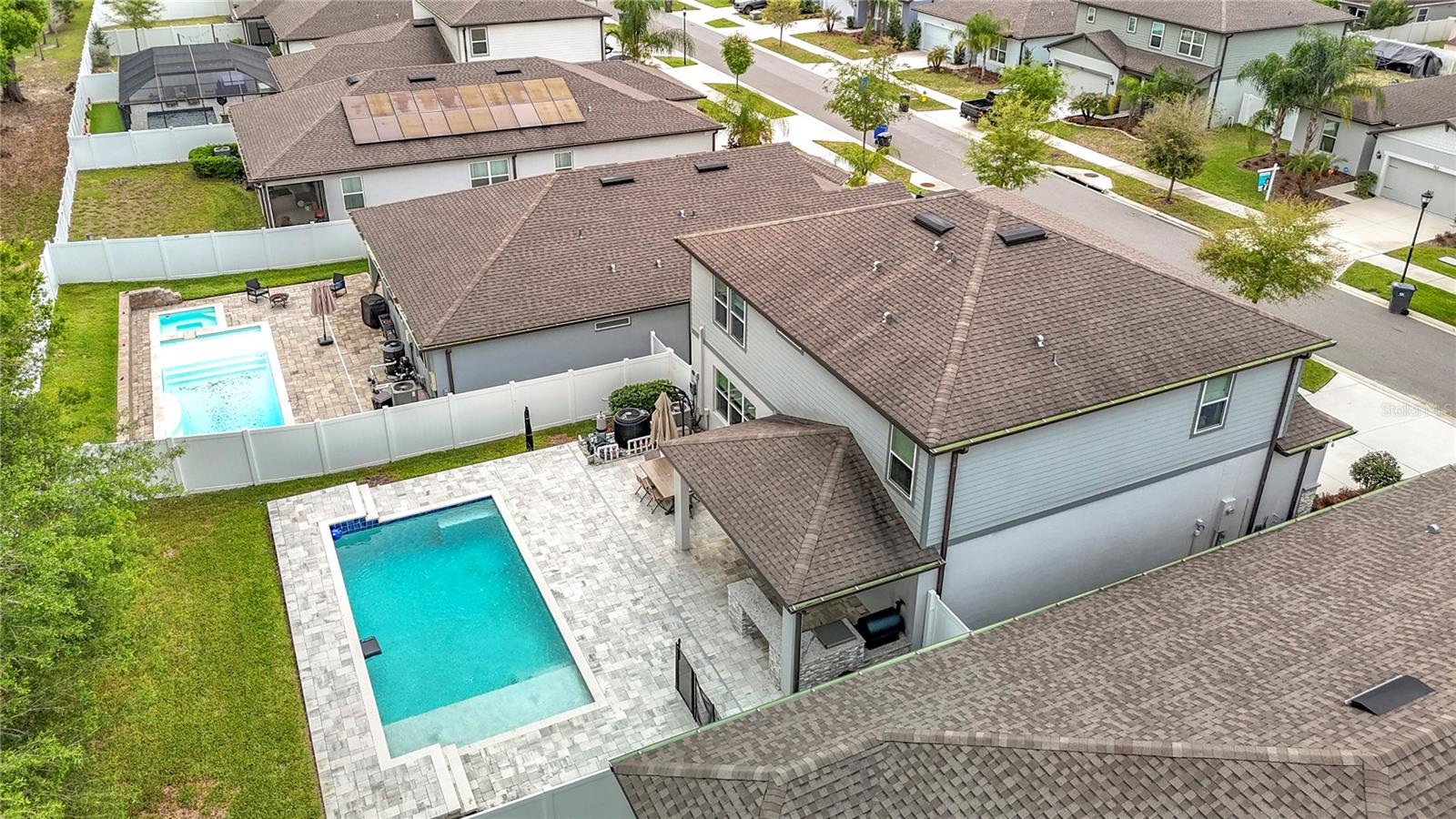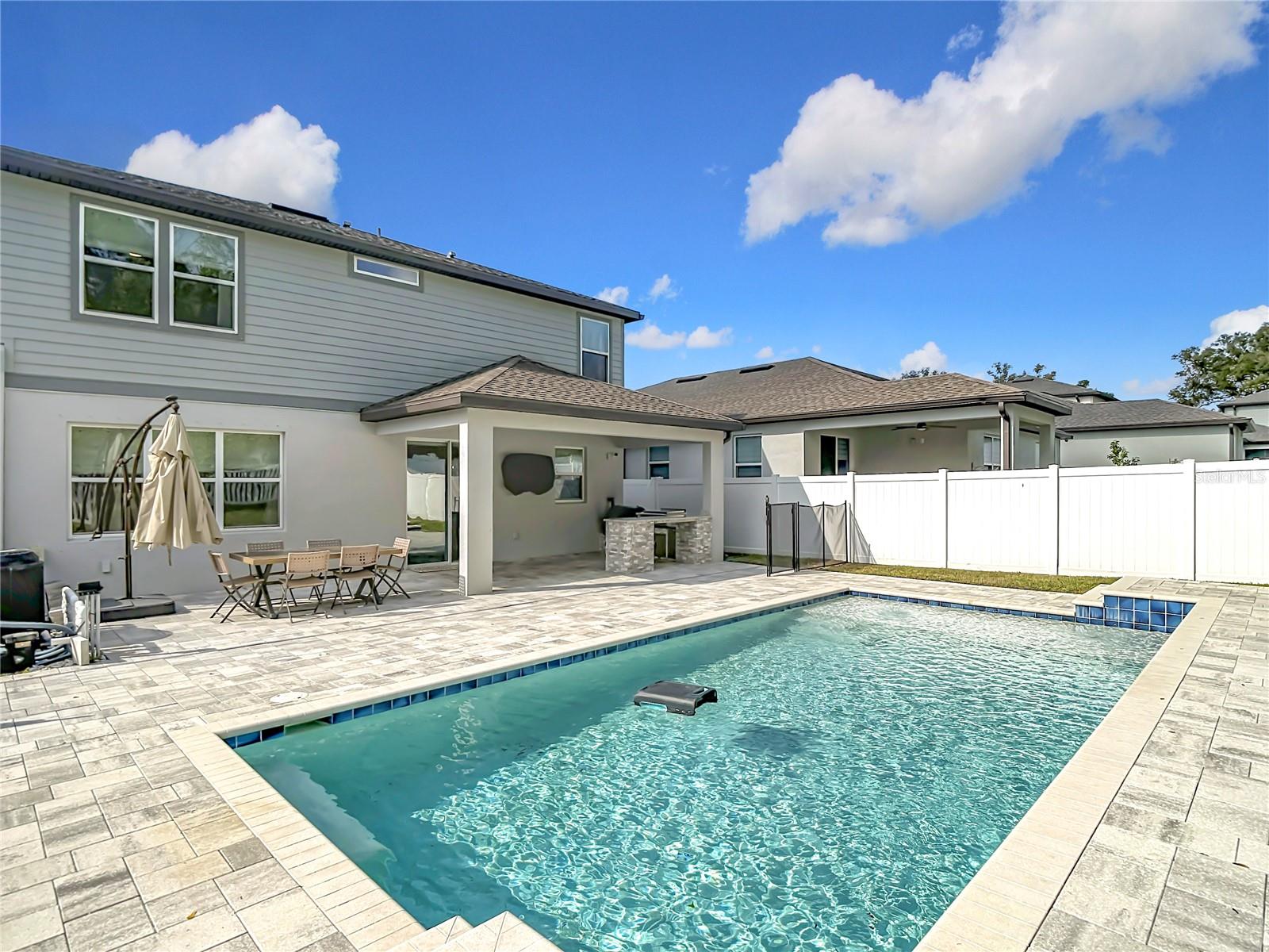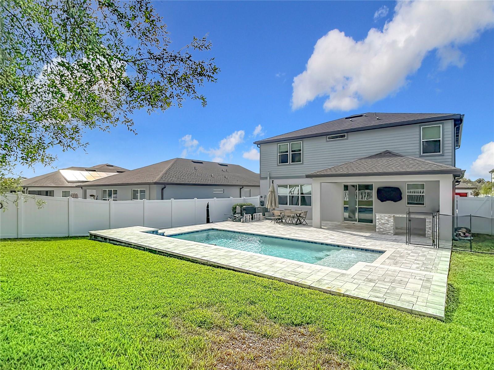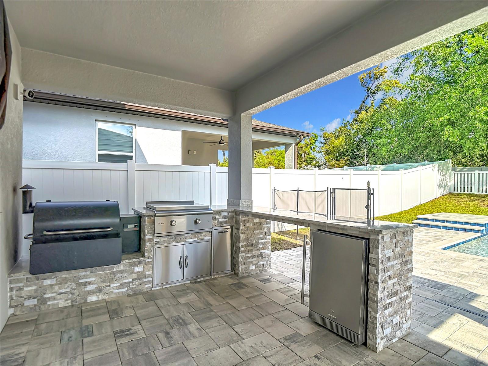 The Ultimate Entertainer’s Dream | Pool, Outdoor Kitchen & Flex Space The Lifestyle This is it—the home where family and friends gather to celebrate holidays, birthdays, and those perfect sunny Florida days by the sparkling pool. Designed for those who love to host, this residence strikes the perfect balance between luxury and comfort. Safety fence for the safety of the non-swimmers. Chef’s Outdoor Oasis The lanai is a true extension of the home, featuring a high-end outdoor kitchen that will impress any grill master. Premium Appliances: Massive stainless steel Blaze Griddle and a Traeger Wood-Fired Grill. Double pane windows, blinds, drapes, window treatments Convenience: Integrated beverage fridge and expansive quartz countertops for easy prep and serving. Seamless Interior Design Inside, the open-concept floor plan creates an effortless flow, perfect for large gatherings. Gourmet Kitchen: Featuring stainless steel appliances, granite countertops, and a massive island that overlooks the dining area and family room. The Dry Bar: A modern beverage station with dedicated wine refrigeration—your go-to spot for cocktail hour. Space for Everyone The "Fun Zone": A versatile upstairs Flex Space. Whether you need a media room, a playroom, or a teen hangout, it’s perfectly positioned to keep the energy contained but within earshot. Primary Suite: A generously sized sanctuary designed for relaxation, complete with a massive walk-in closet. Accommodations: Three additional oversized bedrooms provide plenty of room for family and guests. Don’t miss the chance to own the "go-to" house for your entire social circle. Schedule your private showing today and start planning your first housewarming party! You will enjoy the benefits of No CDD and low monthly HOA fees. ADT security wired.