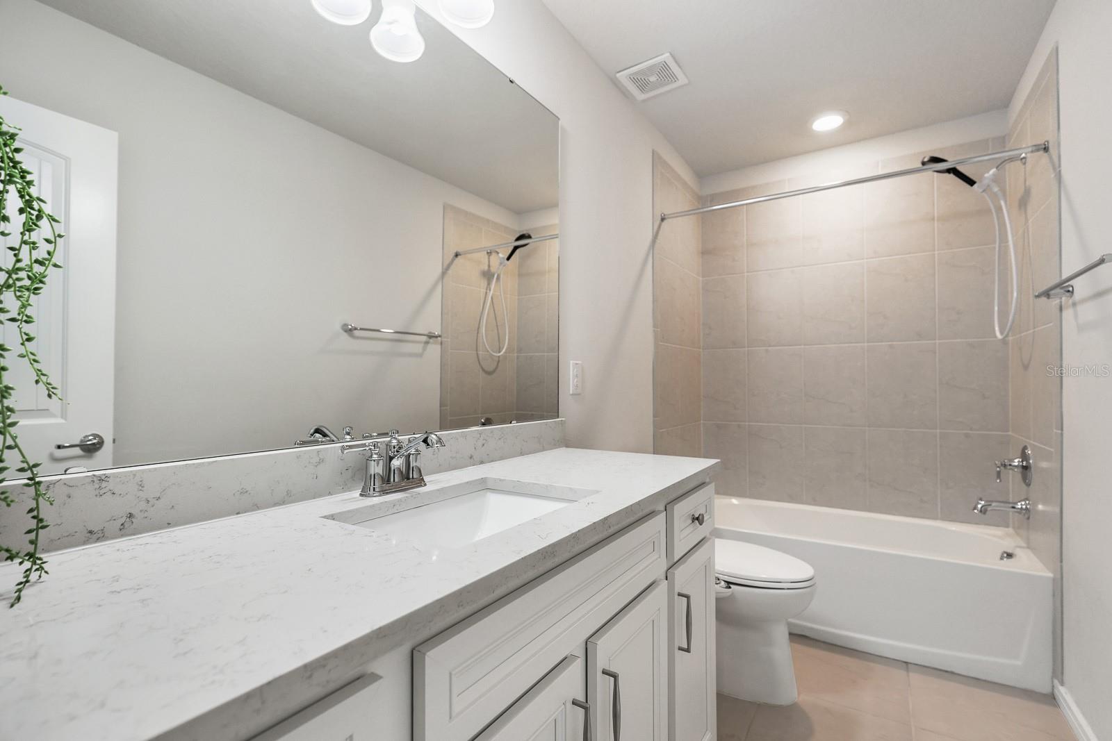 Welcome to this spacious 4-bedroom, 2.5-bathroom home located on a cul-de-sac in the quaint Sagewood community of Seffner, Florida. Offering 2,416 square feet of well-designed living space and a 2-car garage, this home combines functionality with comfortable everyday living. The first floor features a desirable open-concept layout, seamlessly connecting the living room, dinette, and kitchen—ideal for both daily routines and entertaining. The kitchen is thoughtfully designed with a large center island, white cabinetry, stone countertops, and an undermount sink. The upgraded gourmet appliance package includes a refrigerator, dishwasher, cooktop, and built-in oven and microwave, offering both style and performance. Just off the kitchen, a large walk-in pantry provides excellent storage and organization. A dedicated home office with glass French doors offers a private and flexible area for remote work or study, while a convenient powder room is also located on the first floor for guests. Sliding glass doors lead to a covered patio and a fully fenced backyard, offering added privacy and plenty of space for outdoor activities, pets, or entertaining. Upstairs, all bedrooms are thoughtfully positioned along with a centrally located loft and a convenient laundry room. The primary suite offers a spacious retreat complete with a large walk-in closet, ceiling fan, and an en-suite bathroom featuring a dual sink vanity, glass-enclosed shower, and a private water closet. Bedroom 2 is located adjacent to the primary suite, while bedrooms 3 and 4 are situated on the opposite side of the home with easy access to the second full bathroom. The second-floor laundry room includes a washer and dryer that convey with the sale. Additional features include reclaimed water for lawn irrigation and a water softener system that will remain with the home. Conveniently located less than 4 miles from Strawberry Crest High School, Armwood High School, Burnett Middle School, and Lopez Elementary School, and just 3 miles from both I-4 and I-75, this home offers easy access to major roadways, shopping, and dining options.