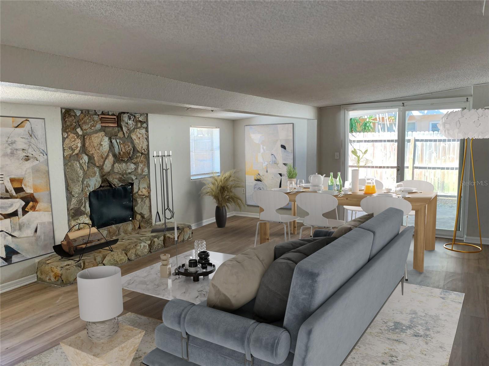One or more photo(s) has been virtually staged. Welcome to 9596 Groveland St, a delightful, move-in-ready Pool home in Seminole. The fenced backyard is an oasis with a newly remodeled in-ground pool, complete with a brand new 2024 pool pump and auto filler, all professionally maintained. The entire house boasts new 2024 high-end vinyl flooring and fresh paint. The kitchen is equipped with stainless steel appliances, adding a modern touch to this cozy home. The family room includes a stone fireplace and a door leading to the backyard and carport, perfect for entertaining and convenience. Enjoy the convenience, comfort, and charm of this home, ideally located just 5 minutes from a shopping mall and 8 minutes from the stunning Gulf beaches. No HOA and not in a flood zone. One or more photo(s) has been virtually staged