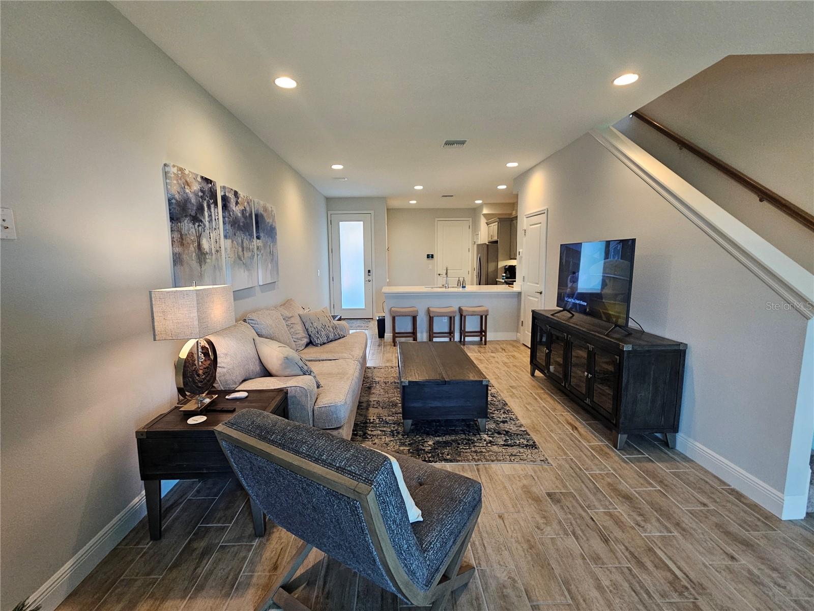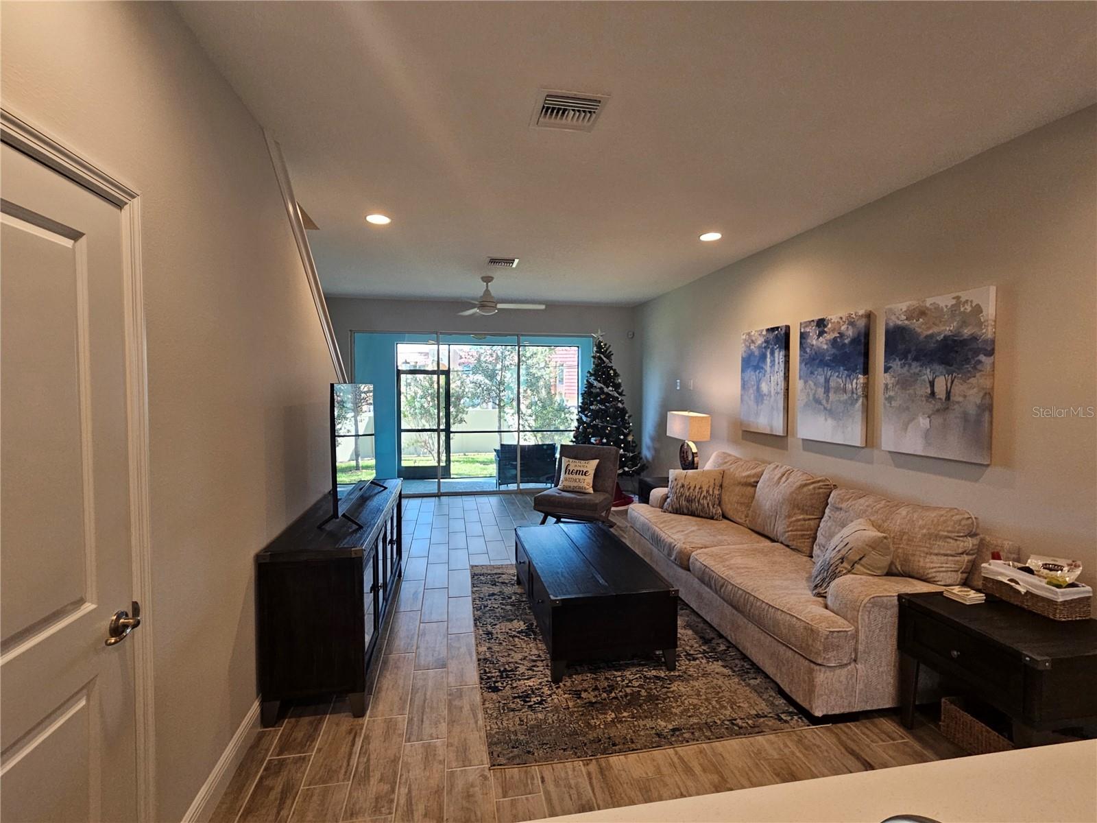 Fully Furnished Stunning One-Year-Old Townhouse In flood zone X, no flood insurance required. Move-In Ready This luxurious 2-bedroom, 2 1/2-bathroom townhouse offers modern comfort and style. Featuring spacious 9-foot ceilings and a versatile loft/office area upstairs, its perfect for work or relaxation. The home also includes a convenient one-car garage. Situated in Flood Zone B, this property has never experienced any hurricane or water damage. The townhouse comes fully furnished and includes high-end appliances. The kitchen boasts upgraded quartz countertops, while the living areas are enhanced with beautiful tile flooring. Enjoy outdoor living on your private screened lanai, ideal for morning coffee or evening relaxation. Additional features include a whole-house water filter and softener, as well as a Maytag washer and dryer, and a side-by-side refrigerator. With everything you need already in place, all you have to do is bring your clothes and move in!