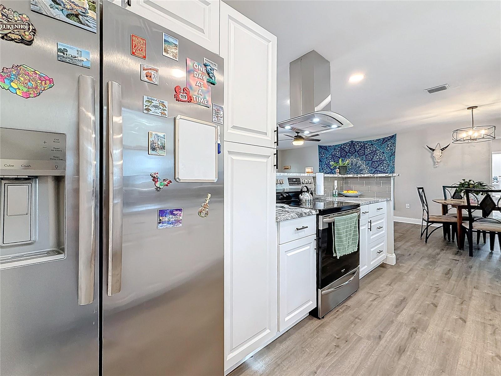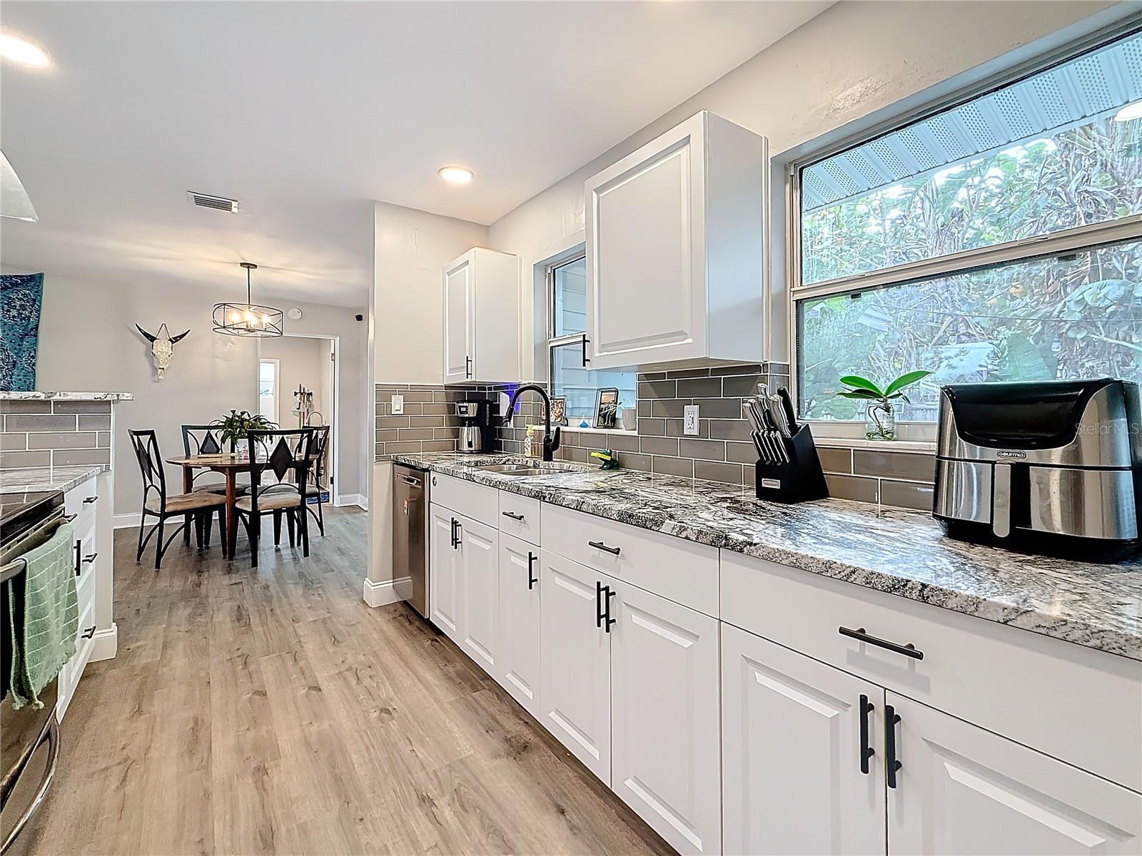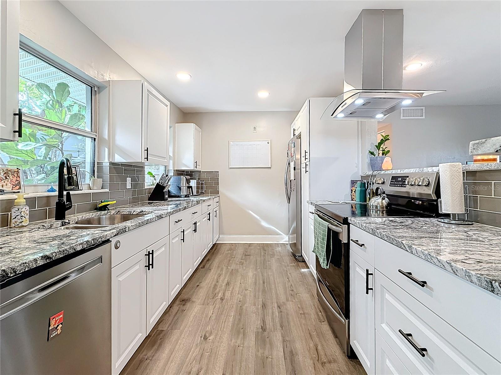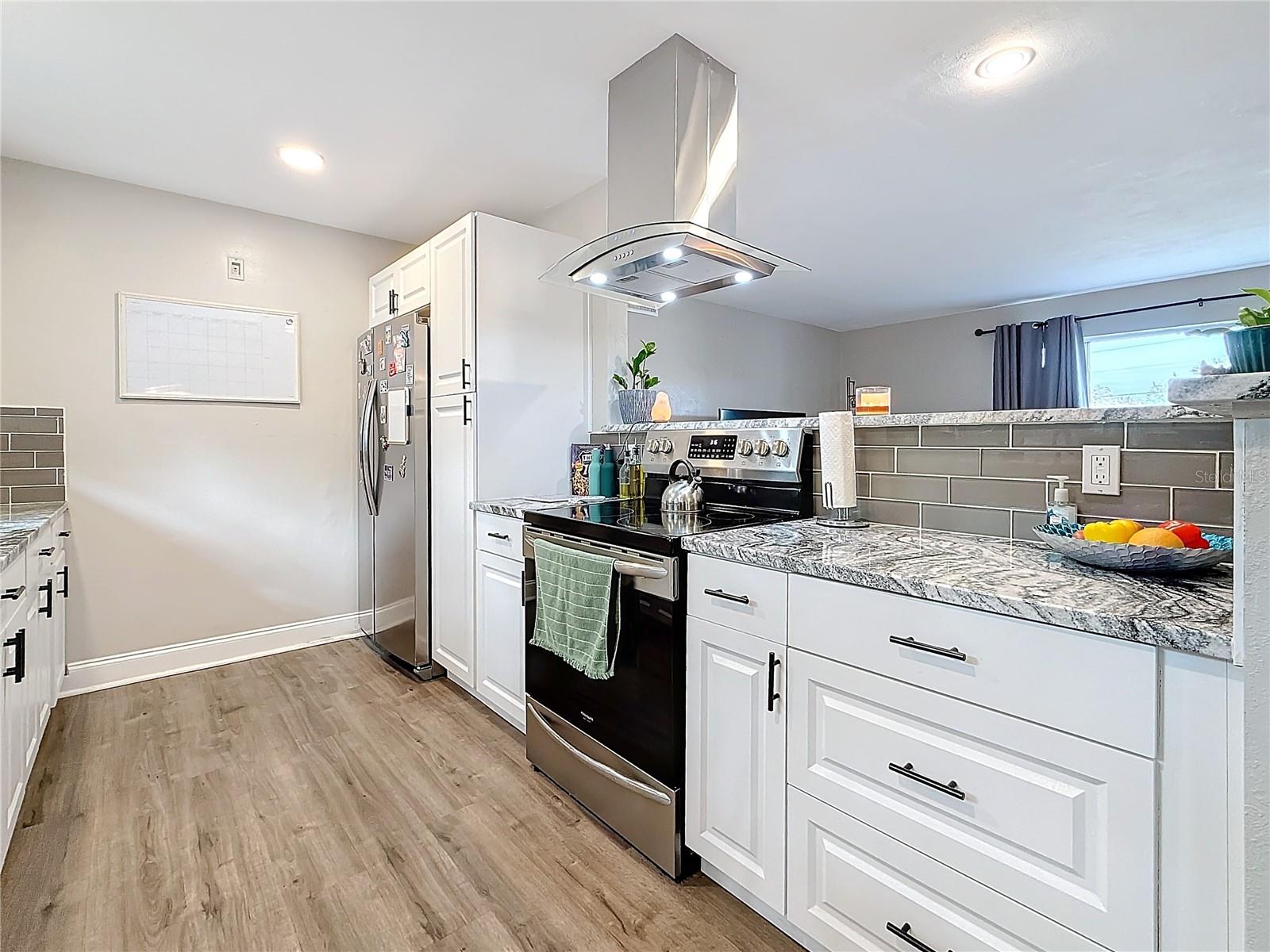 Welcome to this beautifully updated 2-bedroom, 2-bathroom home with a 1-car garage in the highly desirable Seminole, FL area. Offering 1,694 square feet of open-concept living space, this home is situated in the X flood zone, meaning no flood insurance is required. Also, no history of any hurricane or flooding damage! Inside, you'll find a stunning galley-style kitchen featuring stone countertops, stainless steel appliances, and a sleek stainless steel oven range hood, all seamlessly flowing into the spacious living and dining areas, perfect for entertaining. The indoor utility room provides added convenience with a stainless steel utility sink and ample space for laundry, while a full guest bathroom ensures comfort for visitors. Step outside to your private backyard oasis, fully fenced and beautifully landscaped with new low-maintenance artificial turf (2024), creating the perfect retreat for relaxation, pets, or outdoor gatherings. Recent updates include a new roof (2022), new electrical panel (2022), new fence (2023), and new gutters (2024) offering peace of mind. This home is in an unbeatable location, just 10 minutes from Madeira Beach, where you can enjoy white sandy shores, waterfront dining, and the lively atmosphere of John's Pass Village & Boardwalk. Outdoor enthusiasts will love being just 2 blocks away from Pinellas Park Trail access, 4 minutes from Lake Seminole Park, a 250-acre park with scenic trails, fishing spots, and picnic areas, as well as 6 minutes from Boca Ciega Millennium Park, known for its stunning observation towers and boardwalks through Florida's coastal habitat. For shopping, dining, and entertainment, Seminole City Center is only a 2-minute drive away, offering an array of local restaurants, retail stores, and a movie theater. This home is perfect as a primary residence, vacation home, or investment property, combining modern updates, an unbeatable location, and close proximity to the beach and top local attractions. Don't miss this incredible opportunity; schedule your showing today!