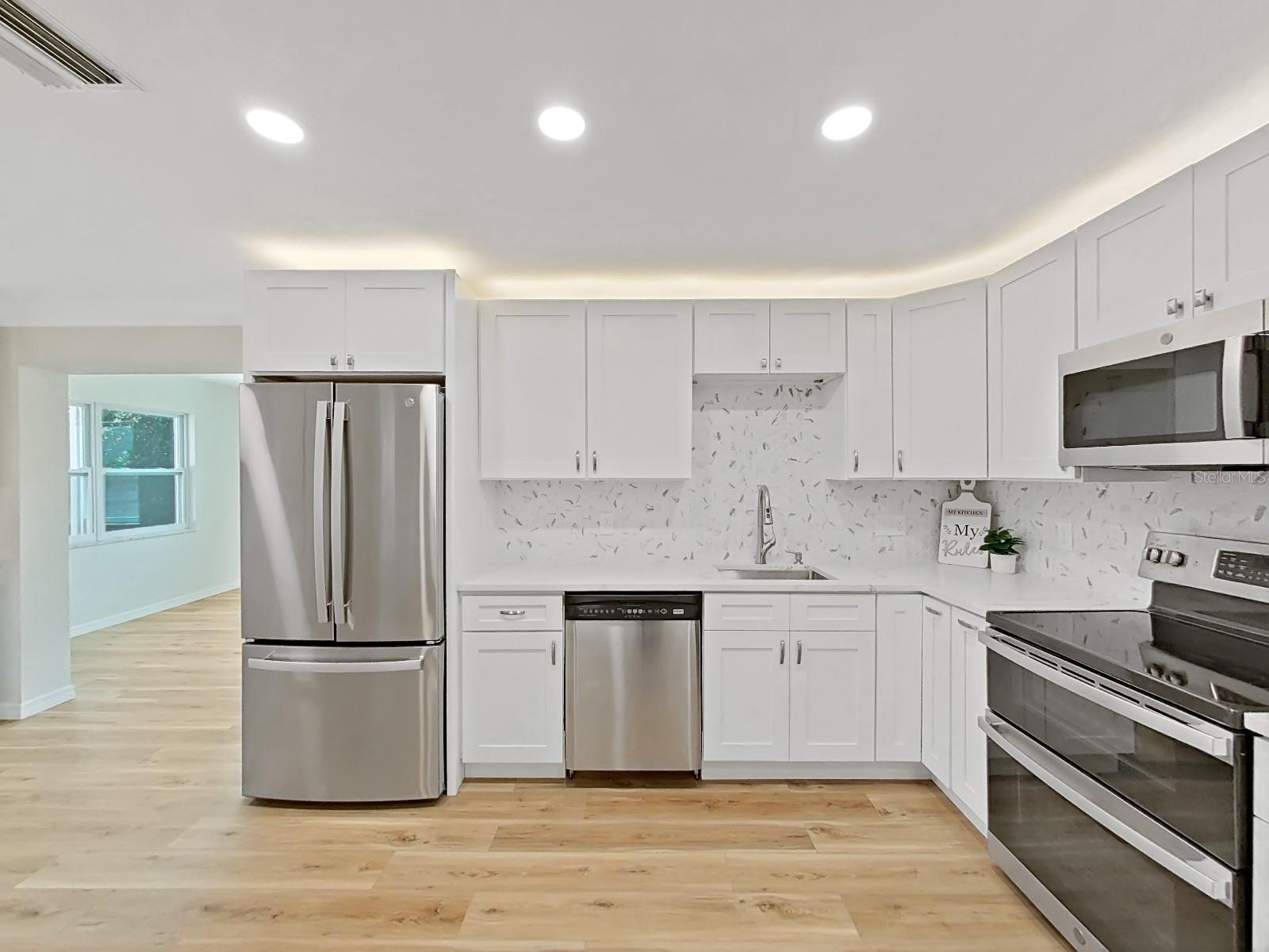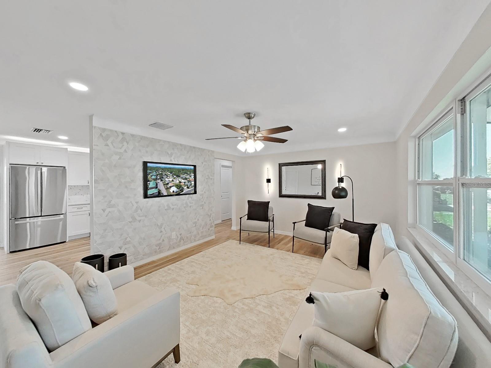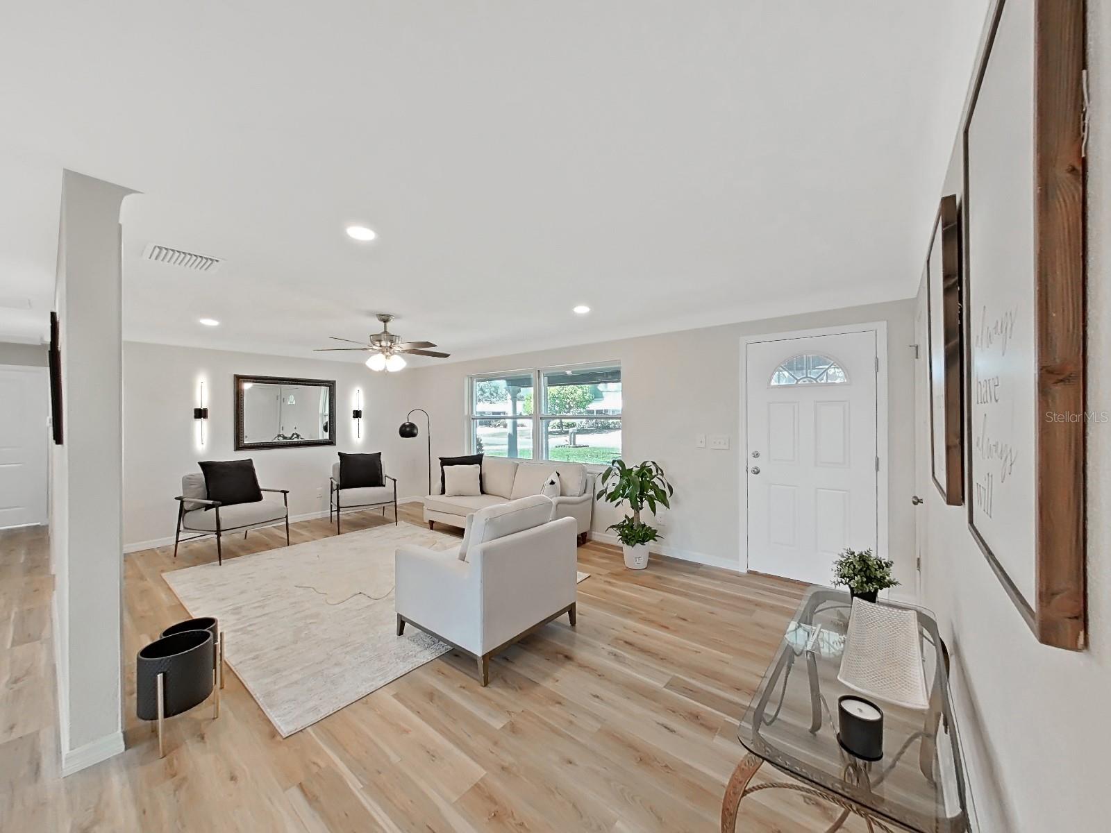 One or more photo(s) has been virtually staged. SELLER OFFERING UP TO $10K IN CONCESSIONS on this AMAZING, FULLY remodeled home near the beach! The home features over 1400 square feet with 2 bedrooms, 2 bath and a flex room that can be a 3rd bedroom or den. The kitchen has stainless steel appliances with quartz countertops, tile backsplash, and over the cabinet lighting. Additional features and upgrades include luxury vinyl flooring, a new roof (2023), windows (2024), water heater (2024) and HVAC (2022). The home has received a clean 4pt inspection. The home is equipped with retractable hurricane shutters, newly install privacy fence and new sod with reclaimed irrigation NO HOA, NO CDD! NO LEASE RESTRICTION. This home is only 2 miles from the beach and is well suited for owner occupancy or short-term rentals. Call for an appointment to tour this magnificent home. SELLER IS MOTIVATED!! Bring all offers.