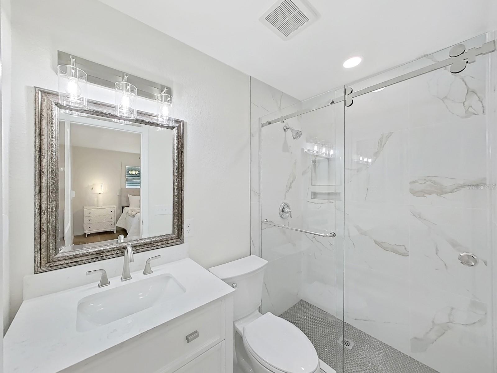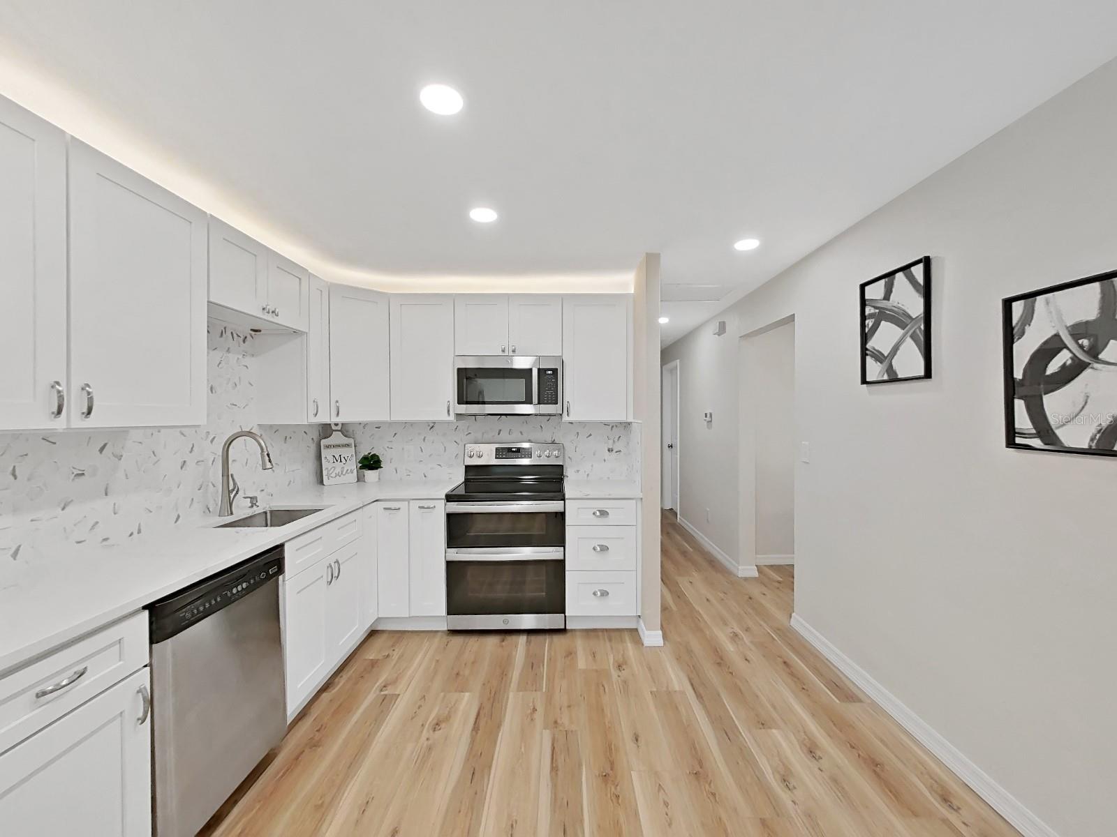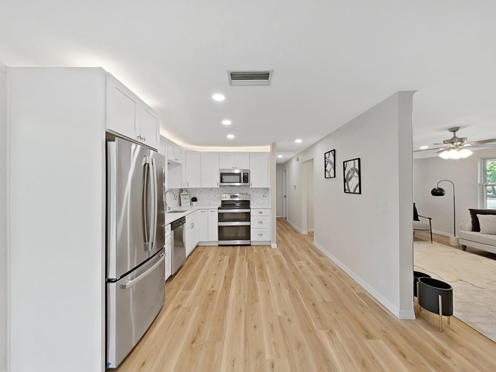 One or more photo(s) has been virtually staged. SELLER OFFERING UP TO $10K IN CONCESSIONS on this AMAZING, FULLY remodeled home near the beach! The home features over 1400 square feet with 2 bedrooms, 2 bath and a flex room that can be a 3rd bedroom or den. The kitchen has stainless steel appliances with quartz countertops, tile backsplash, and over the cabinet lighting. Additional features and upgrades include luxury vinyl flooring, a new roof (2023), windows (2024), water heater (2024) and HVAC (2022). The home has received a clean 4pt inspection. The home is equipped with retractable hurricane shutters, newly install privacy fence and new sod with reclaimed irrigation NO HOA, NO CDD! NO LEASE RESTRICTION. This home is only 2 miles from the beach and is well suited for owner occupancy or short-term rentals. Call for an appointment to tour this magnificent home. SELLER IS MOTIVATED!! Bring all offers.