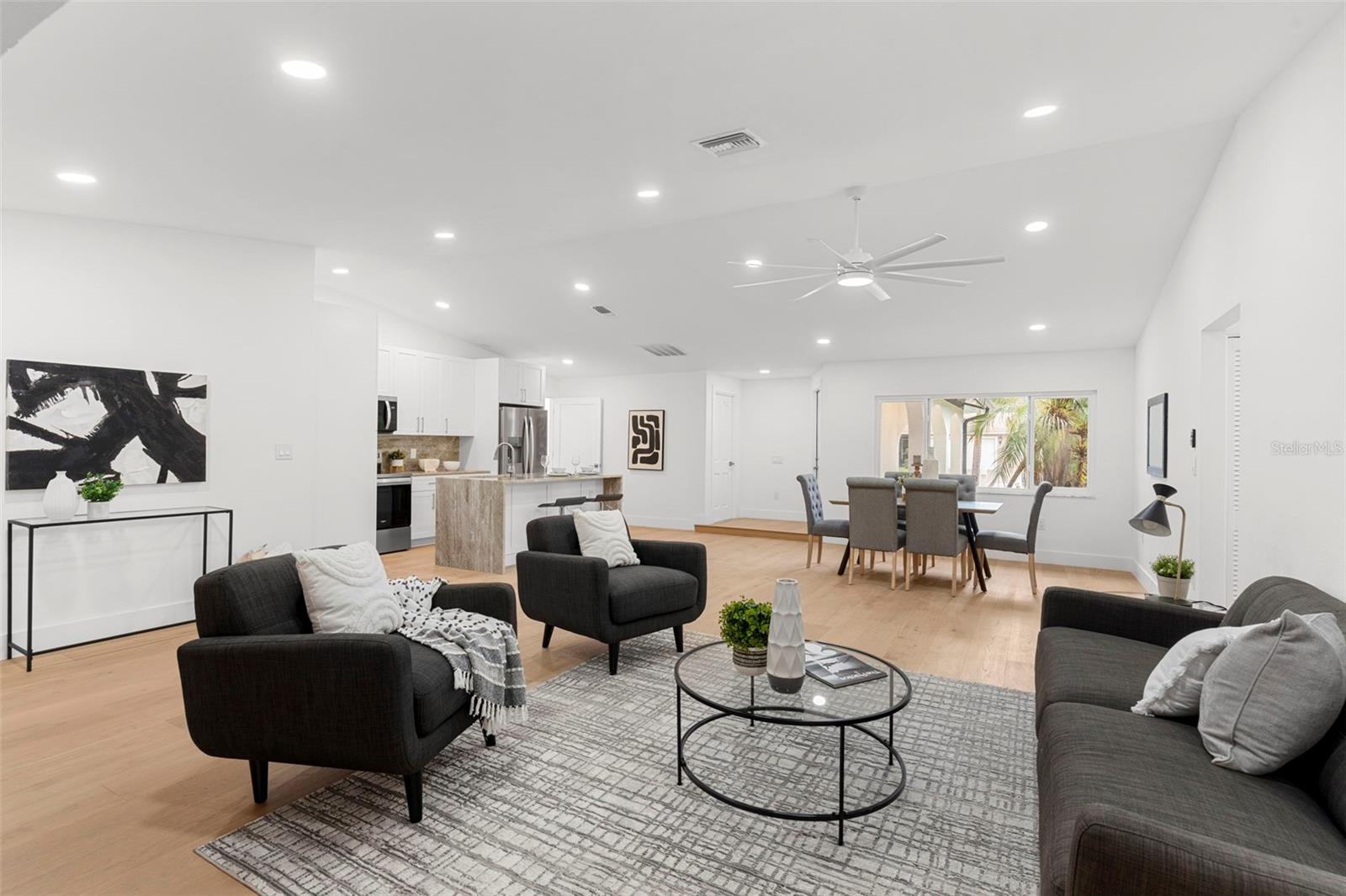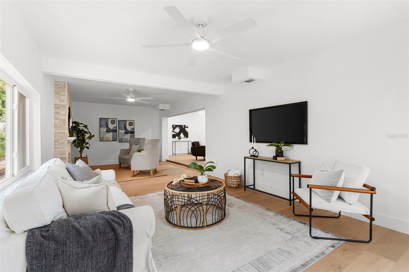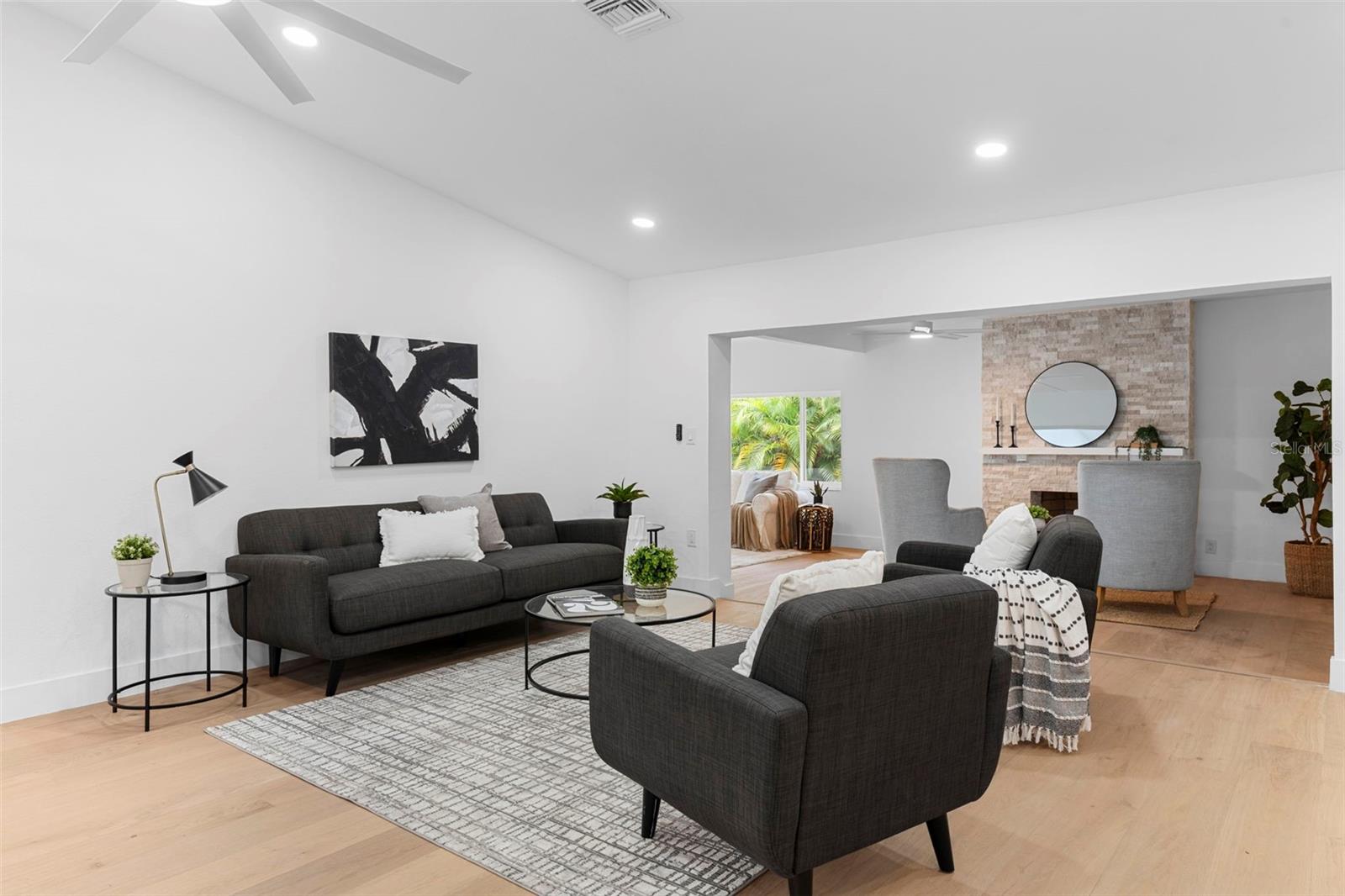 Located on a quiet street in the desirable neighborhood of Seminole Grove, this stunning 3-bedroom, 2-bath home offers nearly 2,000 square feet of comfortable, family friendly living space with a layout that works perfectly for both everyday life and entertaining. Inside, you’ll find beautiful white oak hardwood floors throughout, an open living and dining area, and a well-appointed kitchen featuring Taj Mahal quartzite, brand new whirlpool stainless steel appliances, and a HUGE walk-in pantry and laundry room. The home has the perfect balance between function and style—great for a large family. The extra bonus room with a stunning fireplace assures that everyone can live comfortably with PLENTY of space to spread out. Out back, enjoy a private outdoor space built for Florida living—with a large pool, patio, and plenty of room to relax or play. Located close to top-rated schools, parks, shopping, and just a short drive to the beach, this home offers an ideal combination of location, lifestyle, and livability.