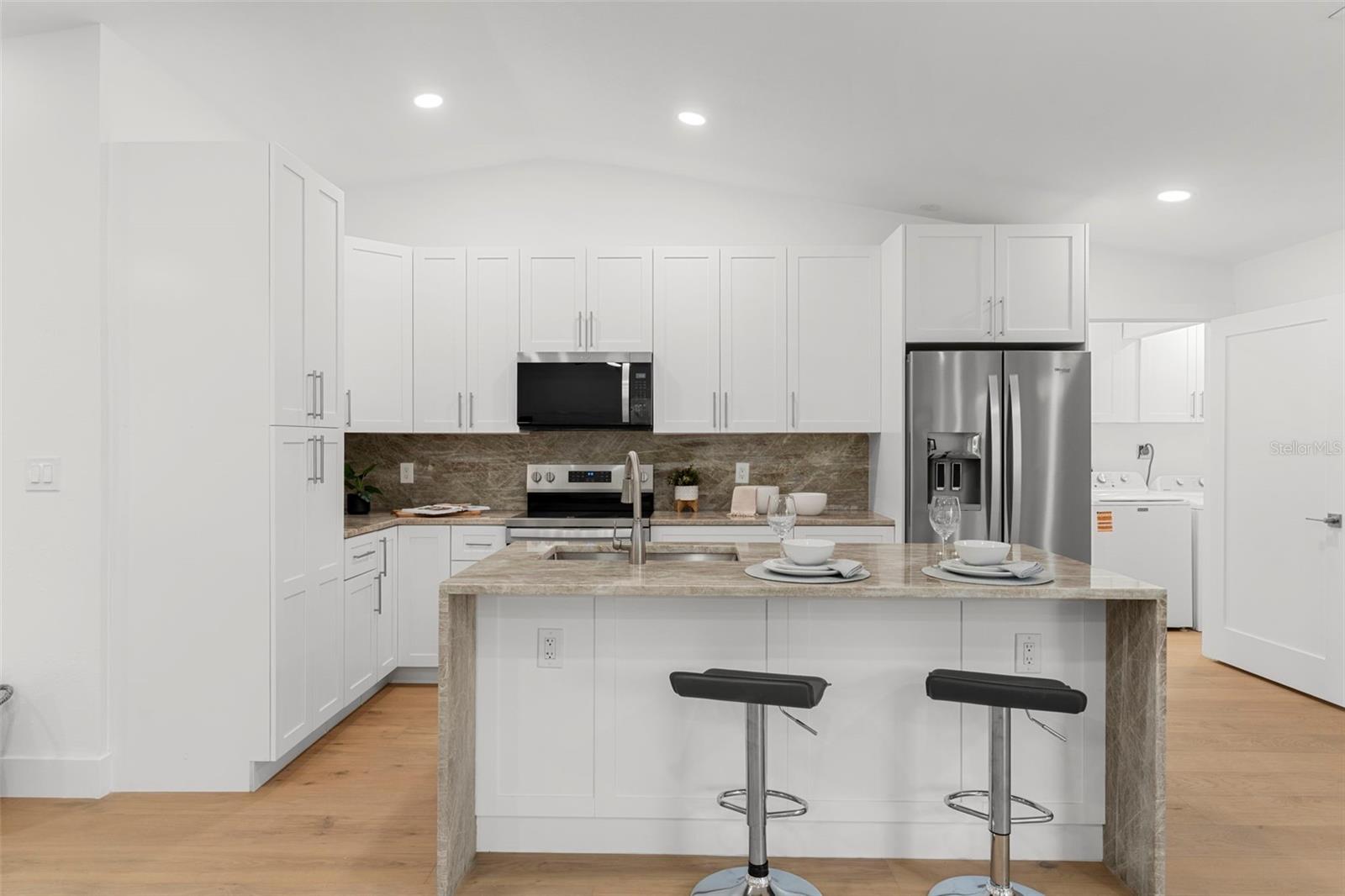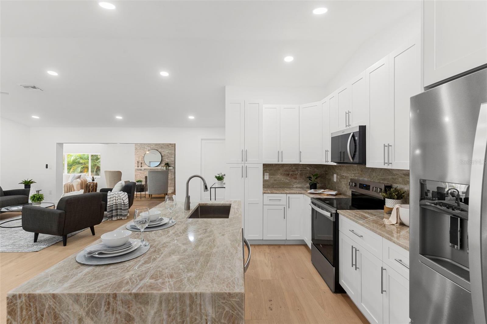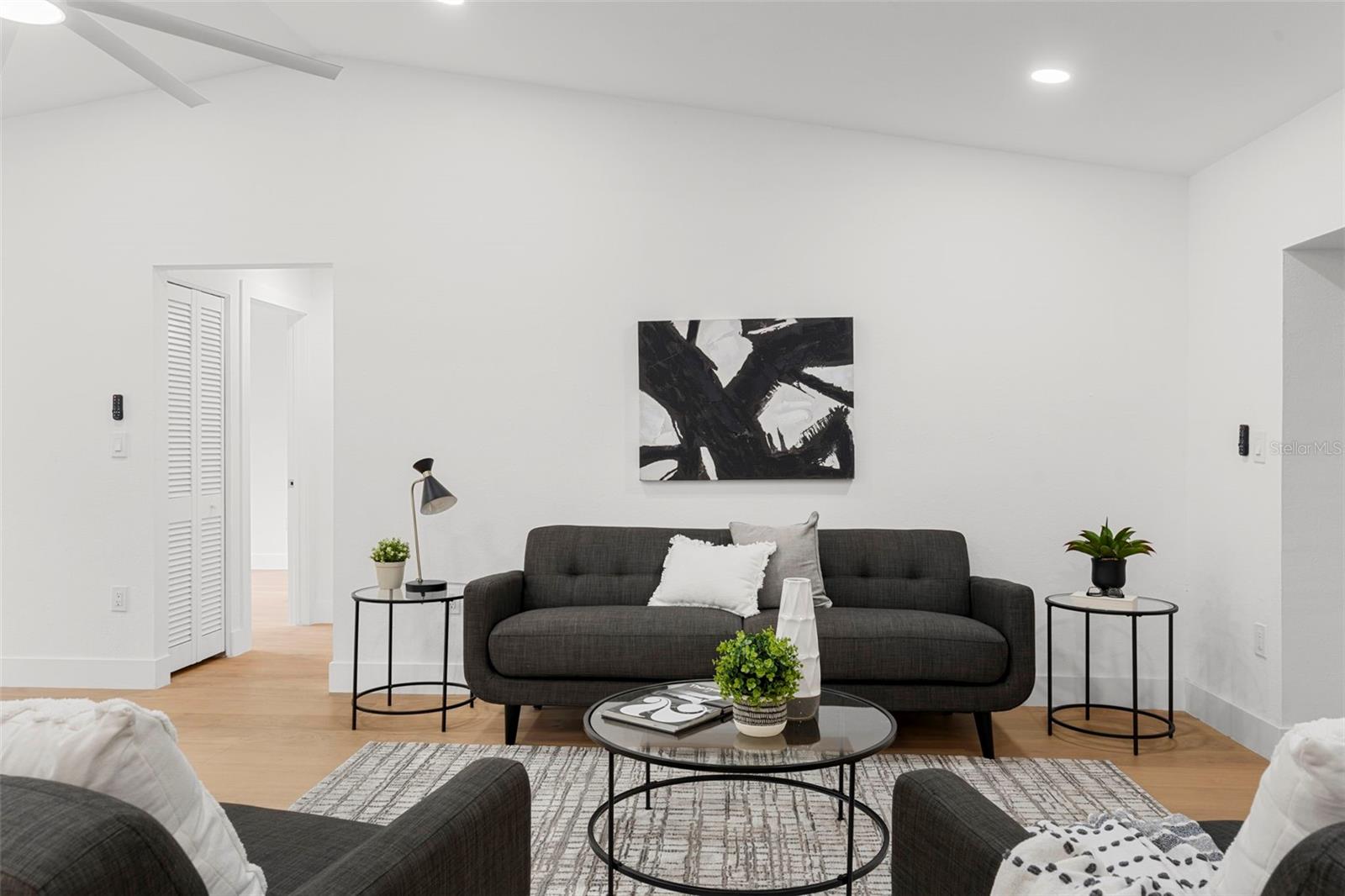 Located on a quiet street in the desirable neighborhood of Seminole Grove, this stunning 3-bedroom, 2-bath home offers nearly 2,000 square feet of comfortable, family friendly living space with a layout that works perfectly for both everyday life and entertaining. Inside, you’ll find beautiful white oak hardwood floors throughout, an open living and dining area, and a well-appointed kitchen featuring Taj Mahal quartzite, brand new whirlpool stainless steel appliances, and a HUGE walk-in pantry and laundry room. The home has the perfect balance between function and style—great for a large family. The extra bonus room with a stunning fireplace assures that everyone can live comfortably with PLENTY of space to spread out. Out back, enjoy a private outdoor space built for Florida living—with a large pool, patio, and plenty of room to relax or play. Located close to top-rated schools, parks, shopping, and just a short drive to the beach, this home offers an ideal combination of location, lifestyle, and livability.
