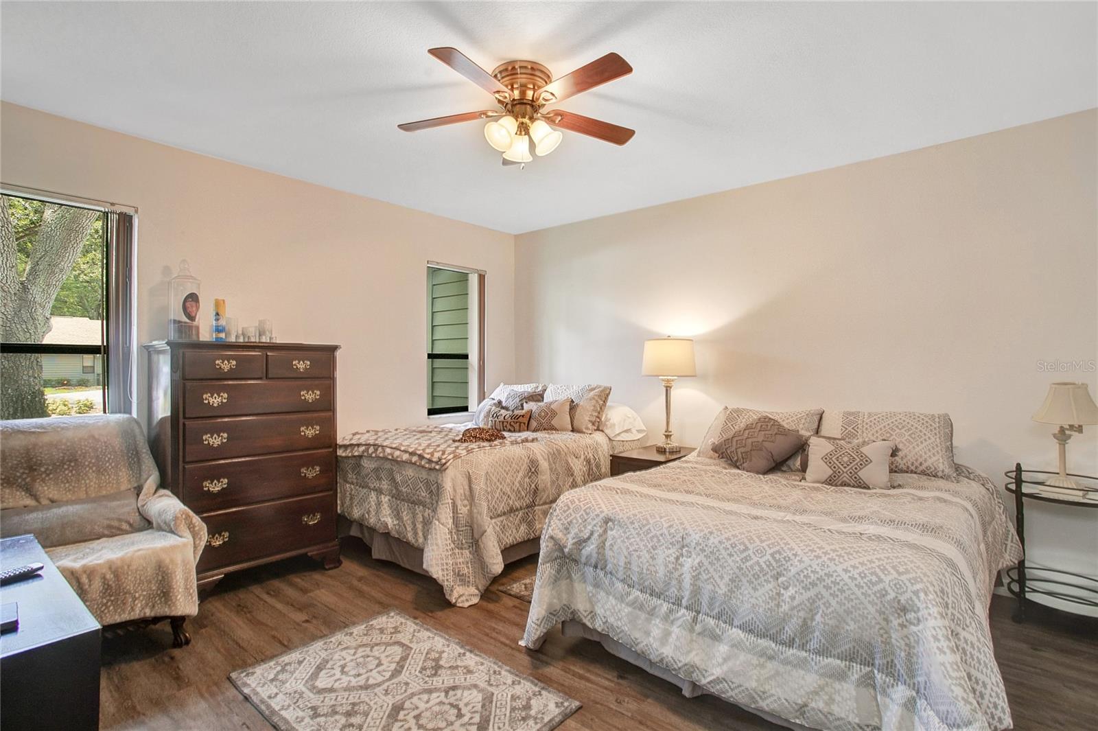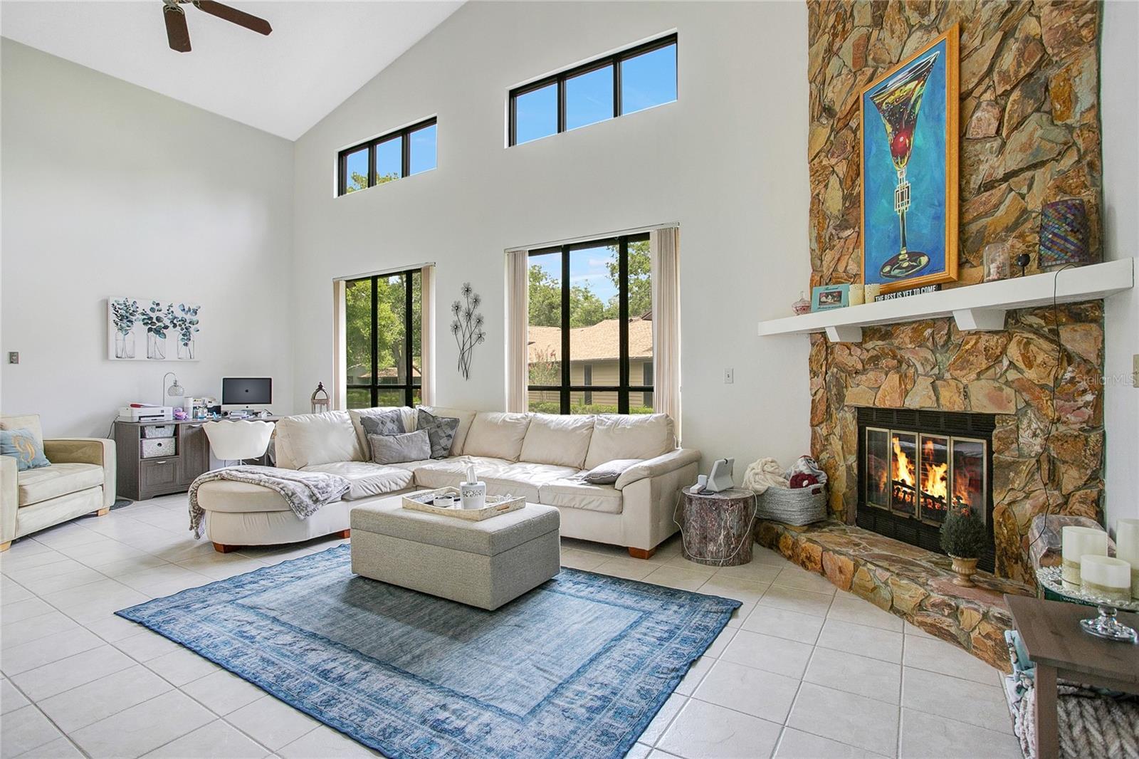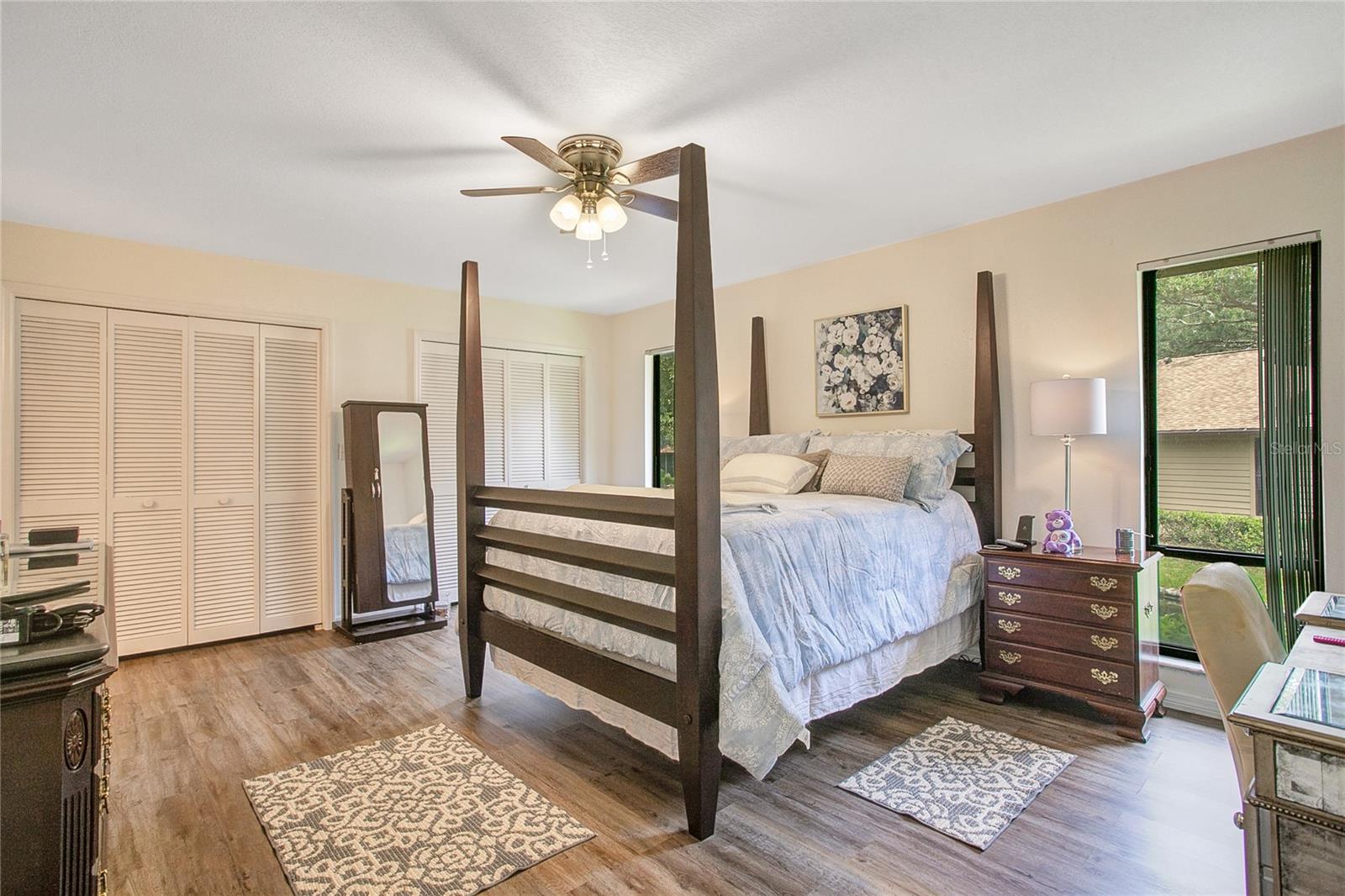 NEWLY RENOVATED BATHROOMS!! Seller Motivated. Come explore this rare opportunity to own in the desirable community of Woodbridge in the heart of Seminole. Immediately you'll notice the beauty of the tree-lined community, surrounded by lush greenery and ponds in every direction you look. Upon entering the home you'll fall in love with the cathedral ceilings in the Great Room, with beautiful natural light to warm the space as you sit by your stunning floor-to-ceiling fireplace. Enjoy the serene Florida mornings and evenings sitting on your screened in back patio that overlooks an adorably quaint pond with fountains. The wonderfully maintained home includes an oversized Primary suite, including his & her closets, and a full ensuite as well as an adequately sized second bedroom and bathroom just around the corner. The dining room has ample space to accommodate the entire family, and the kitchen is large enough to cook for those holiday gatherings you desire. You'll find no carpet here, only beautiful tile in the common areas and updated luxury woodgrain laminate in the bedrooms. The community has a large pool, tennis courts, and a sense of peace that's unique to its own. You're centrally located to shopping, schools, parks, libraries and the gulf beaches are just minutes away. Come fall in love today! Bedroom Closet Type: Walk-in Closet (Primary Bedroom).