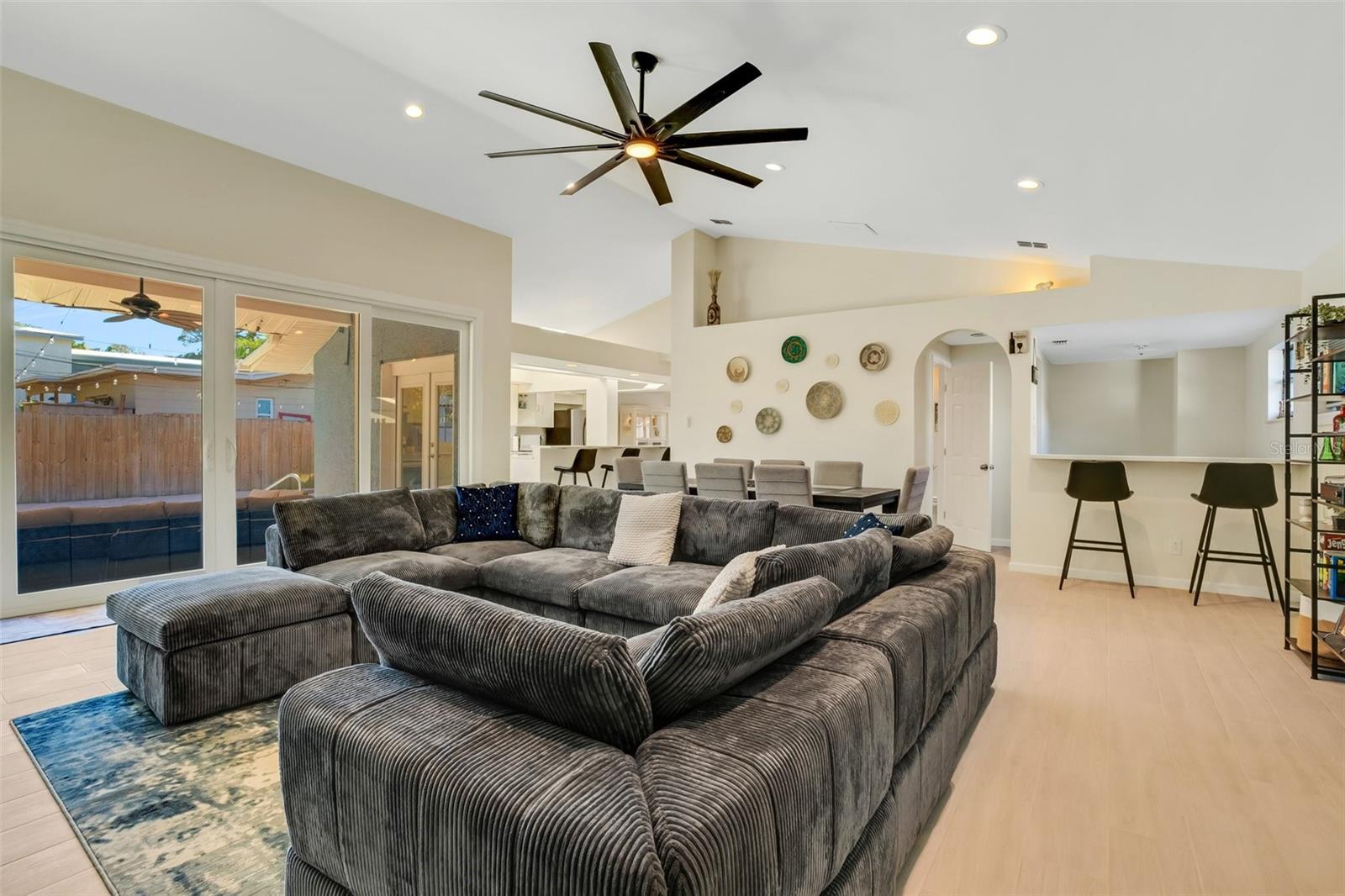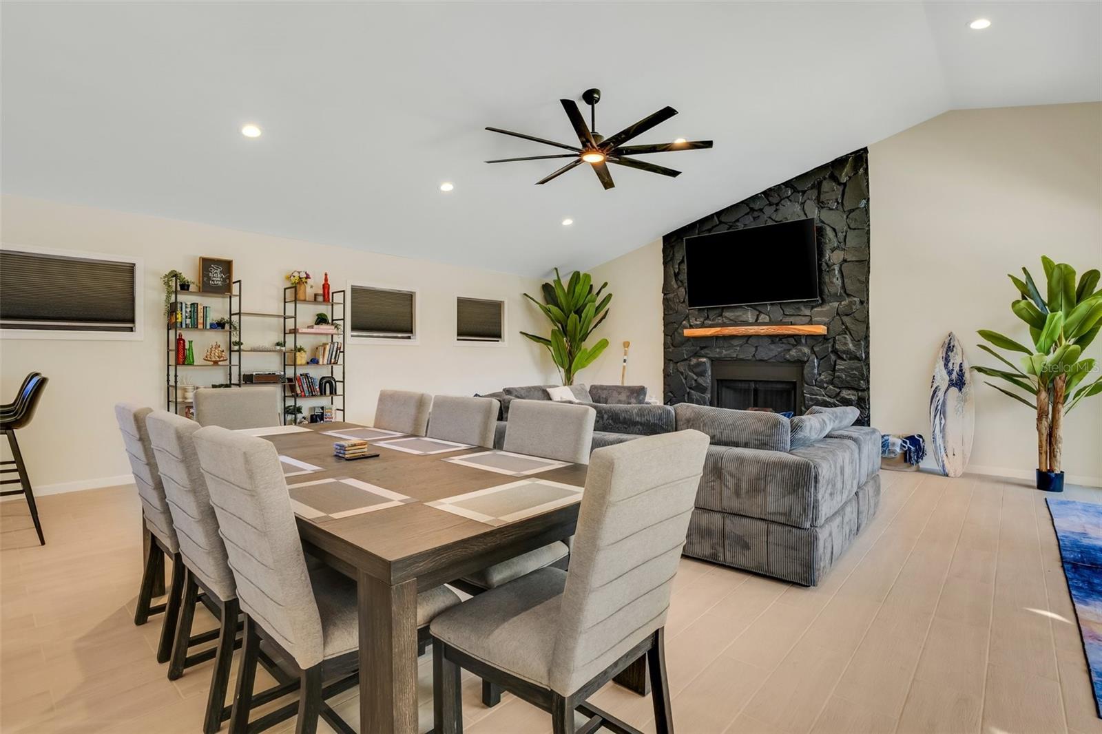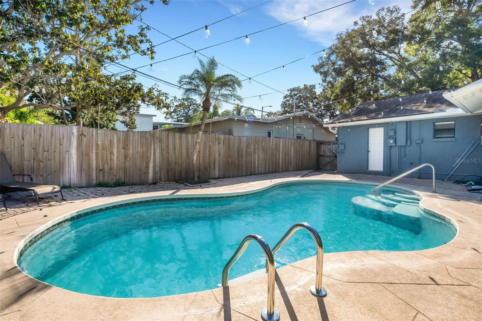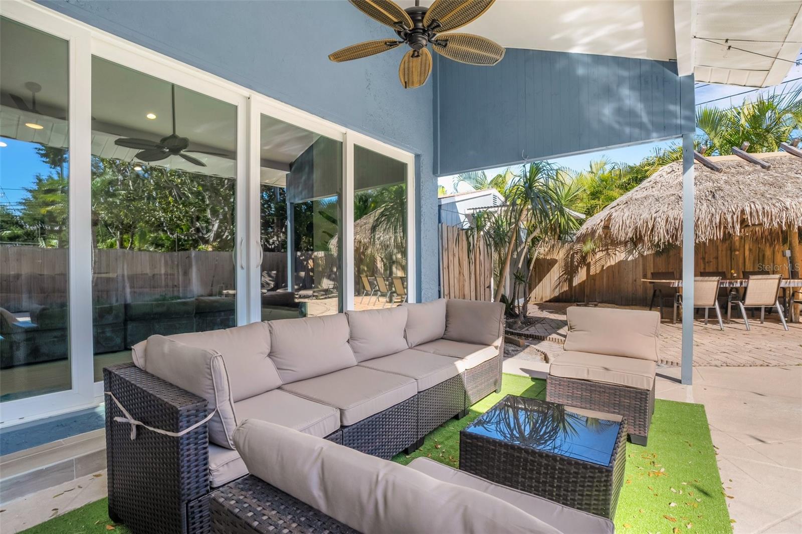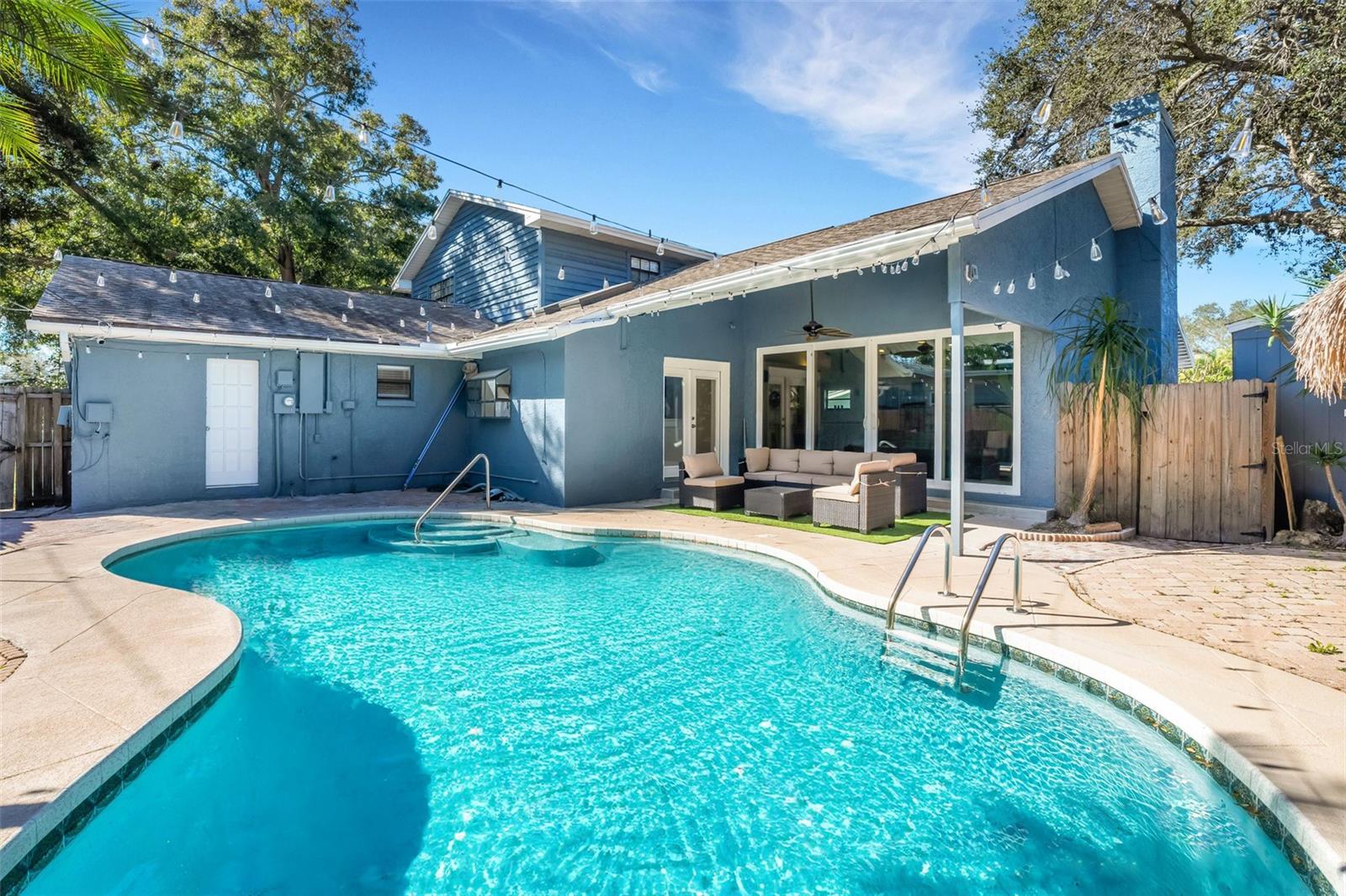 Welcome to your dream oasis just minutes away from the sun-kissed shores! This beautifully renovated property boasts the perfect blend of coastal charm and modern luxury, offering an unparalleled lifestyle less than a 5-minute drive from the beach. As you step onto the grounds, you'll be greeted by a beautiful bungalow offering tranquility and privacy, courtesy of the large fenced yard surrounding your personal paradise. Lounge by the swimming pool, take shade under the inviting tiki hut, or gather around the built-in tiki table for unforgettable moments with friends and family. The fun continues in the separate air-conditioned game room featuring a foosball table and dry-bar, ideal for entertaining guests or indulging in movie or game nights. The main house includes the convenience of a first-floor primary bedroom and bath, with direct access to the pool. Upstairs, three spacious bedrooms and a large custom bathroom await, offering ample space for rest and rejuvenation. The heart of the home lies in the expansive great room on the main floor, boasting vaulted ceilings and an abundance of windows that bathe the space in natural light. From here, enjoy picturesque views of the pool and yard, creating a seamless indoor-outdoor living experience. The gourmet kitchen is a culinary enthusiast's delight, equipped with stainless steel appliances, quartz countertops, tons of cabinets, a storage pantry, and a long island perfect for casual dining or hosting gatherings. With its open layout overlooking both the great room and living room, the kitchen becomes the focal point of daily life and entertaining. Convenience is key, with a two-car garage and an extra-wide driveway, ensuring ample space for parking your cars and even a large boat! For those seeking an investment opportunity, this property is already established as a successful Airbnb, offering great returns. Alternatively, make it your year-round residence and bask in the coastal charm and comfort it provides. This home can be purchased fully-furnished and is ready to become your own personal sanctuary or a lucrative vacation retreat. Make it your slice of paradise! - ROOM DIMENSIONS ARE APPROXIMATE.