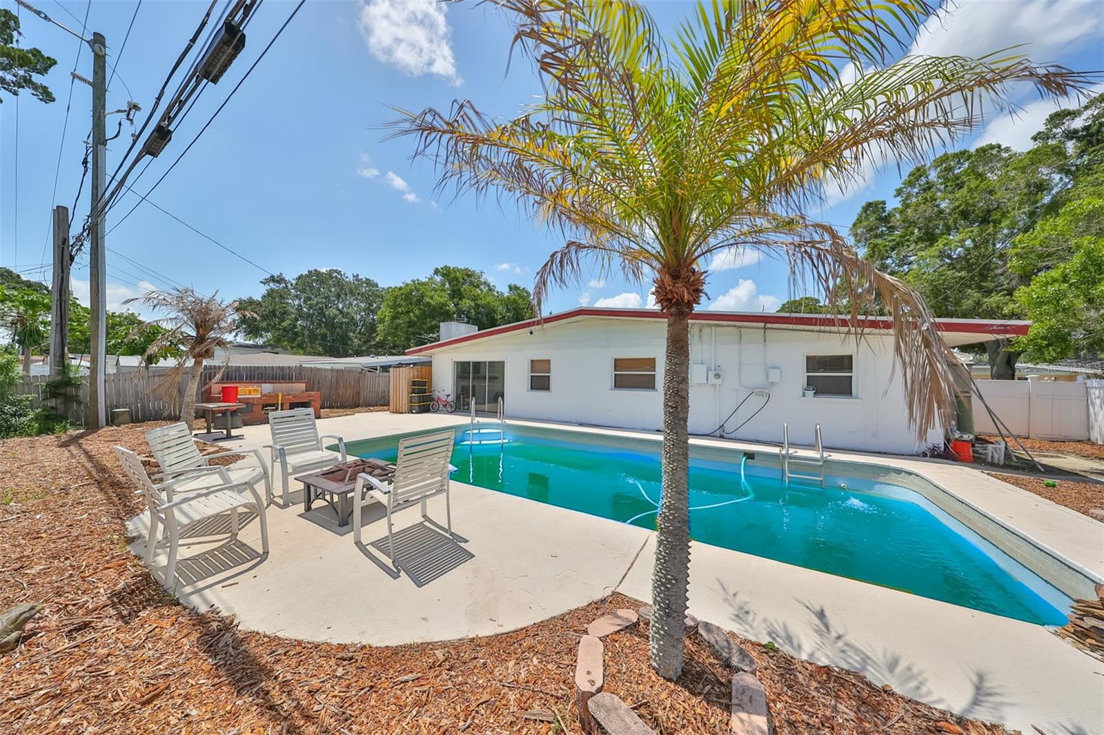 Nestled just 3.5 miles from glistening beach shores and a stone's throw from everyday conveniences, this inviting 4-bedroom, 2.5-bathroom home offers the perfect blend of comfort and convenience. Imagine weekend mornings with a quick drive to the beach or strolling to the nearby Publix for groceries. This home makes it all possible! Step inside to find a spacious interior ready to become your personal haven. The heart of the home is the kitchen, which flows seamlessly into a cozy living area. ideal for gatherings and making memories. Each of the four bedrooms provides a private retreat for relaxation and rejuvenation. You? 'll find tons of natural light in this home, with the cozy living room offering a brick, wood-burning fireplace. Outside, your private oasis awaits with an in-ground pool surrounded by a fully fenced backyard, perfect for sunny days and peaceful evenings. Entertaining is a breeze with this ample outdoor space. Located just 11 miles from St. Pete International Airport (PIE), this home is not only a peaceful retreat but also a commuter's dream. 1 mile from the Seminole City Center, offering retail and restaurants and walking distance to great schools for all ages. Nearby is the Seminole Public Library and Seminole Recreation Division where events are held year-round. Don't miss the chance to make this house your own and start enjoying the Florida lifestyle to its fullest. Welcome home!