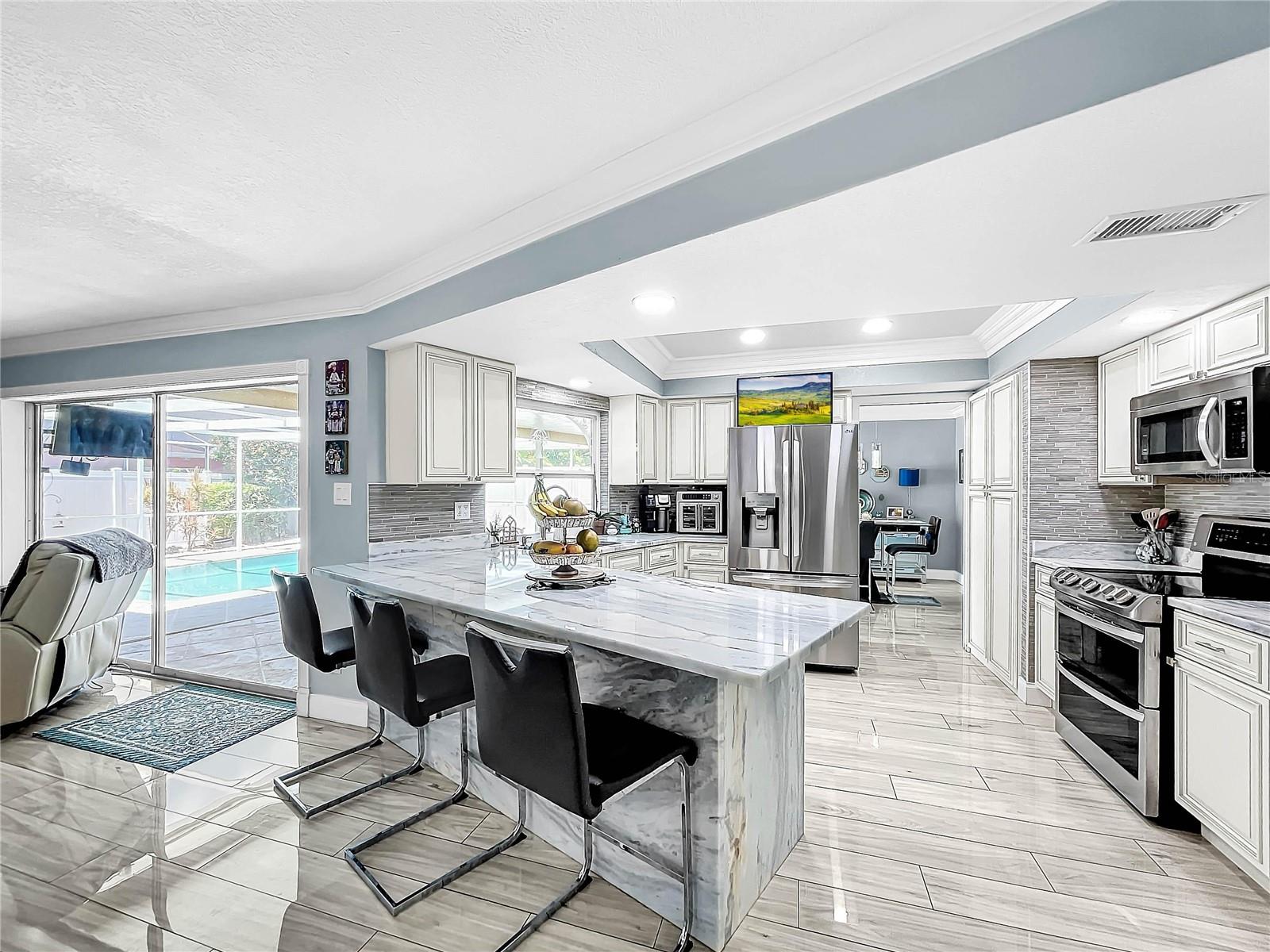 House sustained NO DAMAGE OR FLOODING during Hurricane Helene, and Hurricane Milton! Welcome to the gorgeous neighborhood of Bayhaven, just minutes away from the stunning soft sand beaches of Florida's west coast. This highly sought-after area is home to a move-in-ready residence showcasing high-end finishes throughout. Recent updates in 2021 include the kitchen, bathrooms, flooring, and a resurfaced pool. Perfect for entertaining, this home is ready to host your holiday celebrations and more. Step outside to the expansive lanai, where you'll find the ideal spot to relax or entertain by the pool. The seamless connection between the indoor and outdoor areas, with easy access from the lanai into the house, invites you to fully embrace Florida living. Imagine passing drinks or snacks through the convenient kitchen window that opens directly to the pool area—a feature designed to make hosting gatherings even easier. Located on a quiet cul-de-sac, this home offers a peaceful retreat from the bustle while remaining part of an active community. The desirable 3-bedroom, 2-bathroom floor plan provides the perfect balance of privacy and togetherness, ideal for families or guests. With minimal traffic, the street is perfect for families, allowing families a safer place to play outdoors. The tranquility of this spot, combined with its proximity to the beach and local amenities, makes this home an ideal setting for both relaxation and making memories. Don’t miss the opportunity to experience this one-of-a-kind home in person! Open to airbnb investments, plenty of cash flow potential!