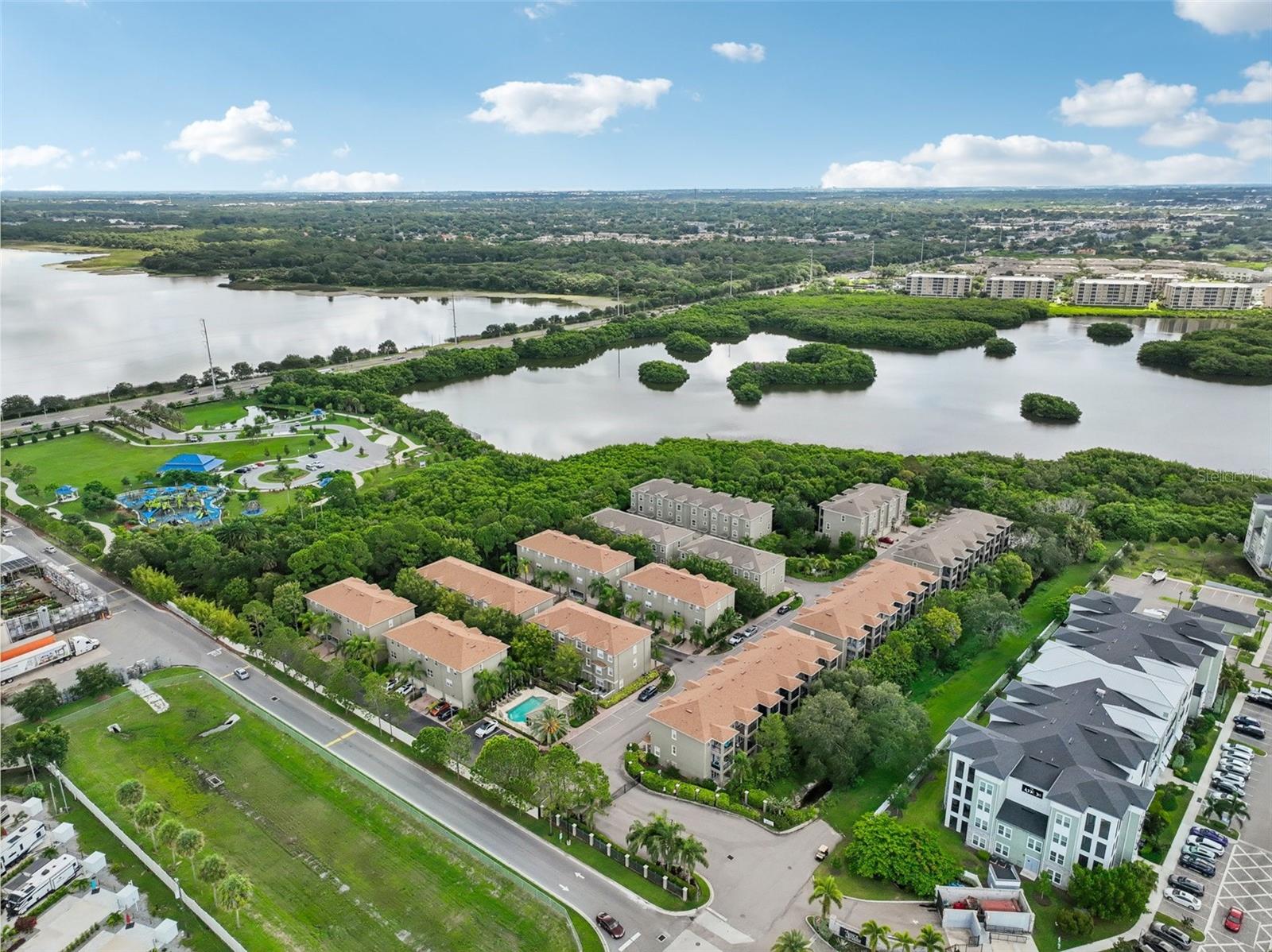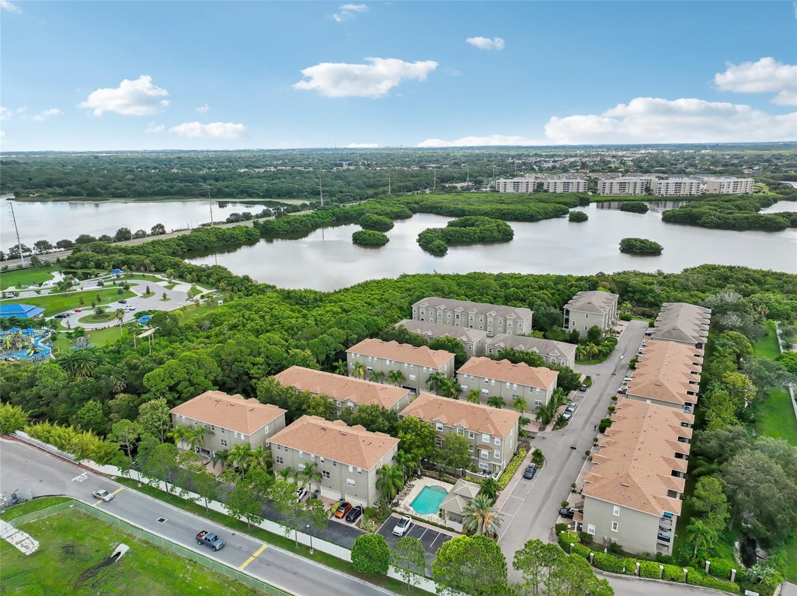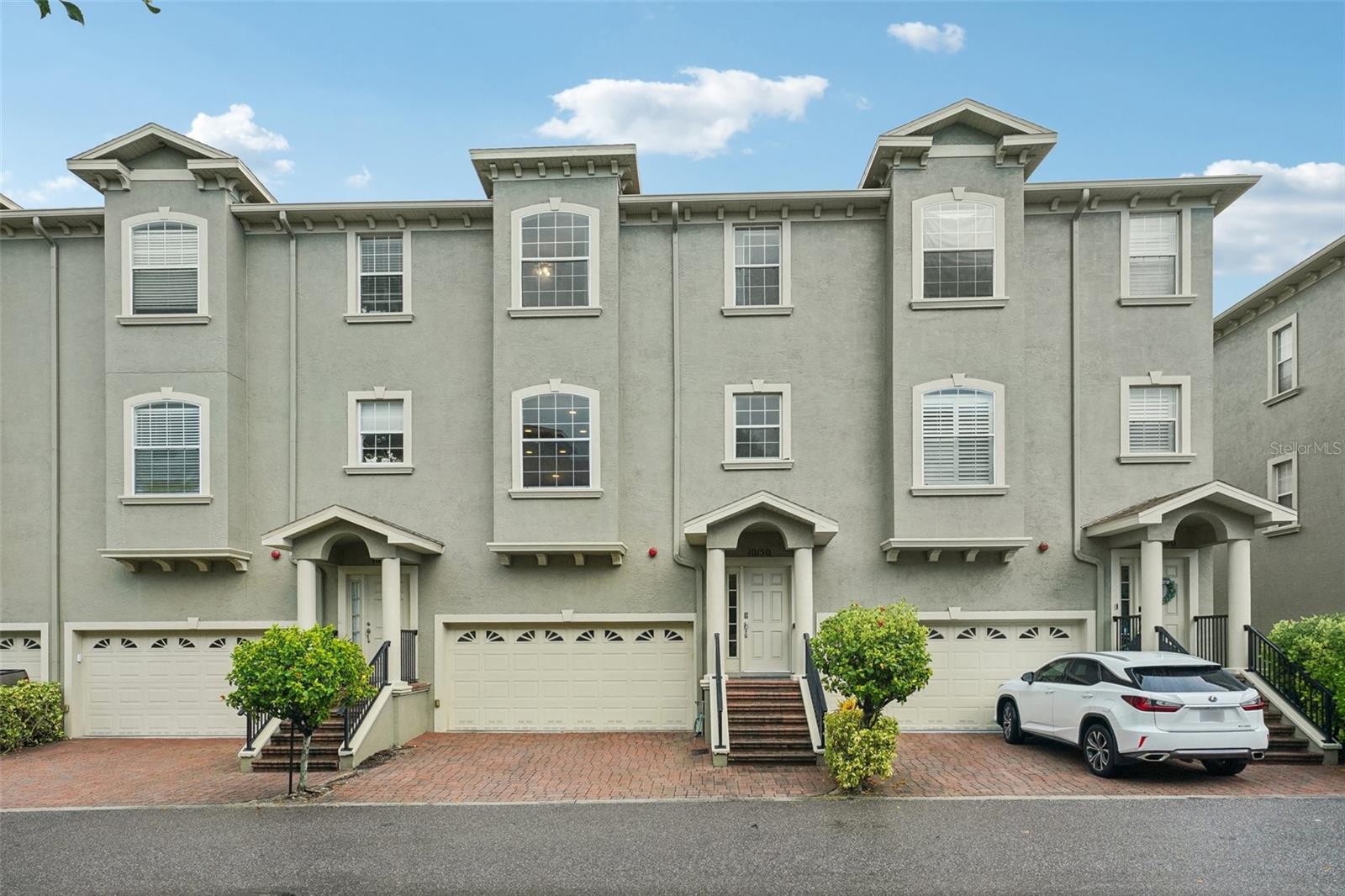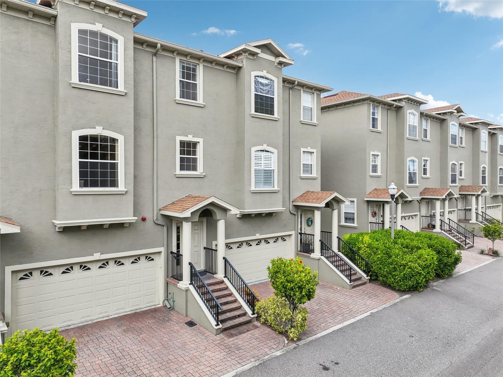 One or more photo(s) has been virtually staged. Welcome to this exquisite 3-bedroom, 2 full and 2 half-bathroom townhome with a 2-car garage, boasting 2,400 sq. ft., 2 balconies, and a covered patio in the desirable gated community of Bayou Grande! From the moment you enter, you'll be impressed and feel right at home. The foyer greets you with a stunning two-story ceiling. On the first level, you'll find a bonus room with crown molding, a walk-in storage closet, access to the garage, and a convenient half-bath. Step outside through the sliding glass door to the covered back patio to relax and enjoy the fresh air. The second level serves as the main living space and features crown molding throughout, a spacious chef's kitchen with solid wood cabinets, quartz countertops, an island with a breakfast bar, stainless steel appliances, brand new range with air fry feature, a walk-in pantry, and a dining area. The hot water heater is brand new, washer new in 2023, garage opener with new springs in 2022 and complete HVAC system new in 2020. There's also another half-bath and a screened balcony for your morning coffee or evening relaxation. The third level offers a split bedroom layout. The large primary suite at the back of the home includes crown molding, a walk-in closet, an ensuite bathroom with dual sinks, a soaking tub, and a walk-in shower. It also features a private screened-in balcony for a quiet retreat. The hallway to the front bedrooms includes a laundry closet with a full-size washer and dryer, as well as a guest bathroom with a tub/shower combo. Both guest bedrooms are generously sized. Enjoy low-maintenance living at its best! Bayou Grande townhome is family as well as dogs friendly community. The whole complex was painted less than 3 years ago and phase I buildings had new roof about 2 years ago. The HOA covers all exterior landscaping, building maintenance, and repairs, including the roof. You'll love the close proximity to the pool and central mailboxes. This fantastic central location is minutes from beautiful sugar-sand beaches, incredible waterfront parks, Seminole City Center, shopping, dining, and all the amenities at the Seminole Recreation Center, where membership is free for Seminole residents! Low HOA fees and no CDD! Explore the 3D tour and schedule your showing today!