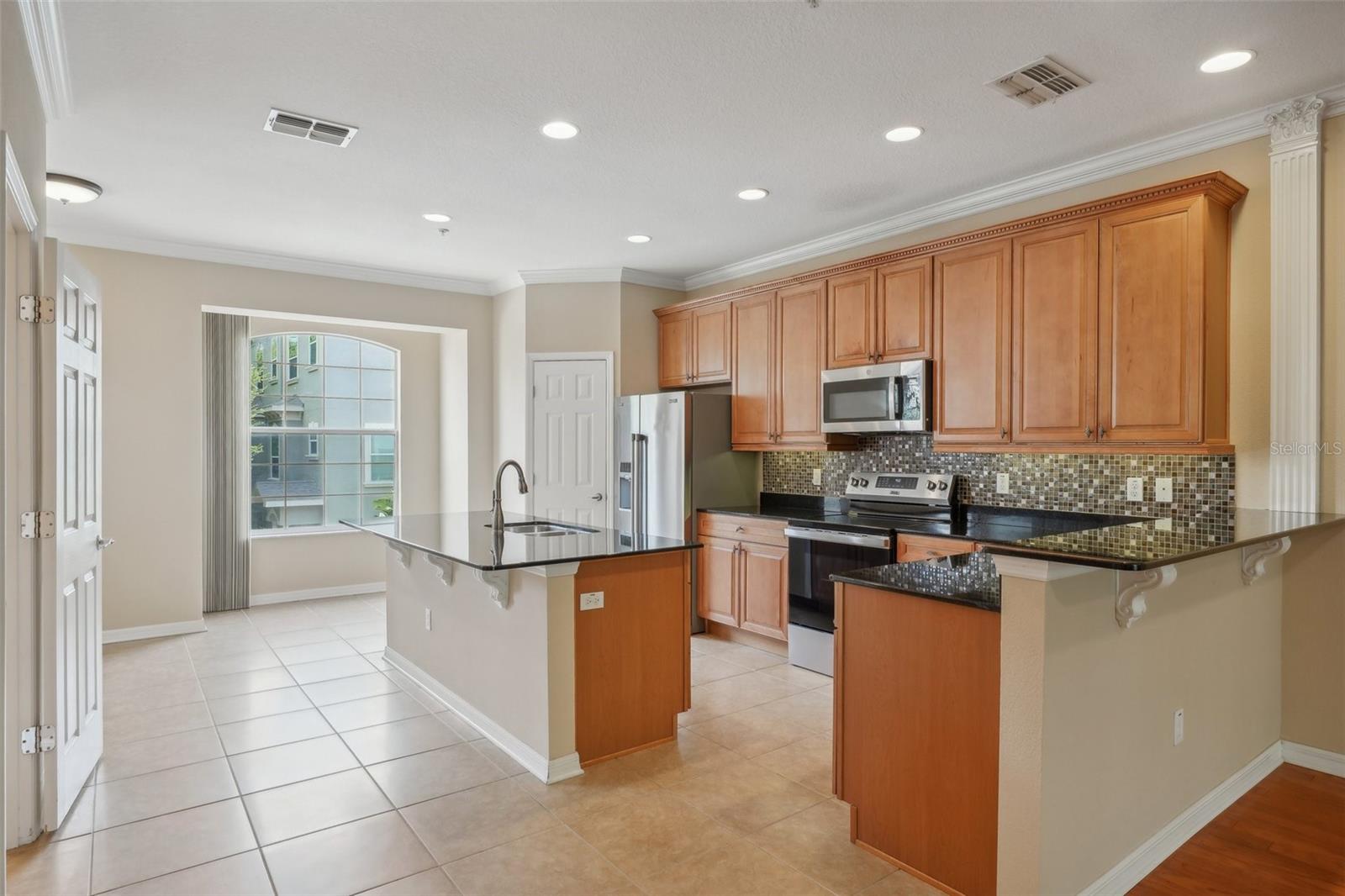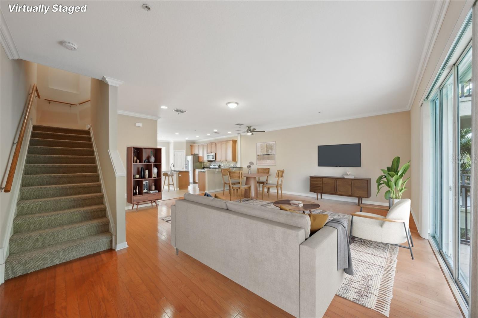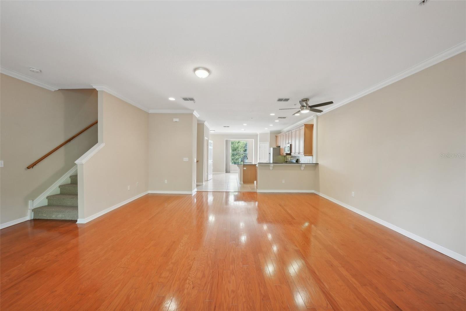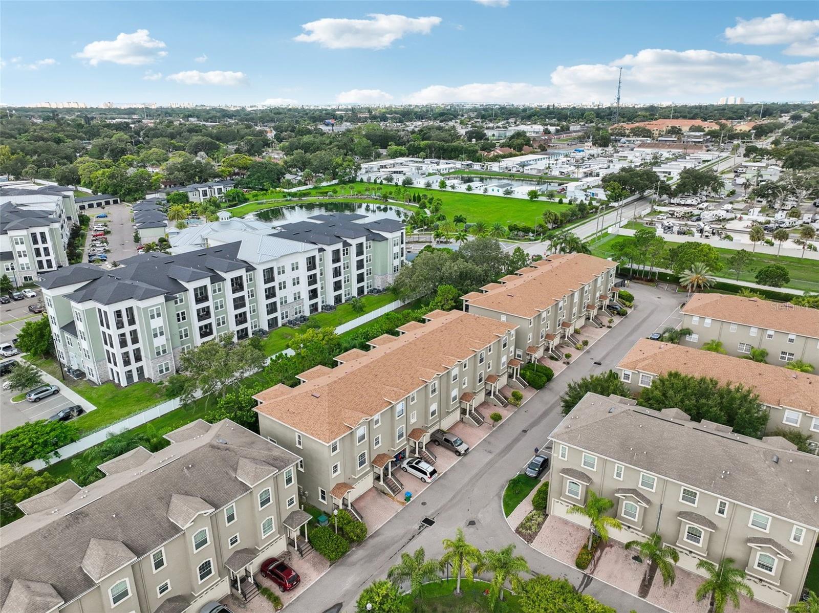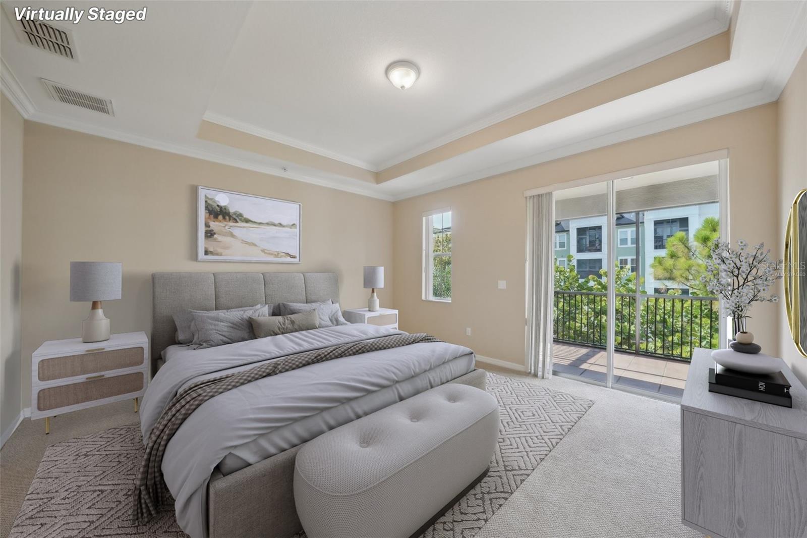 One or more photo(s) has been virtually staged. Welcome to this exquisite 3-bedroom, 2 full and 2 half-bathroom townhome with a 2-car garage, boasting 2,400 sq. ft., 2 balconies, and a covered patio in the desirable gated community of Bayou Grande! From the moment you enter, you'll be impressed and feel right at home. The foyer greets you with a stunning two-story ceiling. On the first level, you'll find a bonus room with crown molding, a walk-in storage closet, access to the garage, and a convenient half-bath. Step outside through the sliding glass door to the covered back patio to relax and enjoy the fresh air. The second level serves as the main living space and features crown molding throughout, a spacious chef's kitchen with solid wood cabinets, quartz countertops, an island with a breakfast bar, stainless steel appliances, brand new range with air fry feature, a walk-in pantry, and a dining area. The hot water heater is brand new, washer new in 2023, garage opener with new springs in 2022 and complete HVAC system new in 2020. There's also another half-bath and a screened balcony for your morning coffee or evening relaxation. The third level offers a split bedroom layout. The large primary suite at the back of the home includes crown molding, a walk-in closet, an ensuite bathroom with dual sinks, a soaking tub, and a walk-in shower. It also features a private screened-in balcony for a quiet retreat. The hallway to the front bedrooms includes a laundry closet with a full-size washer and dryer, as well as a guest bathroom with a tub/shower combo. Both guest bedrooms are generously sized. Enjoy low-maintenance living at its best! Bayou Grande townhome is family as well as dogs friendly community. The whole complex was painted less than 3 years ago and phase I buildings had new roof about 2 years ago. The HOA covers all exterior landscaping, building maintenance, and repairs, including the roof. You'll love the close proximity to the pool and central mailboxes. This fantastic central location is minutes from beautiful sugar-sand beaches, incredible waterfront parks, Seminole City Center, shopping, dining, and all the amenities at the Seminole Recreation Center, where membership is free for Seminole residents! Low HOA fees and no CDD! Explore the 3D tour and schedule your showing today!