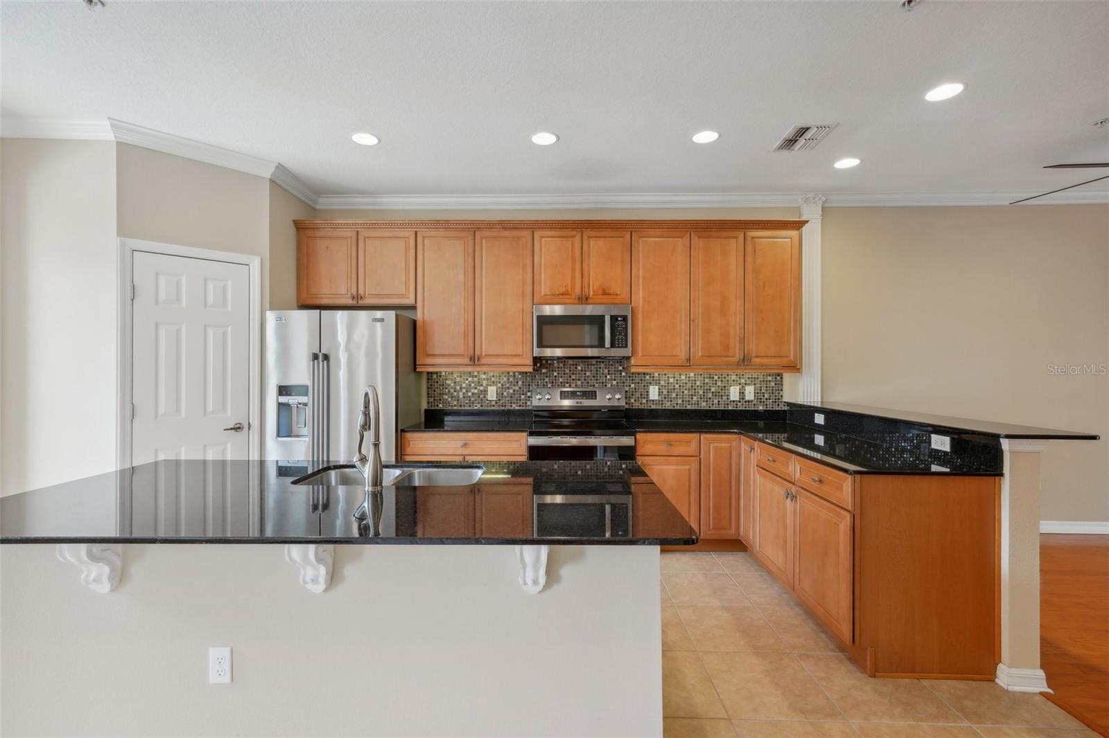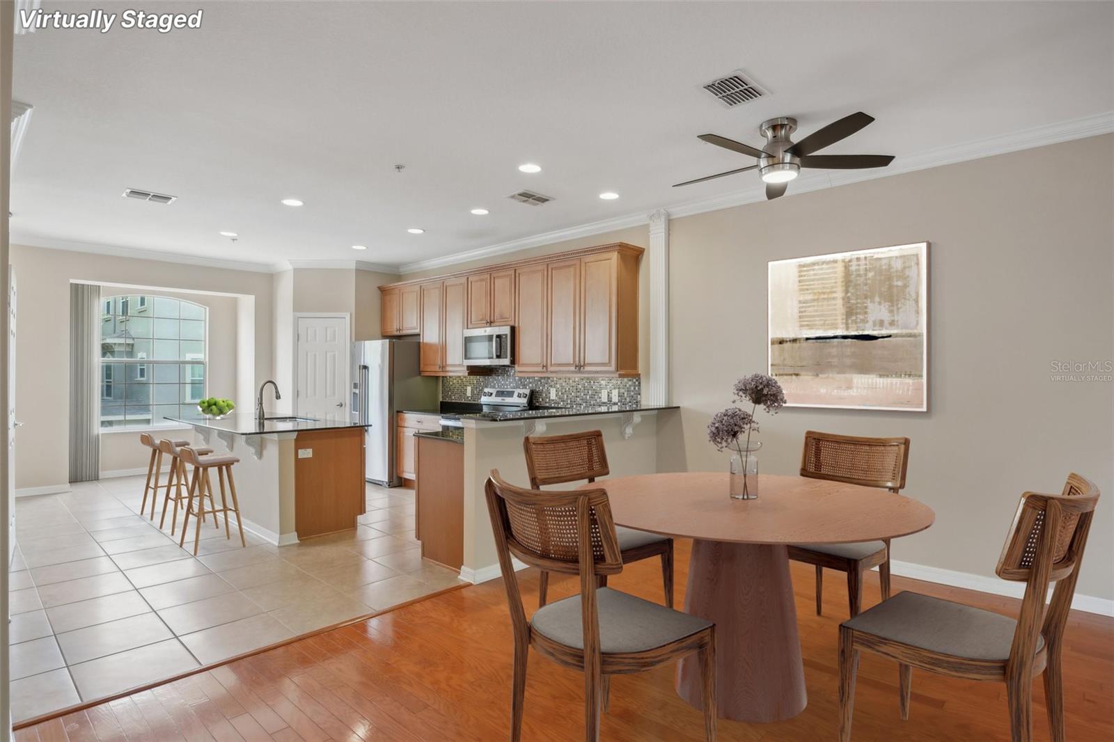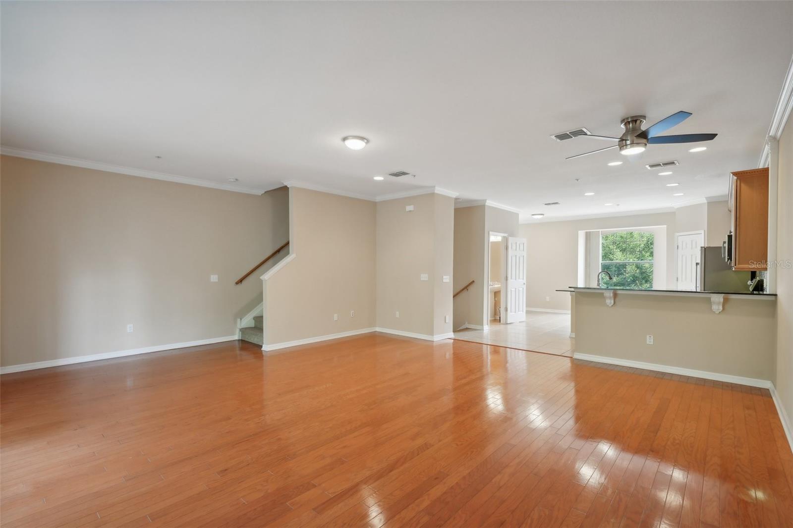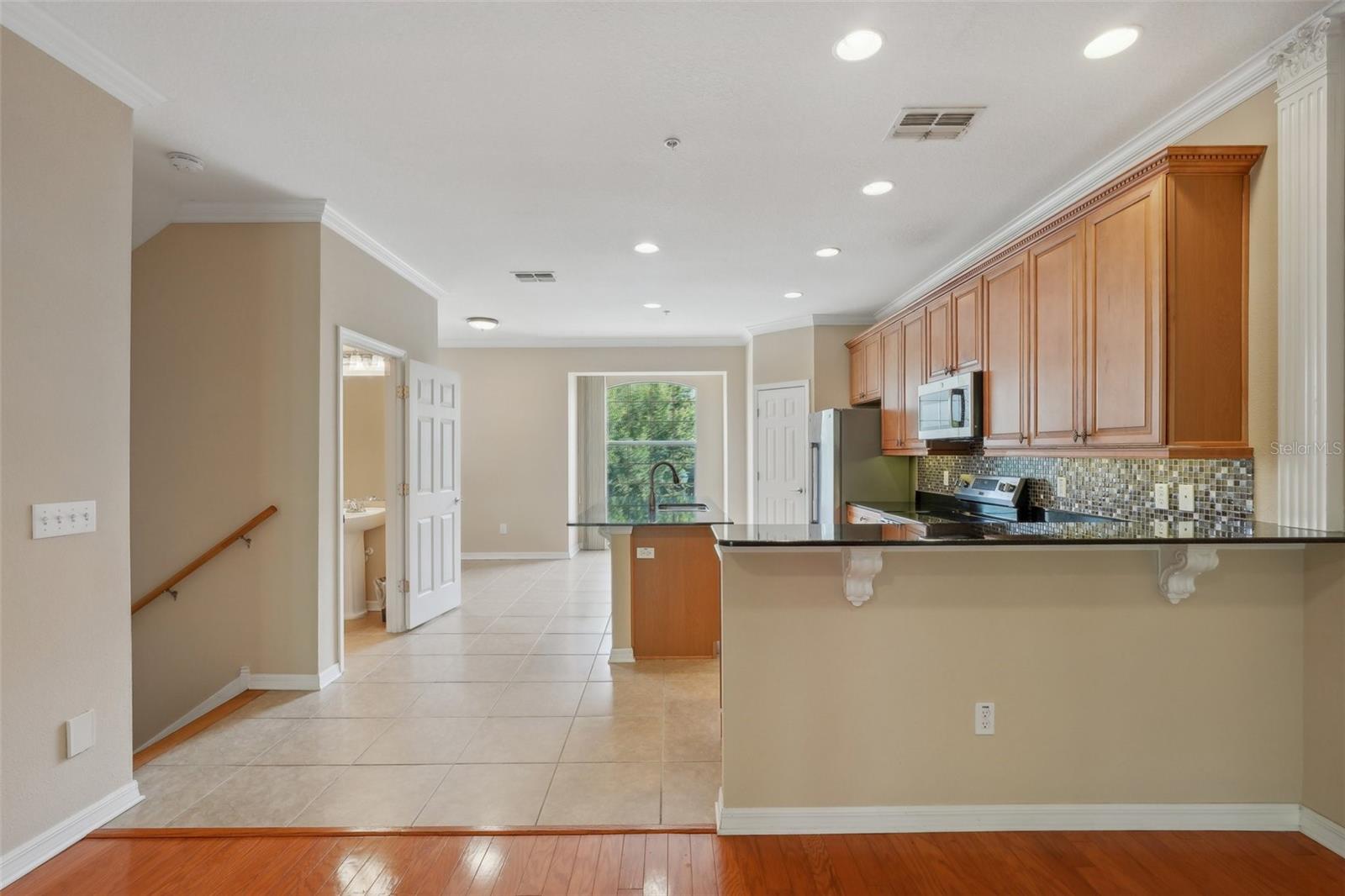 One or more photo(s) has been virtually staged. Welcome to this exquisite 3-bedroom, 2 full and 2 half-bathroom townhome with a 2-car garage, boasting 2,400 sq. ft., 2 balconies, and a covered patio in the desirable gated community of Bayou Grande! From the moment you enter, you'll be impressed and feel right at home. The foyer greets you with a stunning two-story ceiling. On the first level, you'll find a bonus room with crown molding, a walk-in storage closet, access to the garage, and a convenient half-bath. Step outside through the sliding glass door to the covered back patio to relax and enjoy the fresh air. The second level serves as the main living space and features crown molding throughout, a spacious chef's kitchen with solid wood cabinets, quartz countertops, an island with a breakfast bar, stainless steel appliances, brand new range with air fry feature, a walk-in pantry, and a dining area. The hot water heater is brand new, washer new in 2023, garage opener with new springs in 2022 and complete HVAC system new in 2020. There's also another half-bath and a screened balcony for your morning coffee or evening relaxation. The third level offers a split bedroom layout. The large primary suite at the back of the home includes crown molding, a walk-in closet, an ensuite bathroom with dual sinks, a soaking tub, and a walk-in shower. It also features a private screened-in balcony for a quiet retreat. The hallway to the front bedrooms includes a laundry closet with a full-size washer and dryer, as well as a guest bathroom with a tub/shower combo. Both guest bedrooms are generously sized. Enjoy low-maintenance living at its best! Bayou Grande townhome is family as well as dogs friendly community. The whole complex was painted less than 3 years ago and phase I buildings had new roof about 2 years ago. The HOA covers all exterior landscaping, building maintenance, and repairs, including the roof. You'll love the close proximity to the pool and central mailboxes. This fantastic central location is minutes from beautiful sugar-sand beaches, incredible waterfront parks, Seminole City Center, shopping, dining, and all the amenities at the Seminole Recreation Center, where membership is free for Seminole residents! Low HOA fees and no CDD! Explore the 3D tour and schedule your showing today!