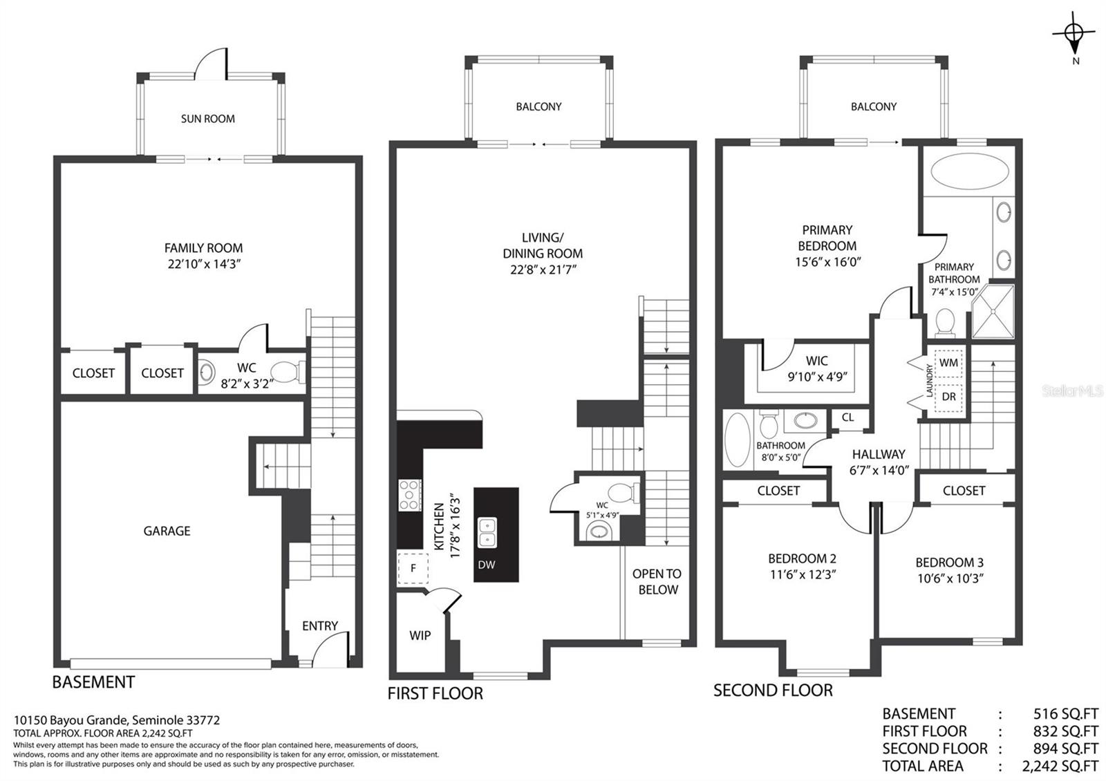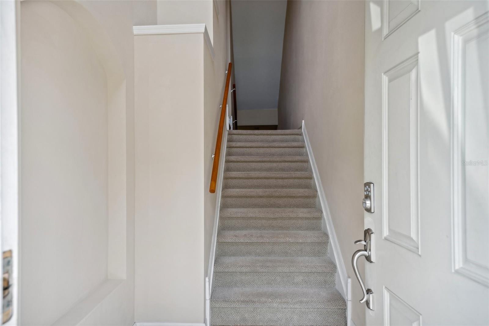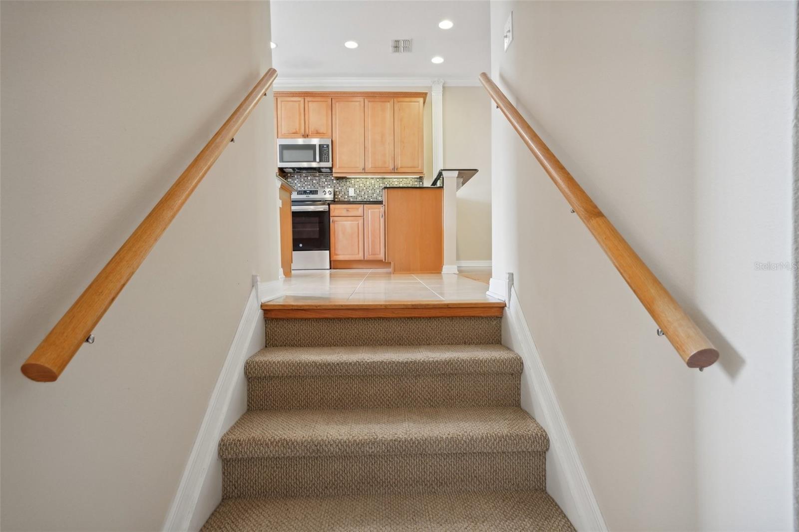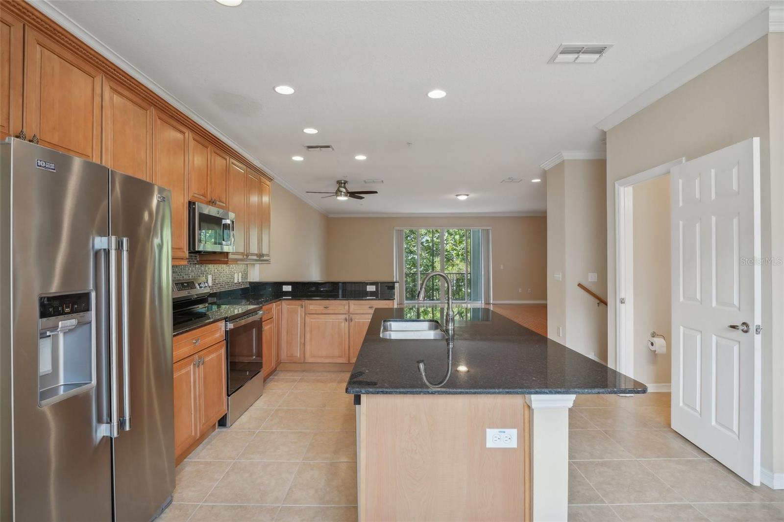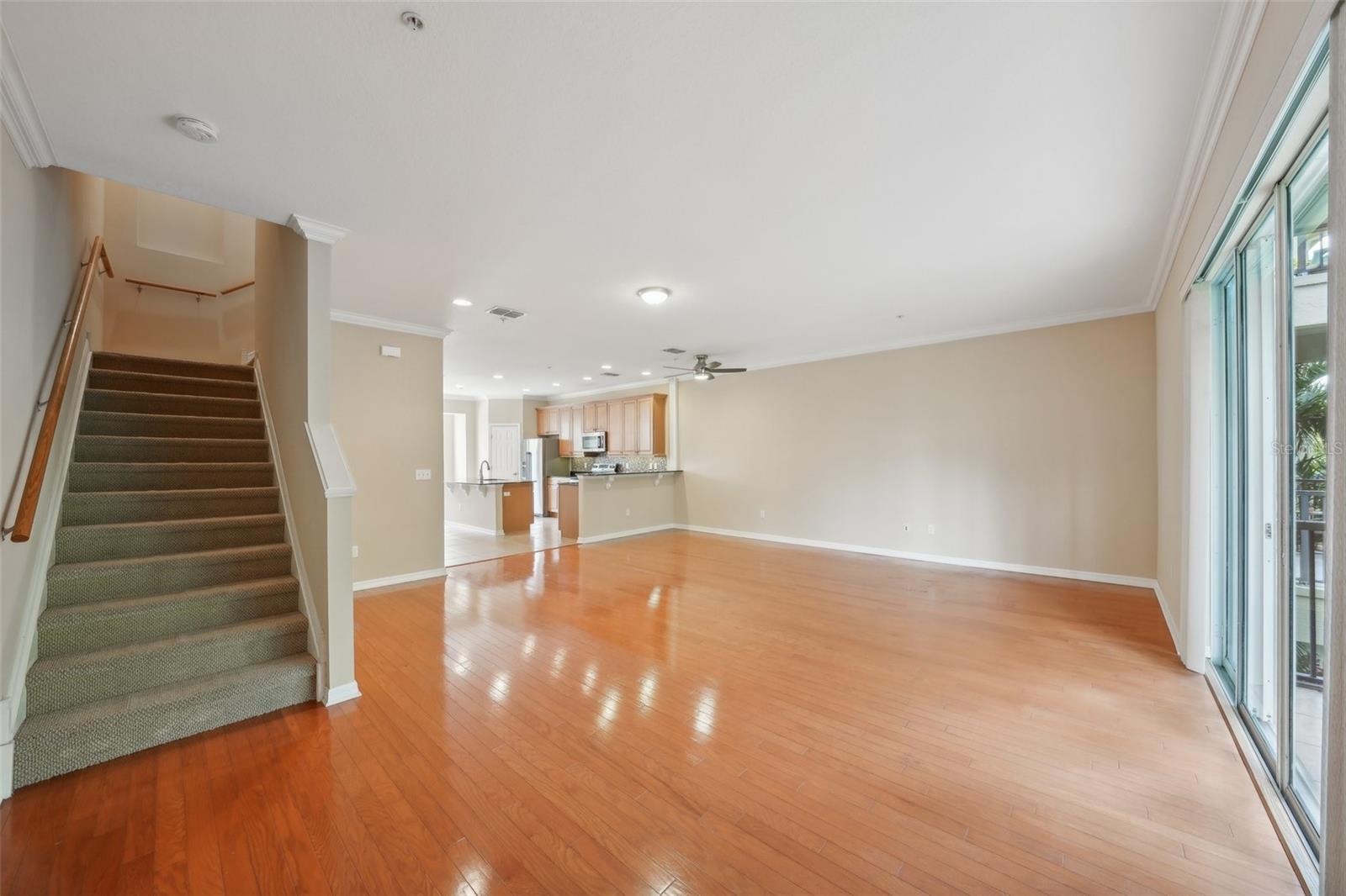 One or more photo(s) has been virtually staged. Welcome to this exquisite 3-bedroom, 2 full and 2 half-bathroom townhome with a 2-car garage, boasting 2,400 sq. ft., 2 balconies, and a covered patio in the desirable gated community of Bayou Grande! From the moment you enter, you'll be impressed and feel right at home. The foyer greets you with a stunning two-story ceiling. On the first level, you'll find a bonus room with crown molding, a walk-in storage closet, access to the garage, and a convenient half-bath. Step outside through the sliding glass door to the covered back patio to relax and enjoy the fresh air. The second level serves as the main living space and features crown molding throughout, a spacious chef's kitchen with solid wood cabinets, quartz countertops, an island with a breakfast bar, stainless steel appliances, brand new range with air fry feature, a walk-in pantry, and a dining area. The hot water heater is brand new, washer new in 2023, garage opener with new springs in 2022 and complete HVAC system new in 2020. There's also another half-bath and a screened balcony for your morning coffee or evening relaxation. The third level offers a split bedroom layout. The large primary suite at the back of the home includes crown molding, a walk-in closet, an ensuite bathroom with dual sinks, a soaking tub, and a walk-in shower. It also features a private screened-in balcony for a quiet retreat. The hallway to the front bedrooms includes a laundry closet with a full-size washer and dryer, as well as a guest bathroom with a tub/shower combo. Both guest bedrooms are generously sized. Enjoy low-maintenance living at its best! Bayou Grande townhome is family as well as dogs friendly community. The whole complex was painted less than 3 years ago and phase I buildings had new roof about 2 years ago. The HOA covers all exterior landscaping, building maintenance, and repairs, including the roof. You'll love the close proximity to the pool and central mailboxes. This fantastic central location is minutes from beautiful sugar-sand beaches, incredible waterfront parks, Seminole City Center, shopping, dining, and all the amenities at the Seminole Recreation Center, where membership is free for Seminole residents! Low HOA fees and no CDD! Explore the 3D tour and schedule your showing today!