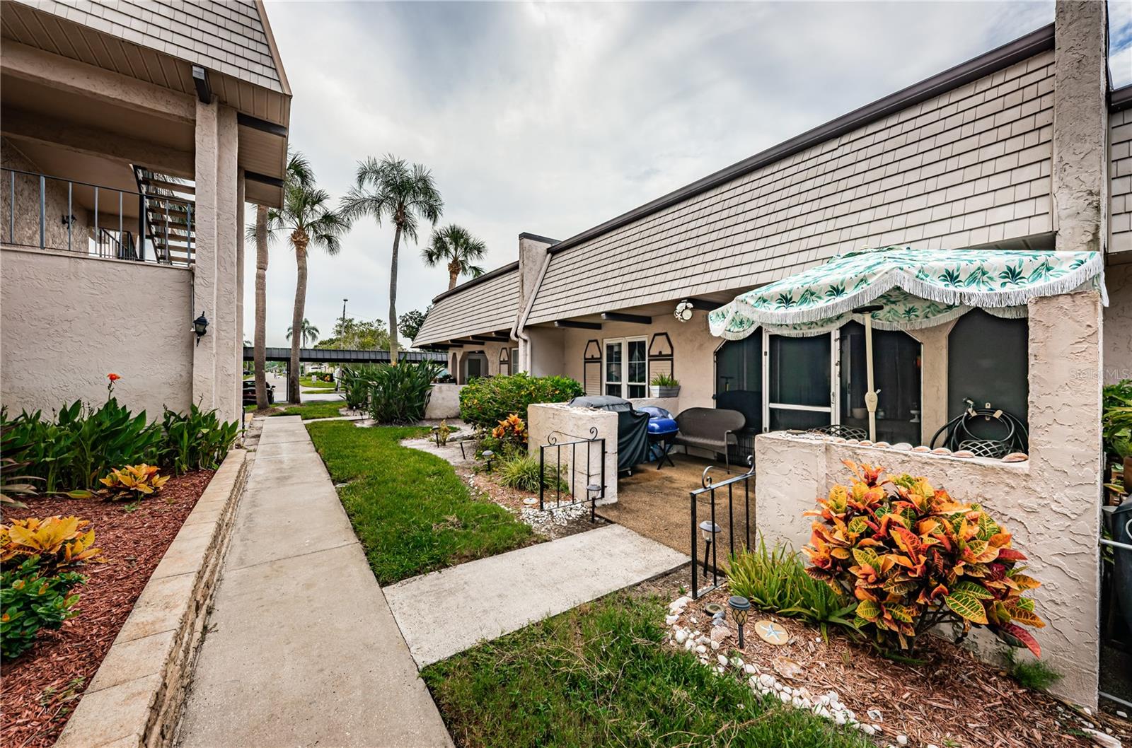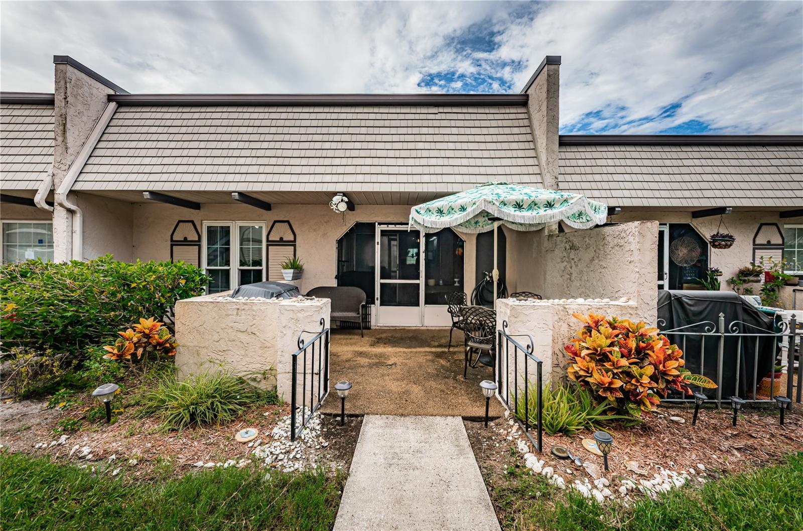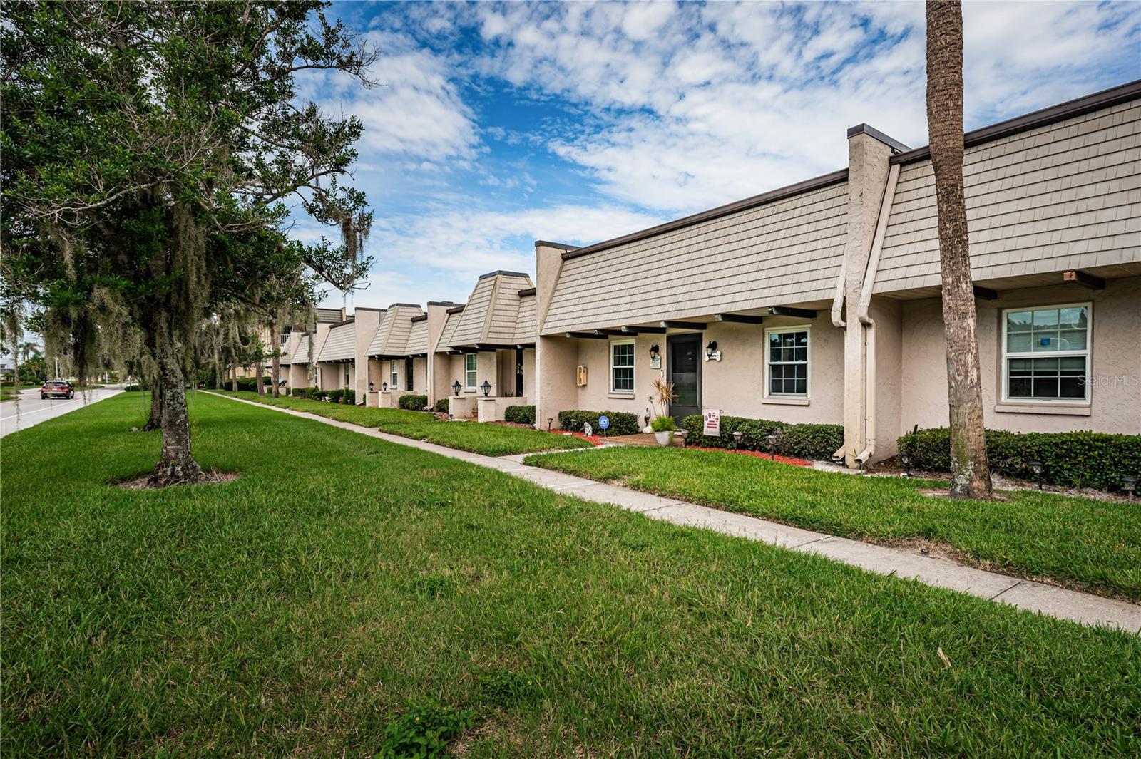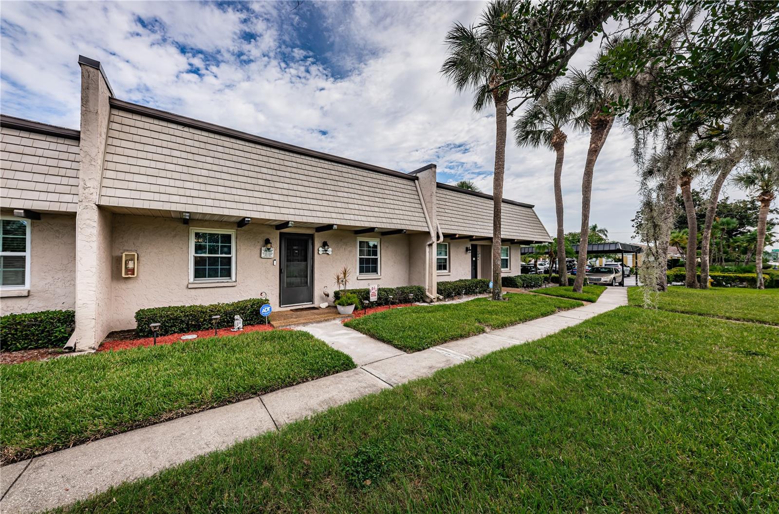 2 storms and nothing happened to this well situated and nicely updated 2-bedroom, 2-bathroom one-story condo/villa, located in desirable Bardmoor. This Golf and Tennis community Welcomes you! The home features a spacious split-bedroom floor plan, each offering its own ensuite bathroom for added privacy. The renovated eat-in kitchen boasts a farmhouse sink, new stainless-steel appliances, quartz countertops, and sleek new cabinetry. It seamlessly opens onto the bright and airy living/ dining room combination, freshly painted in serene coastal tones. The primary bedroom includes a large walk-in closet and a bathroom with a tub/shower combo, while the second bath features a walk-in shower. Enjoy outdoor living on the screened-in lanai or the open patio, just steps away from the community's heated pool and spa jacuzzi. Additional features include a brand-new A/C system (2023), new toilet and new modern vanity in second bathrom, updated pergo flooring, and fresh paint throughout. A covered carport is included, with plenty of guest parking available, along with a small storage. This home is in a prime central location, just minutes from beautiful beaches, vibrant downtown St. Pete, easy access to I-275 for a quick commute to Tampa, and Seminole City Center with shops, movie theatres and restaurants. This home is the perfect blend of modern updates, convenience, and desirable amenities! No age restrictions, pets are allowed, and leasing is allowed with management approval.