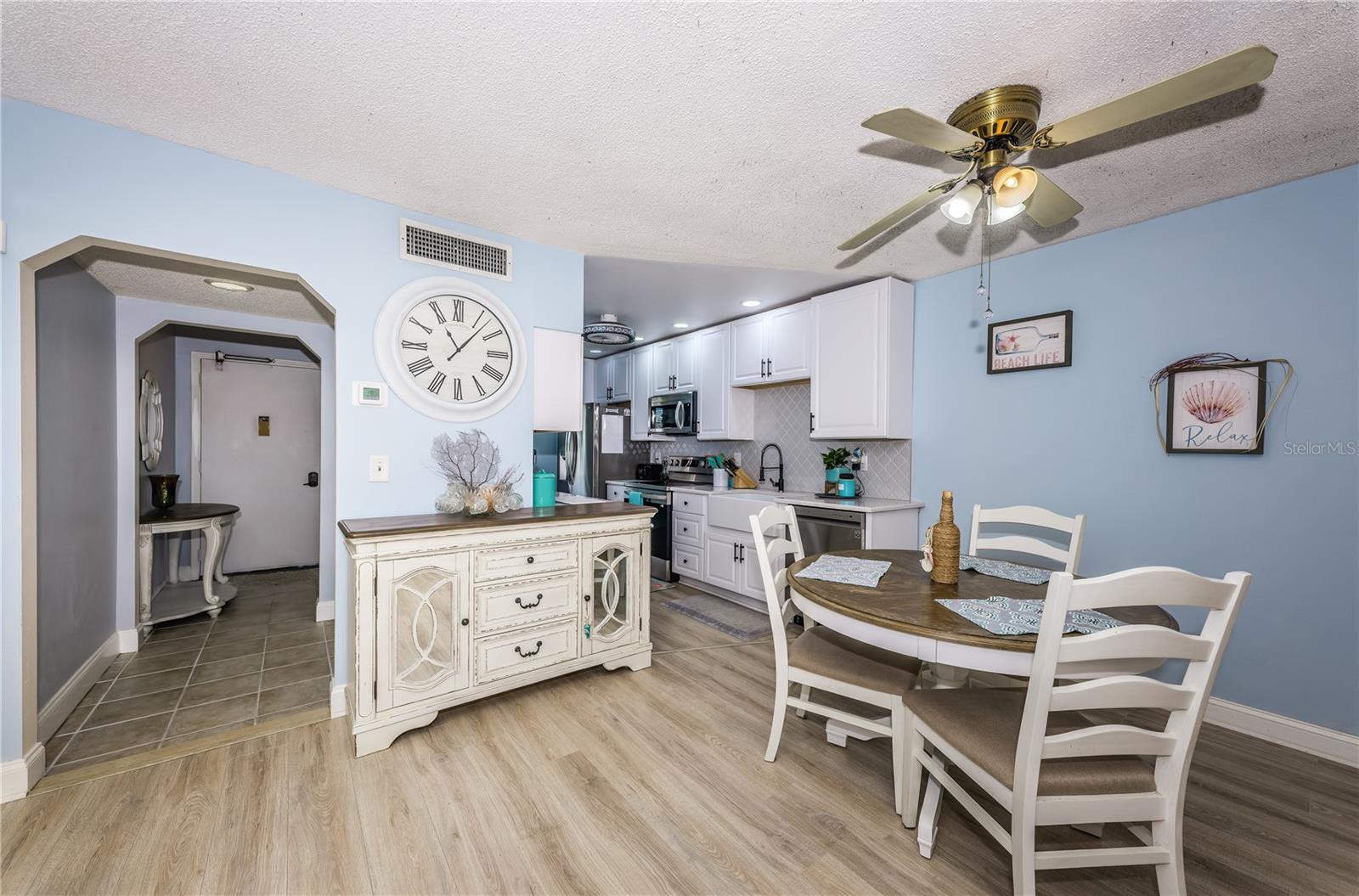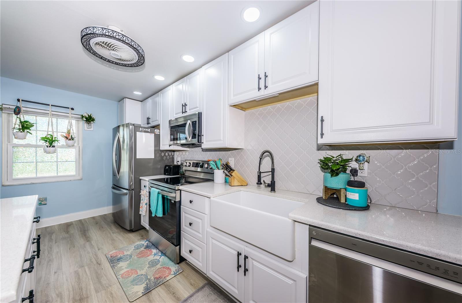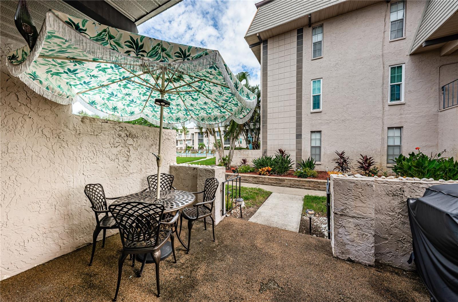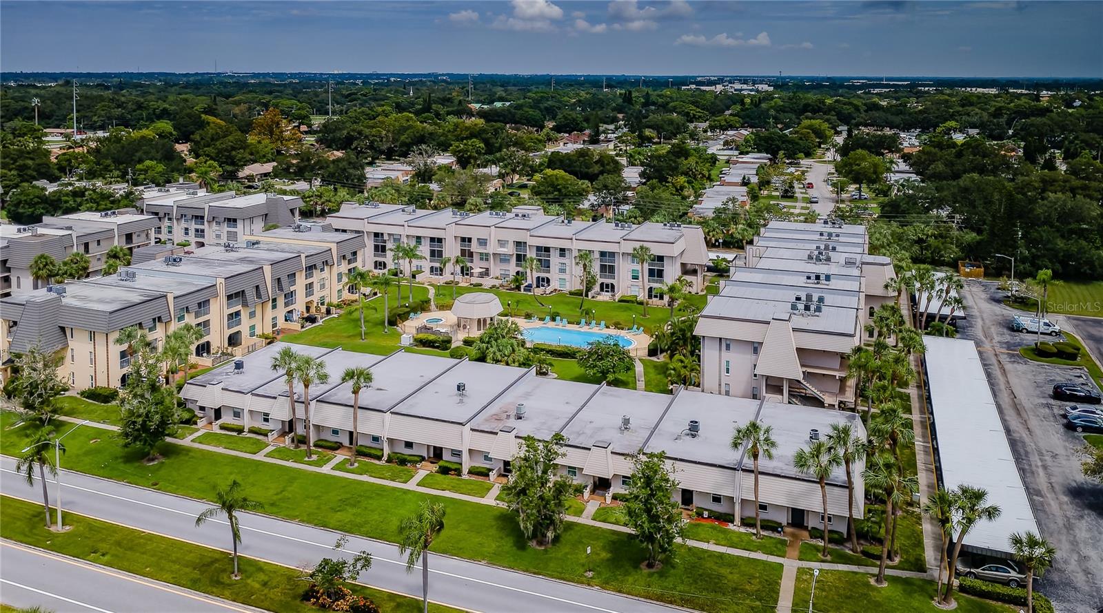 2 storms and nothing happened to this well situated and nicely updated 2-bedroom, 2-bathroom one-story condo/villa, located in desirable Bardmoor. This Golf and Tennis community Welcomes you! The home features a spacious split-bedroom floor plan, each offering its own ensuite bathroom for added privacy. The renovated eat-in kitchen boasts a farmhouse sink, new stainless-steel appliances, quartz countertops, and sleek new cabinetry. It seamlessly opens onto the bright and airy living/ dining room combination, freshly painted in serene coastal tones. The primary bedroom includes a large walk-in closet and a bathroom with a tub/shower combo, while the second bath features a walk-in shower. Enjoy outdoor living on the screened-in lanai or the open patio, just steps away from the community's heated pool and spa jacuzzi. Additional features include a brand-new A/C system (2023), new toilet and new modern vanity in second bathrom, updated pergo flooring, and fresh paint throughout. A covered carport is included, with plenty of guest parking available, along with a small storage. This home is in a prime central location, just minutes from beautiful beaches, vibrant downtown St. Pete, easy access to I-275 for a quick commute to Tampa, and Seminole City Center with shops, movie theatres and restaurants. This home is the perfect blend of modern updates, convenience, and desirable amenities! No age restrictions, pets are allowed, and leasing is allowed with management approval.