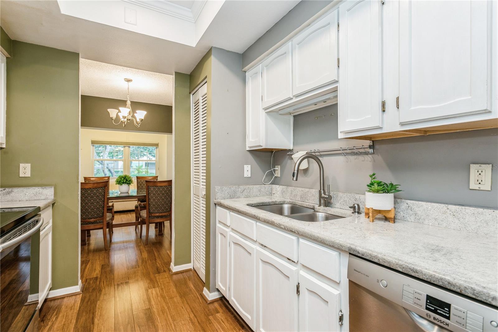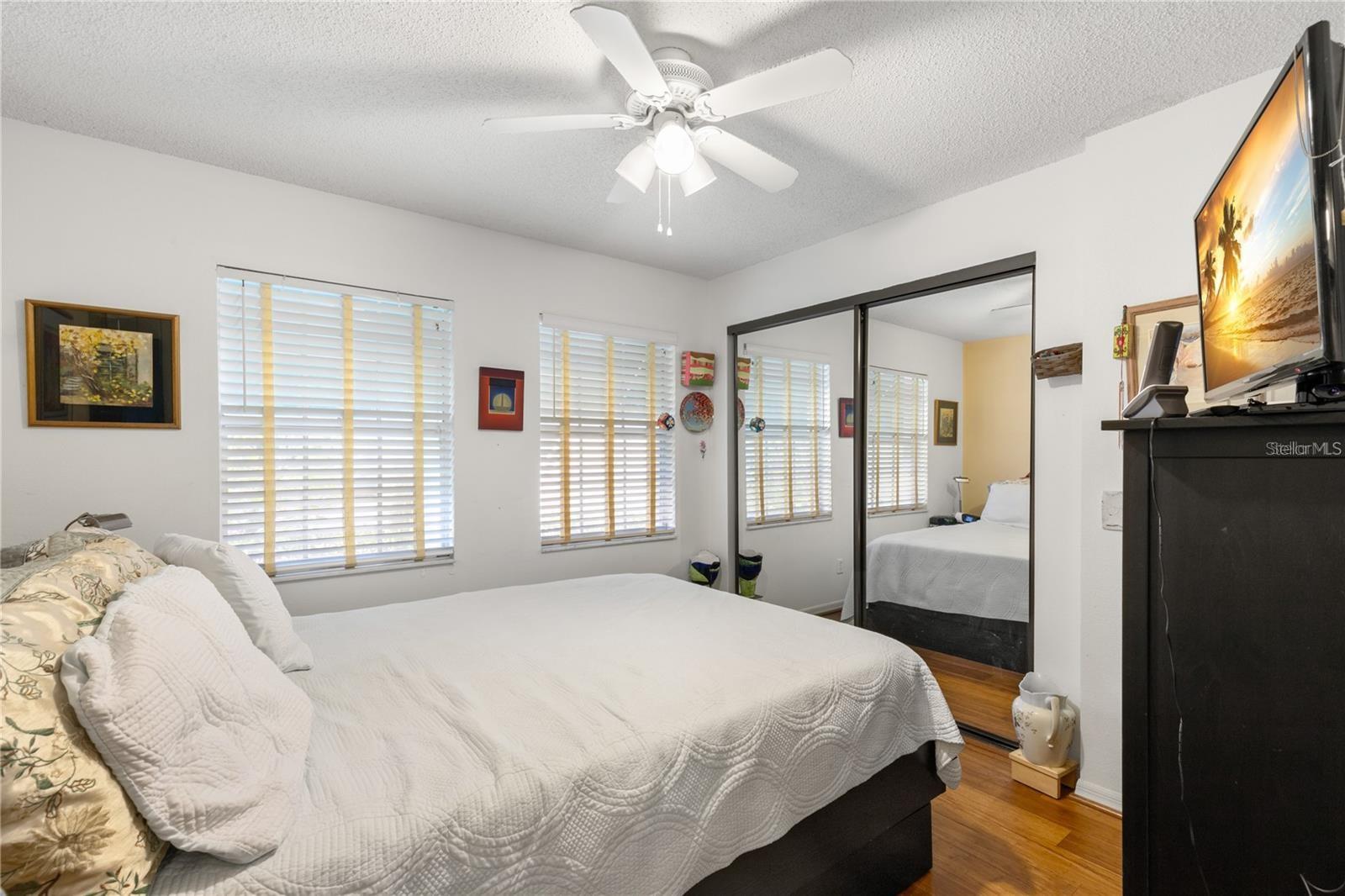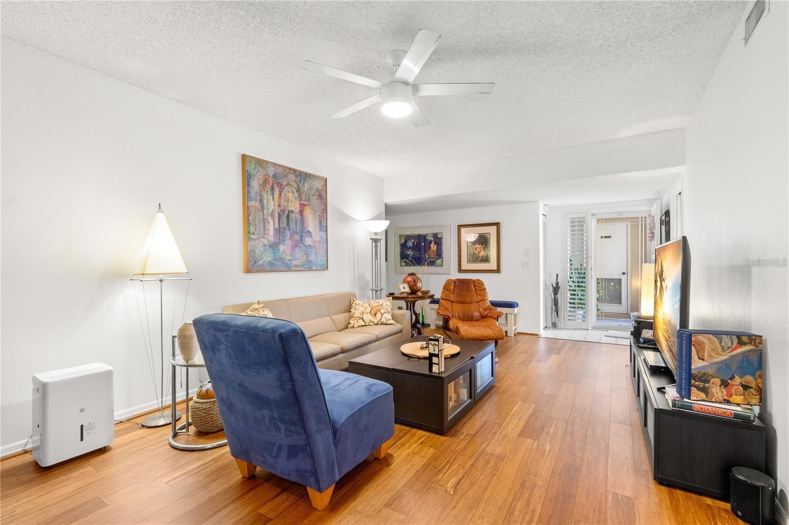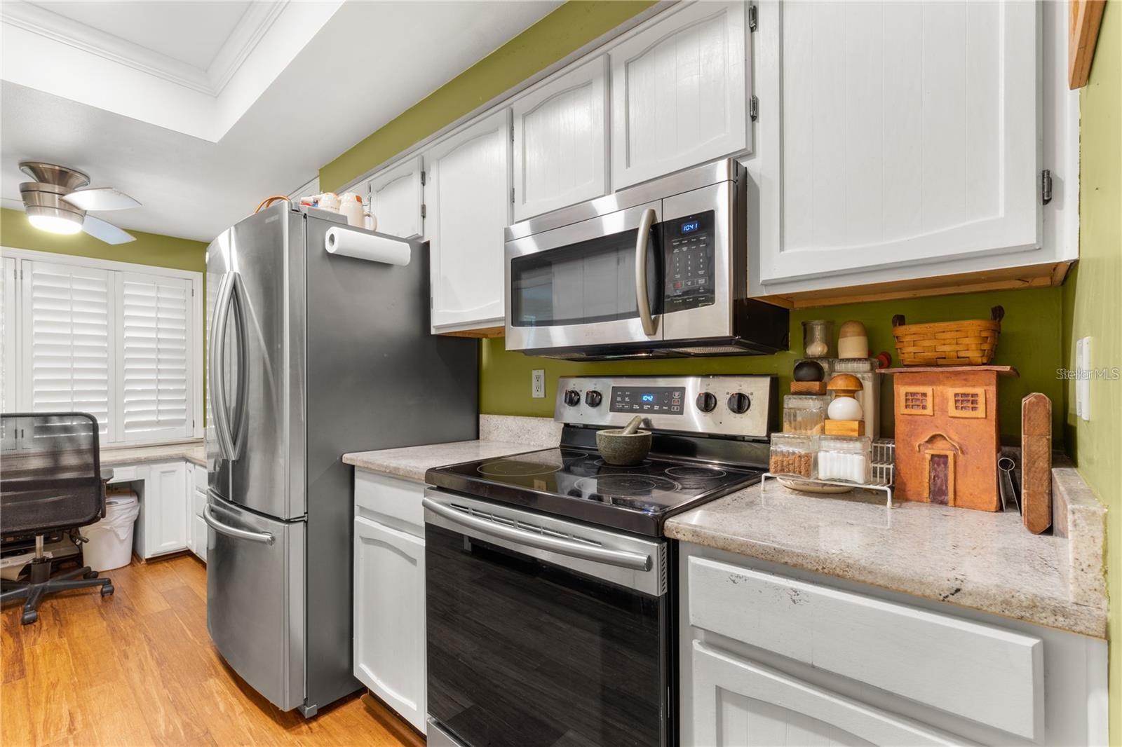 Enter into this move-in-ready, ground-floor gem nestled in the heart of the pet friendly, 42 unit, all-ages Bardmoor golf community. The location is incredibly conveinent, with shopping, restaurants and services only half a mile away. This home boasts generously sized bedrooms, including a primary suite with an ensuite bathroom dual closets and a full guest bath with dual sinks, ensuring comfort and privacy for all. Imagine cozy evenings by the stunning wood-burning fireplace in the spacious living room, perfect for creating lasting memories. The kitchen is a chef's delight, featuring stainless steel appliances (new in 2019) and elegant granite countertops. Plus, the built-in desk with a granite top offers a stylish and functional workspace with ample storage. The dining room has been thoughtfully extended by enclosing a former sunroom, providing an expansive area for entertaining or indulging in your favorite hobbies. Don't miss the extra closet behind the fireplace—ideal for additional storage! Enjoy the views of the well maintained green spaces with plantation blinds at the front and wood blinds at the back, complemented by all-bamboo floors throughout the main living spaces and bedrooms. Convenience is key with in-unit laundry and excellent views of the community green space. Just seconds away, you'll find a beautiful pool and hot tub, perfect for relaxation and recreation. The roof was replaced in 2020 (all assessments fully paid off), there's truly nothing left to do but move in and enjoy your new home!