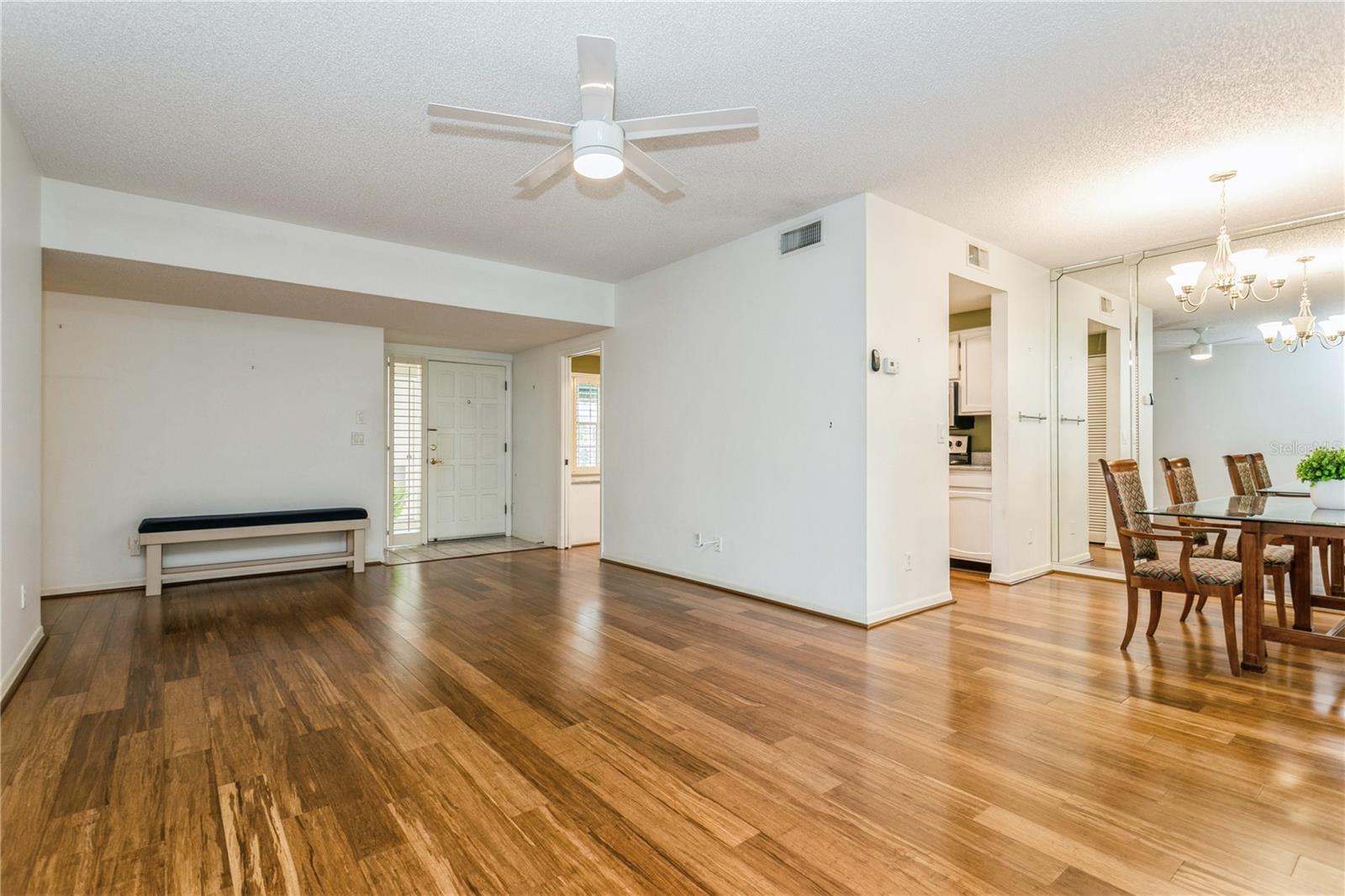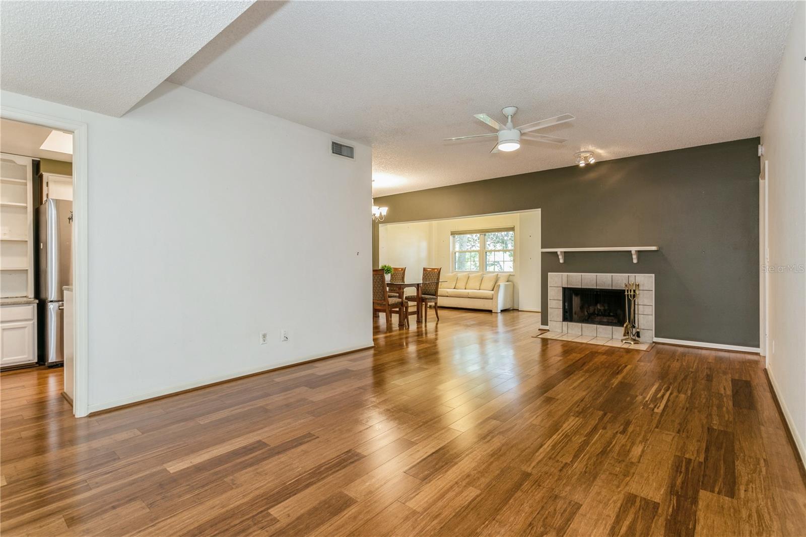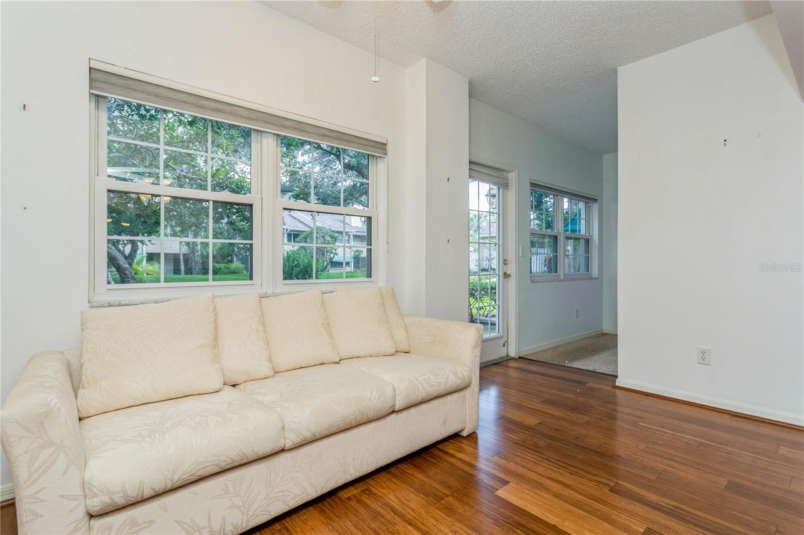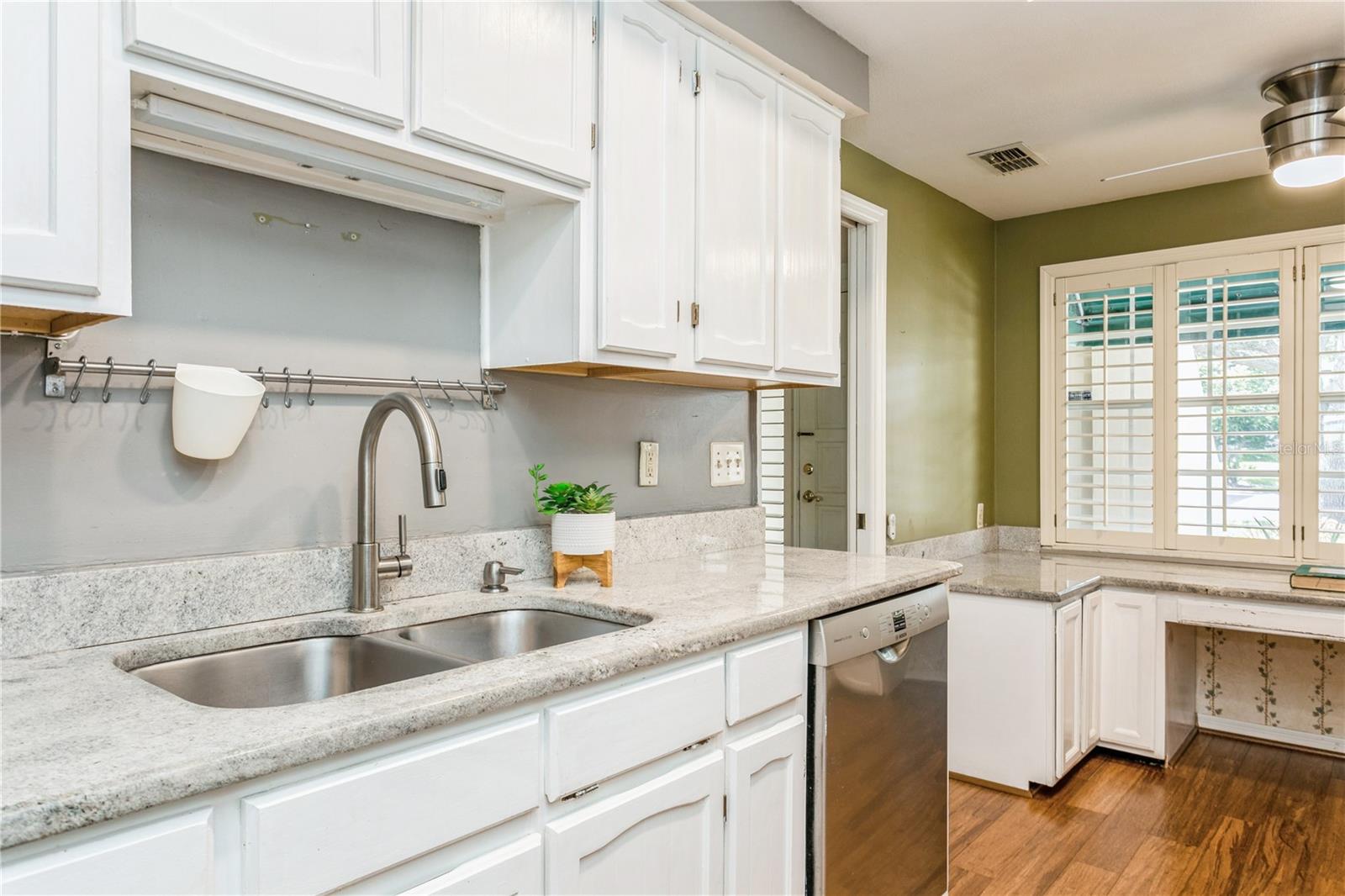 Enter into this move-in-ready, ground-floor gem nestled in the heart of the pet friendly, 42 unit, all-ages Bardmoor golf community. The location is incredibly conveinent, with shopping, restaurants and services only half a mile away. This home boasts generously sized bedrooms, including a primary suite with an ensuite bathroom dual closets and a full guest bath with dual sinks, ensuring comfort and privacy for all. Imagine cozy evenings by the stunning wood-burning fireplace in the spacious living room, perfect for creating lasting memories. The kitchen is a chef's delight, featuring stainless steel appliances (new in 2019) and elegant granite countertops. Plus, the built-in desk with a granite top offers a stylish and functional workspace with ample storage. The dining room has been thoughtfully extended by enclosing a former sunroom, providing an expansive area for entertaining or indulging in your favorite hobbies. Don't miss the extra closet behind the fireplace—ideal for additional storage! Enjoy the views of the well maintained green spaces with plantation blinds at the front and wood blinds at the back, complemented by all-bamboo floors throughout the main living spaces and bedrooms. Convenience is key with in-unit laundry and excellent views of the community green space. Just seconds away, you'll find a beautiful pool and hot tub, perfect for relaxation and recreation. The roof was replaced in 2020 (all assessments fully paid off), there's truly nothing left to do but move in and enjoy your new home!