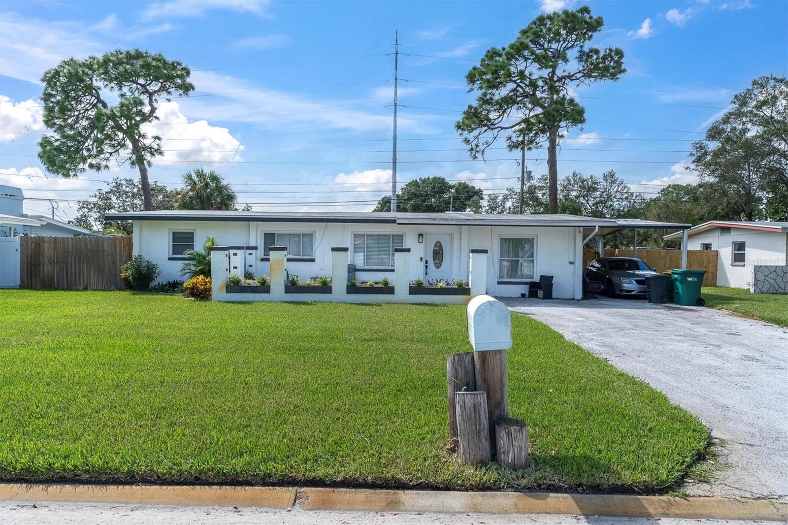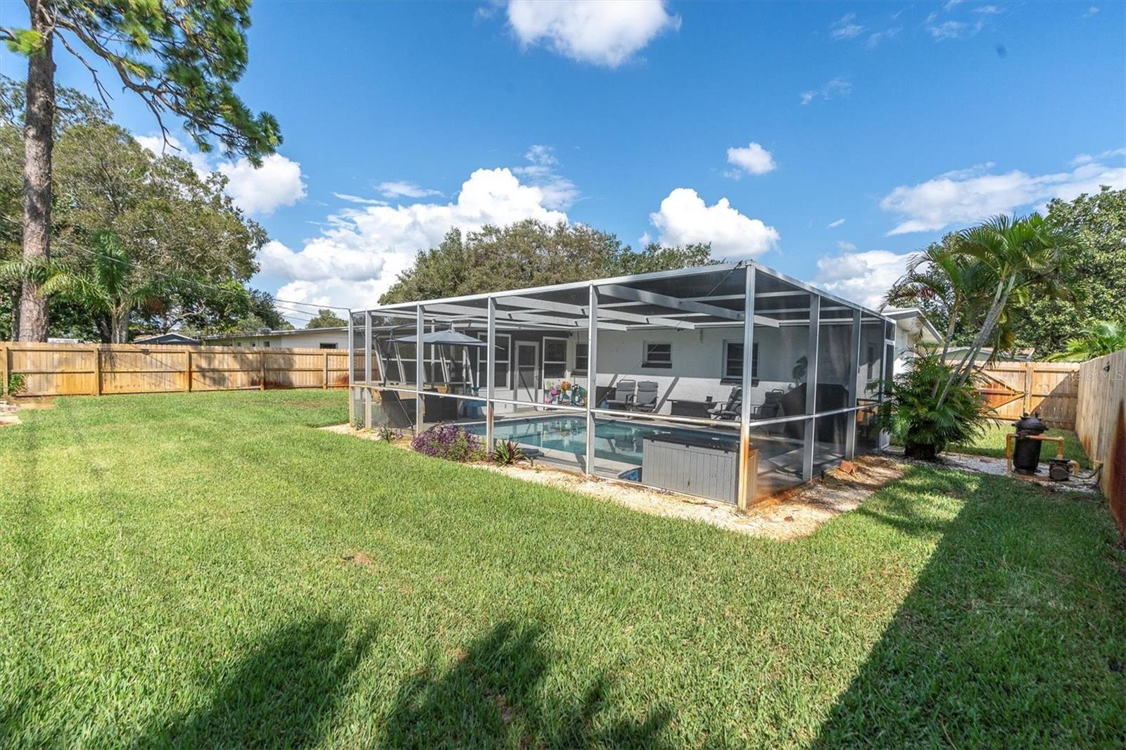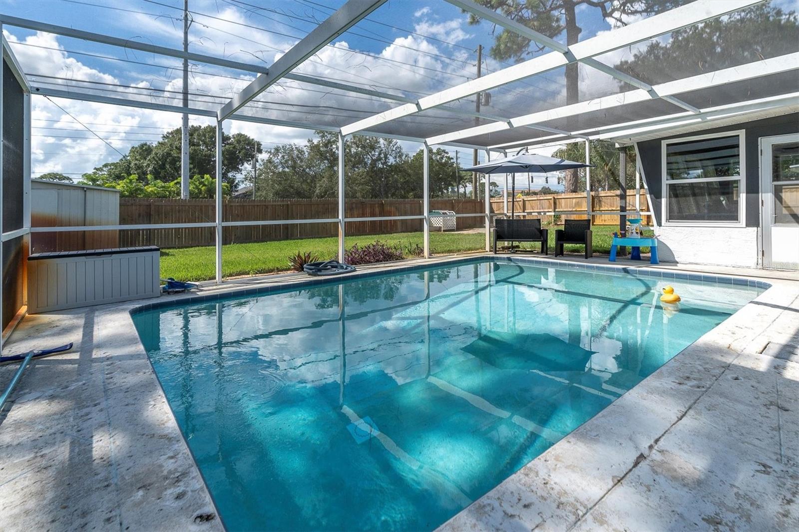 This POOL home is the one you have been waiting for! NON Flood zone and block construction, this home did extremely well through the hurricanes! With 3 bedrooms, 1 bathroom, a 1 car carport, plus a huge flex space that can be used as a 4th bedroom or second living room, this 1250 sqft home is move in ready. Upon entering the home you will find a split floorplan with 2 large living spaces and a separate dining area providing plenty of room for those looking for a home office, game area, or 4th bedroom. The kitchen, located in the center of the home, is upgraded with stone countertops and stainless steel appliances. As you exit through the beautiful rear French doors, you will enter a relaxing covered and newly enclosed lanai (new windows 2024) overlooking the private and screened in pool. If a large yard is important to you, this property has a huge fenced in and newly irrigated back yard perfect for your four legged friends! This home is in the prime location of Seminole, where there is NO HOA, NO CDD, and is a NON FLOOD ZONE! Conveniently located just minutes from the mid-Pinellas beaches, grocery stores and shopping centers! Do not wait, make your appointment today!