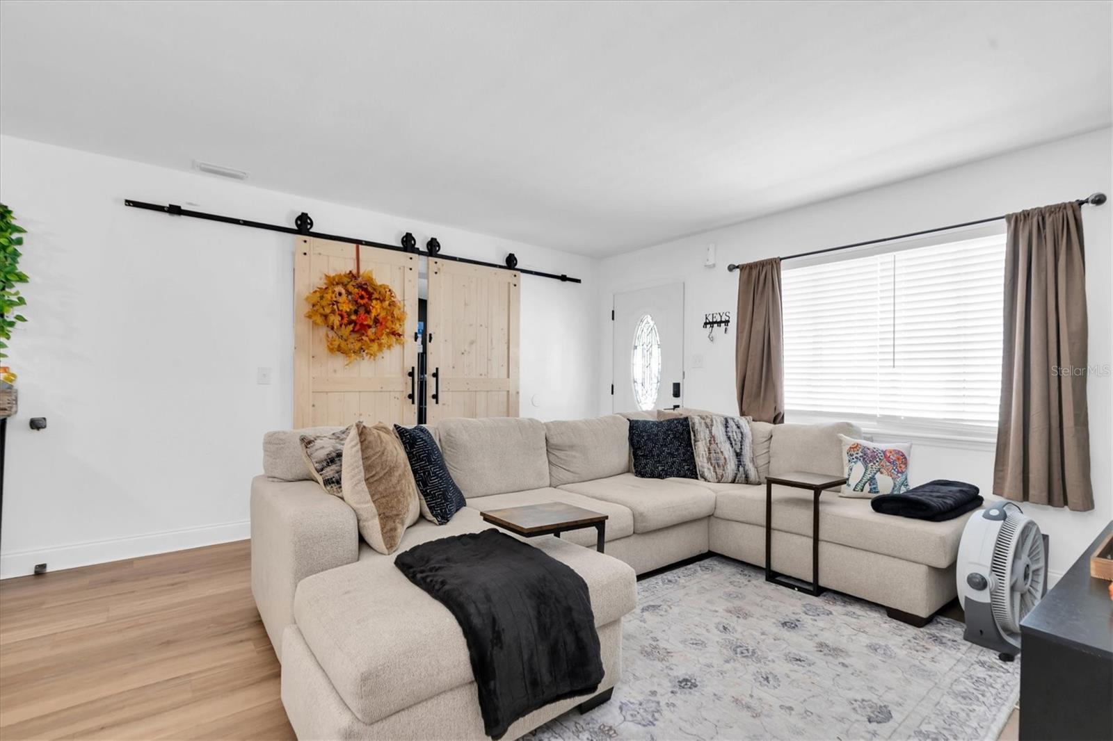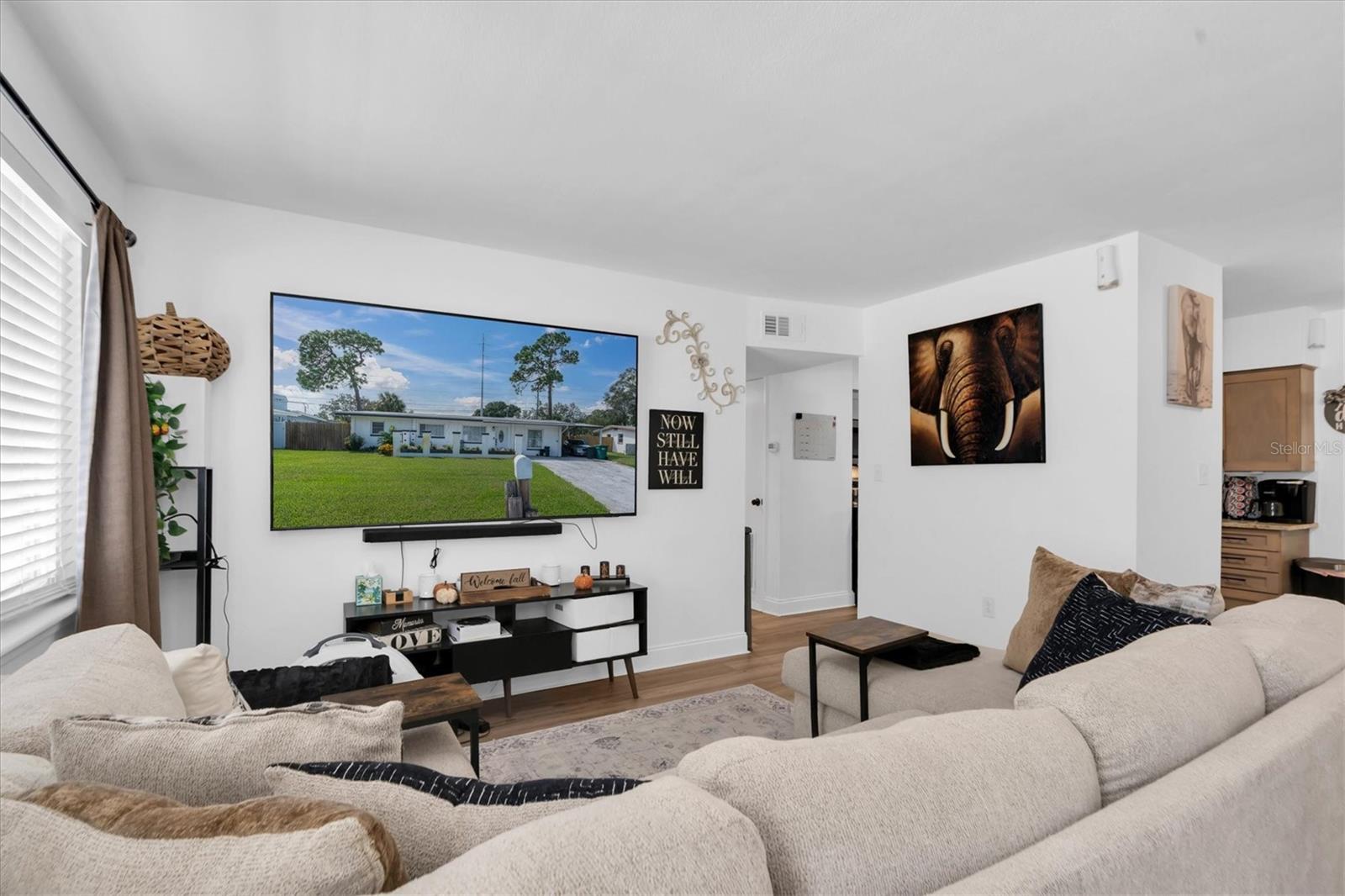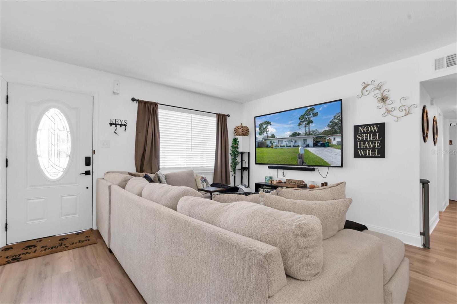 This POOL home is the one you have been waiting for! NON Flood zone and block construction, this home did extremely well through the hurricanes! With 3 bedrooms, 1 bathroom, a 1 car carport, plus a huge flex space that can be used as a 4th bedroom or second living room, this 1250 sqft home is move in ready. Upon entering the home you will find a split floorplan with 2 large living spaces and a separate dining area providing plenty of room for those looking for a home office, game area, or 4th bedroom. The kitchen, located in the center of the home, is upgraded with stone countertops and stainless steel appliances. As you exit through the beautiful rear French doors, you will enter a relaxing covered and newly enclosed lanai (new windows 2024) overlooking the private and screened in pool. If a large yard is important to you, this property has a huge fenced in and newly irrigated back yard perfect for your four legged friends! This home is in the prime location of Seminole, where there is NO HOA, NO CDD, and is a NON FLOOD ZONE! Conveniently located just minutes from the mid-Pinellas beaches, grocery stores and shopping centers! Do not wait, make your appointment today!