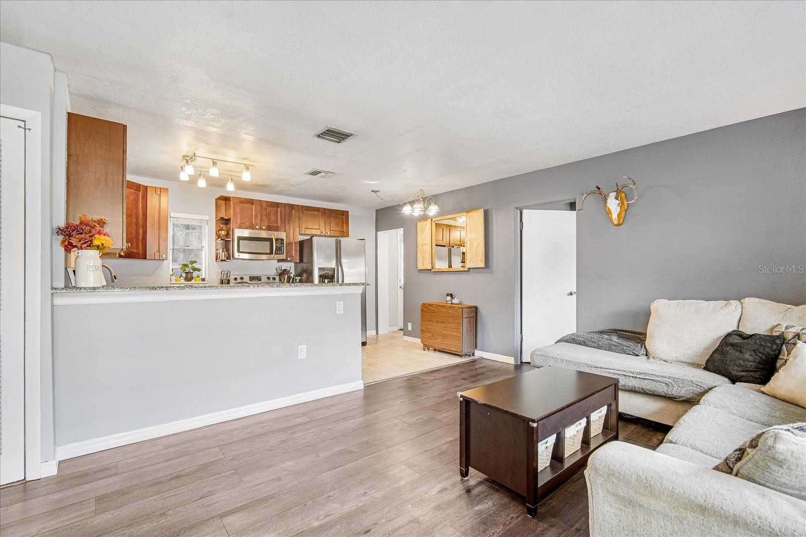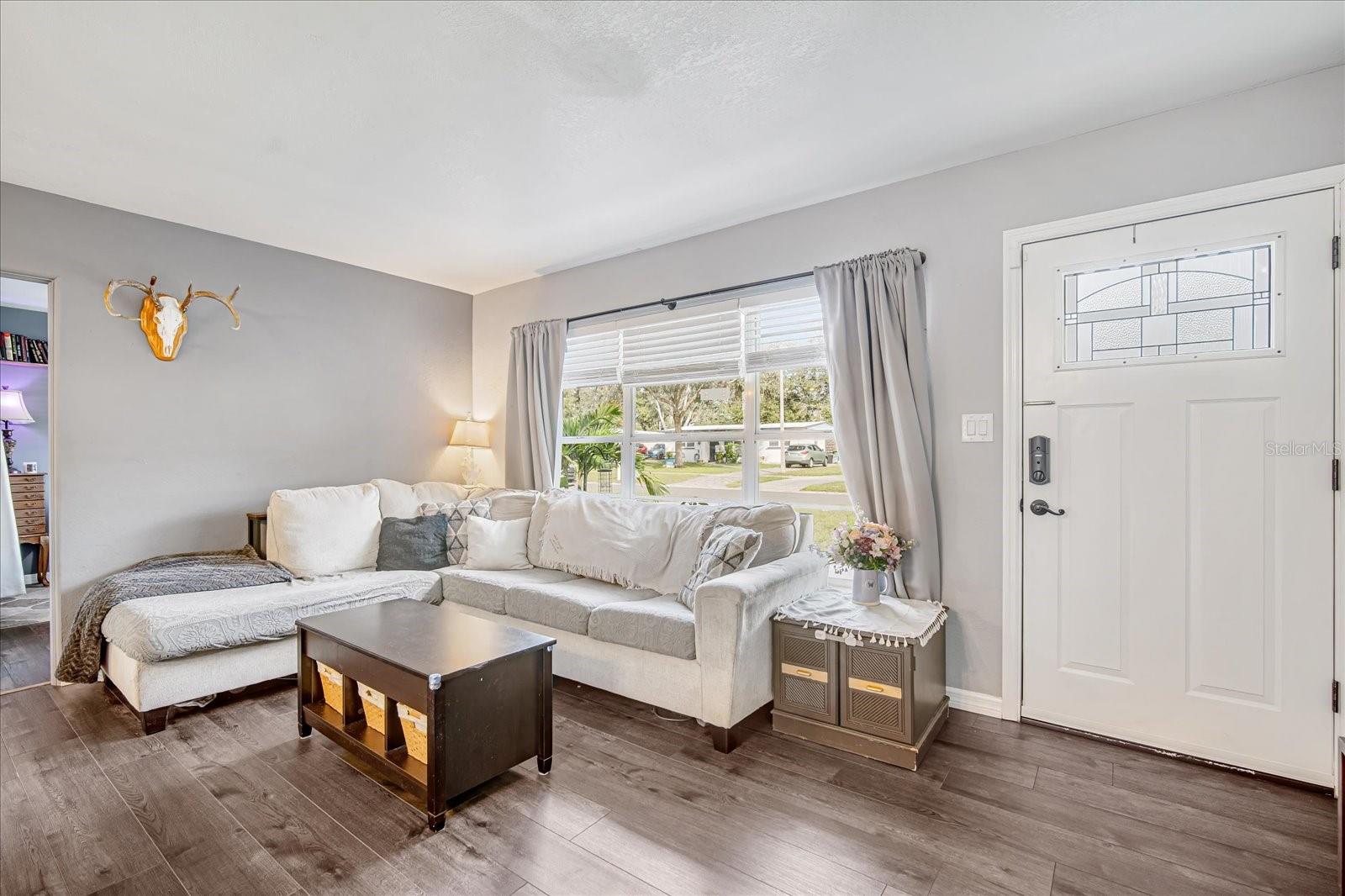 Welcome to this beautifully updated 3-bedroom, 2-bath home in the desirable Seminole area, just minutes from Florida’s stunning beaches! Major updates make this home truly move-in ready, including a new HVAC system (2022), new water heater (2023), and a remodeled bathroom (2023). The entire home boasts new waterproof laminate flooring(2023), ensuring a stylish, low-maintenance living environment—no carpet anywhere! The spacious and inviting open great room is perfect for both relaxing and entertaining, seamlessly flowing into the upgraded kitchen, for all your culinary needs. This home features a thoughtfully designed split-bedroom layout, offering privacy for the primary bedroom, which comes complete with its own private ensuite bath. The fenced backyard is perfect for outdoor living, with ample space to host guests, create a cozy firepit area, or simply enjoy the Florida weather! You’ll also appreciate the one-car garage with built-in shelving, offering great storage solutions. Location is everything, and this home delivers with its proximity to schools, local shopping, and even a nearby golf course. And despite the home’s convenience and coastal appeal, it has had no flooding issues during recent storms, providing peace of mind for the future. Don’t miss your chance to own this beautifully upgraded, well-located home—schedule your showing in Seminole today!