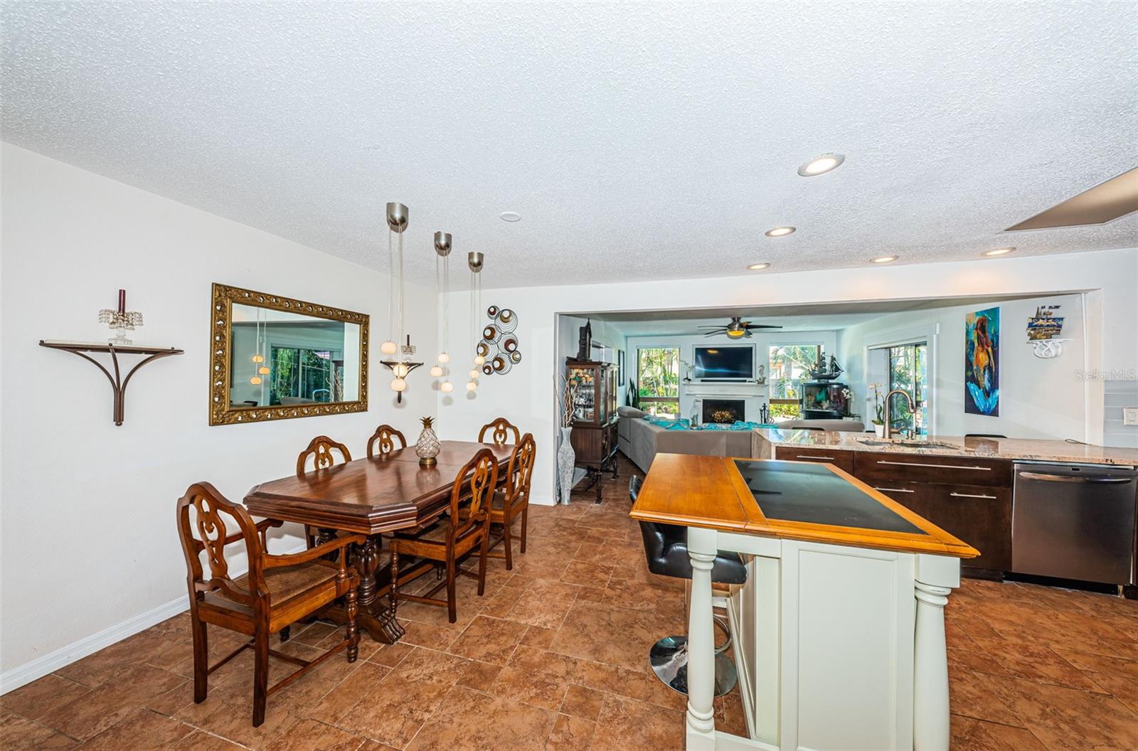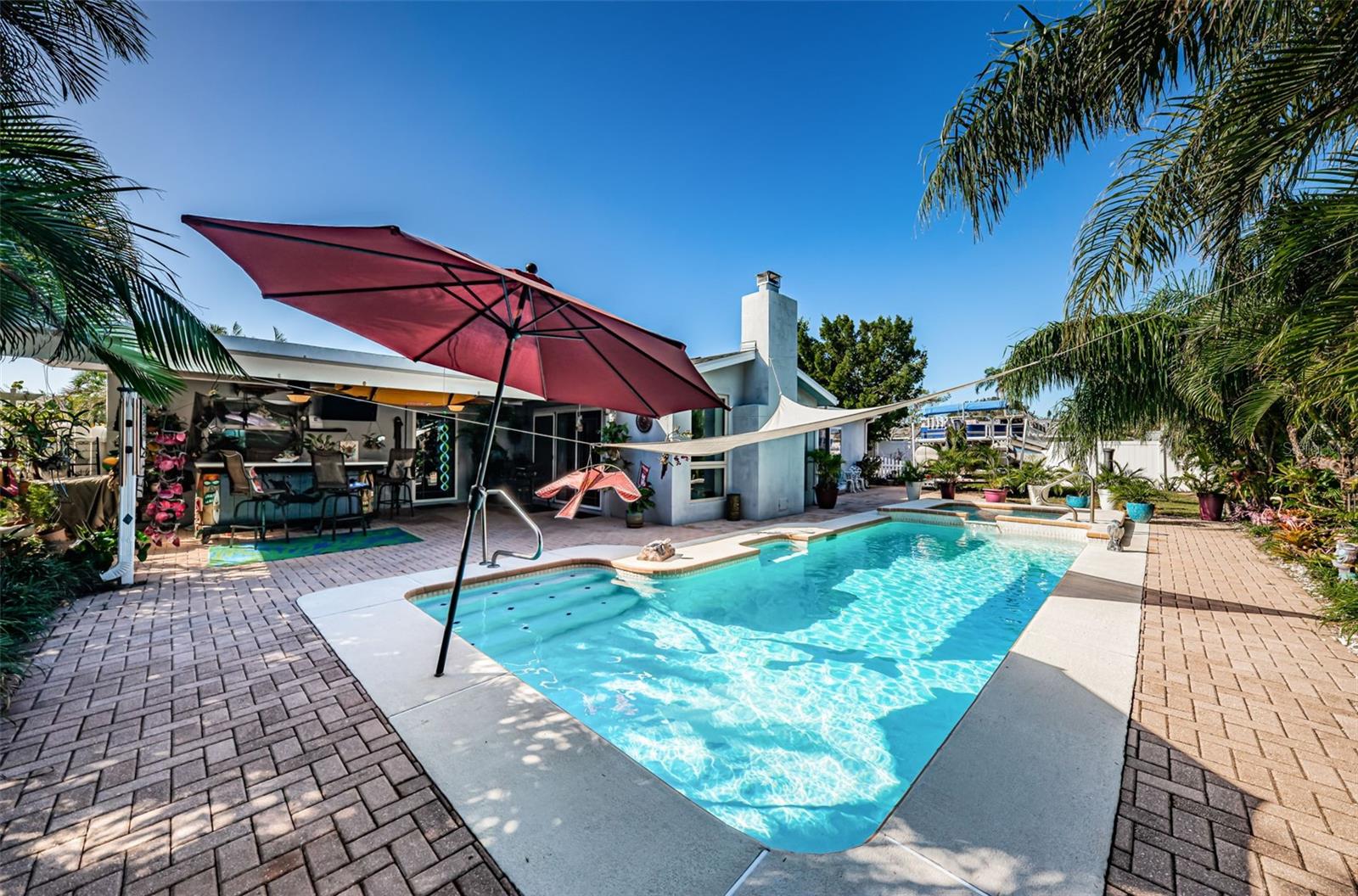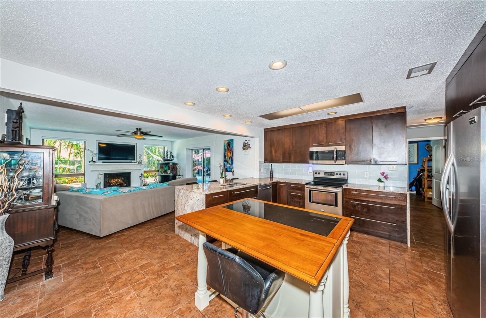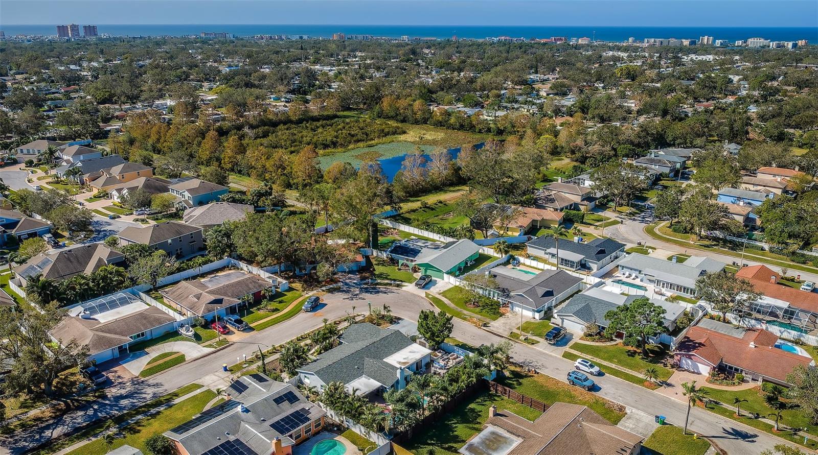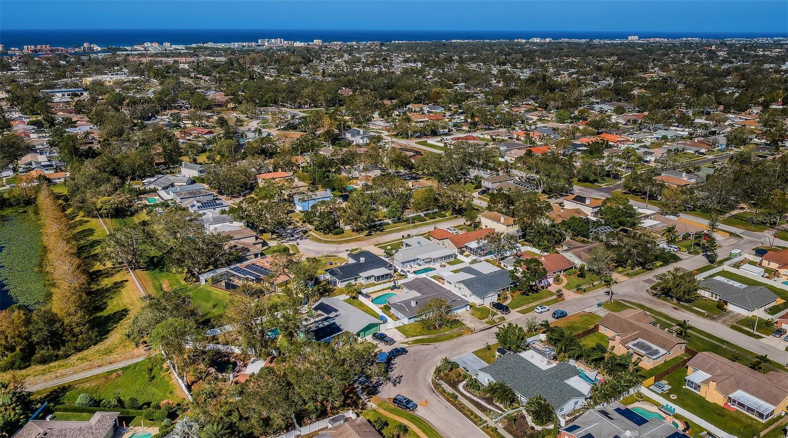 Nestled on a spacious Corner Lot in the Heart of Seminole, this 3Bedroom, 2 and 1/2 Bath, + Office home also features a Split Bedroom floor plan and Open floor plan, designed for ultimate relaxation & fun. This gem is in a great school district, non-evacuation, non-flood hazard zone, and non-HOA community, perfectly positioned between the vibrant heart of St Pete and the pristine beaches of Treasure Island, Redington Beach, Madeira Beach, and John’s Pass. This charming home is an entertainer’s dream with the openness of the spacious living room, dining area, large kitchen, and cozy family room with a wood-burning fireplace looking out to a resort style backyard. The spacious kitchen features newer custom cabinetry, granite countertops, SS Appliances, and breakfast bar. The Primary Bedroom Suite offers unique features: spacious bedroom looking at to the pool area, a bedroom size walk-in closet, large ensuite bath with tub and separate shower, and office off of the primary bedroom currently utilized as a workout area. The second and third bedrooms are also spacious on the other side of home with a large second bath that functions also as a pool bath. The half bath is perfect for your guests. The fenced backyard with mature landscaping encloses a sparkling pool with spillover spa and pavers, plus a spacious lanai area just perfect for hosting gatherings or spending quiet days outdoors. This backyard also accommodates a boat or RV parking. Updates included: GE Electric Panel Box, Water Heater 2017, Newer Shingle Roof 2023, AC 2013, Patio/Deck 2018, Pool 2003. Embrace the Florida Lifestyle you deserve in a non-flood hazard zone, non-evacuation zone with no HOA fees, and great schools!