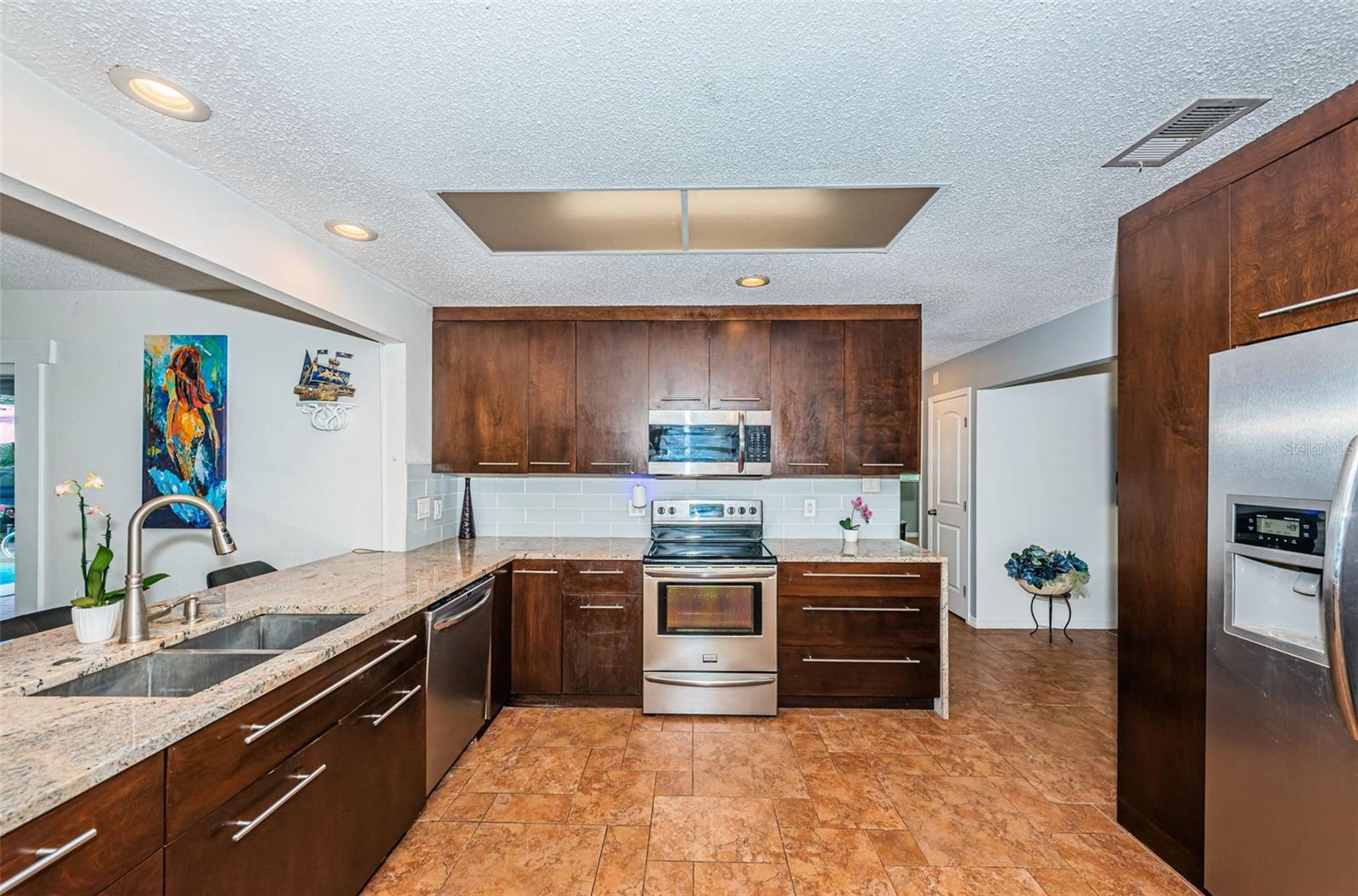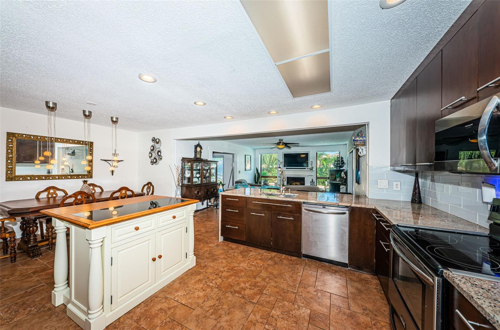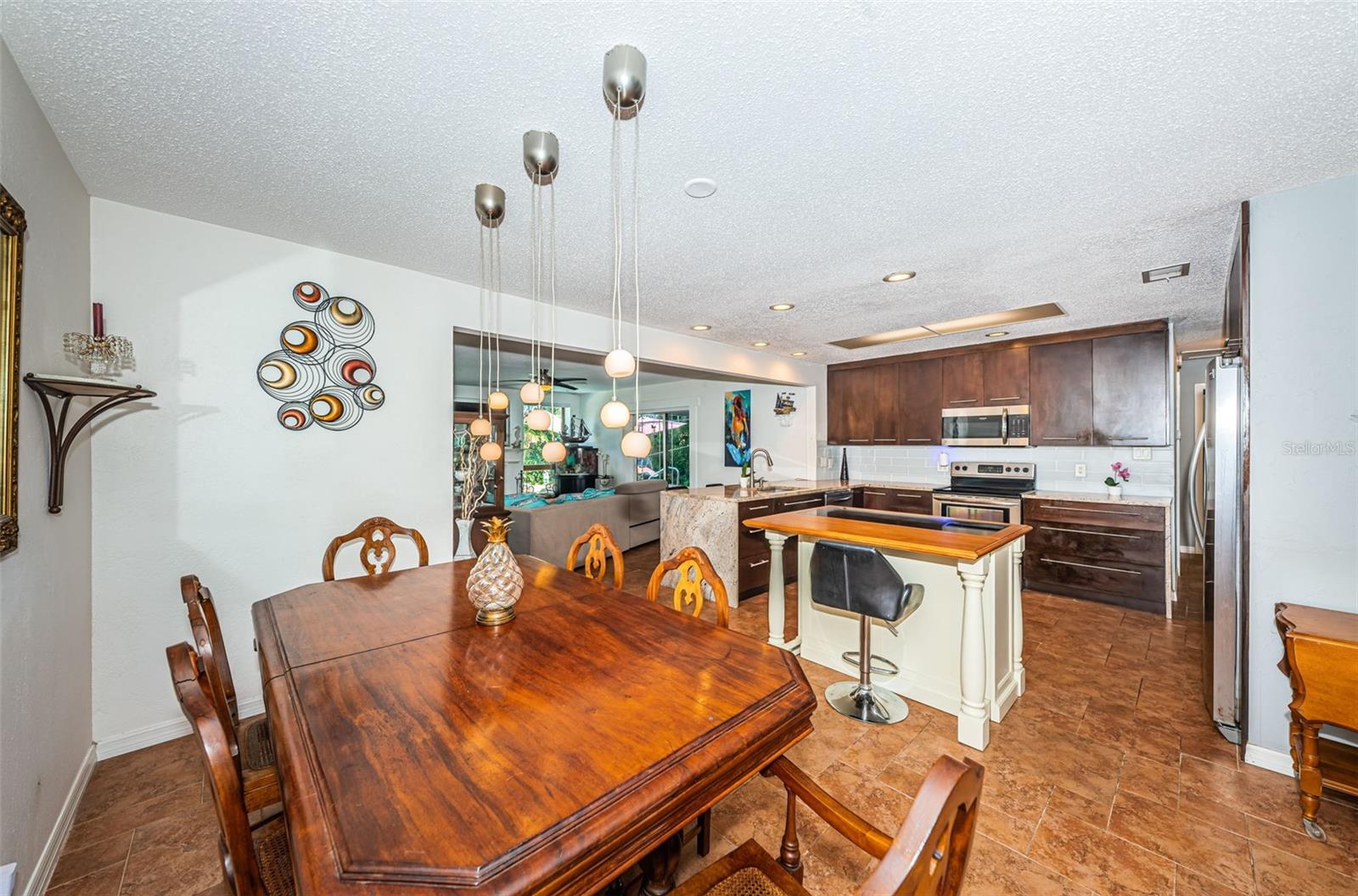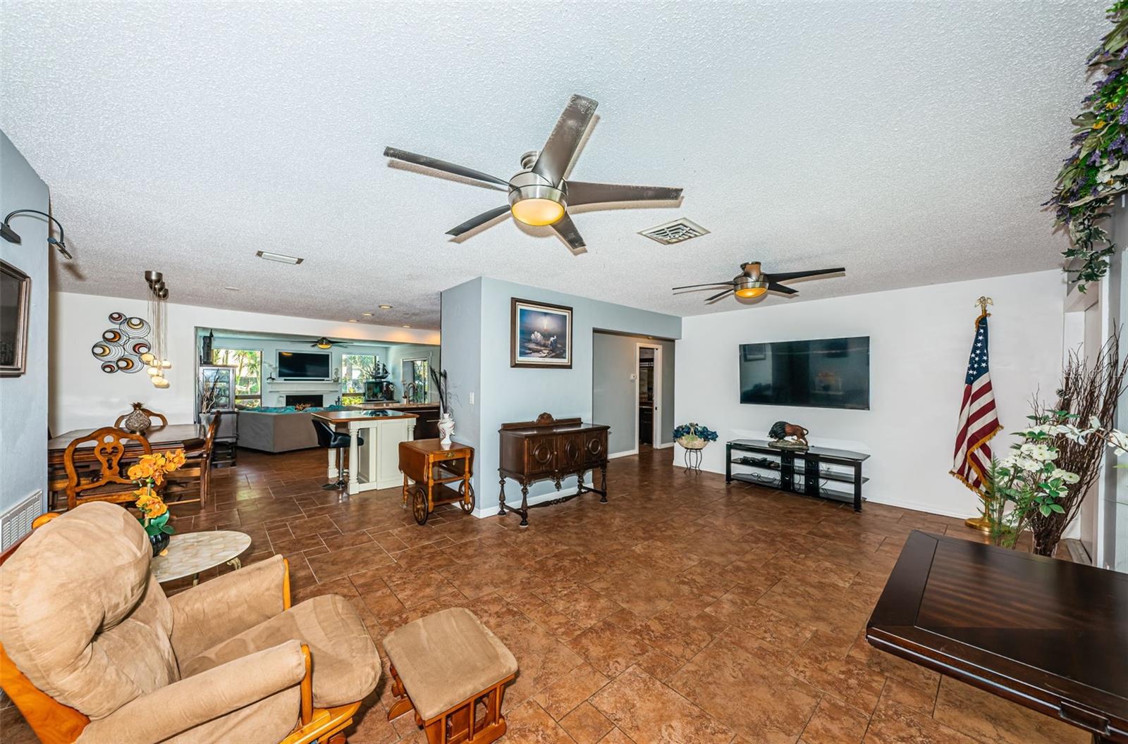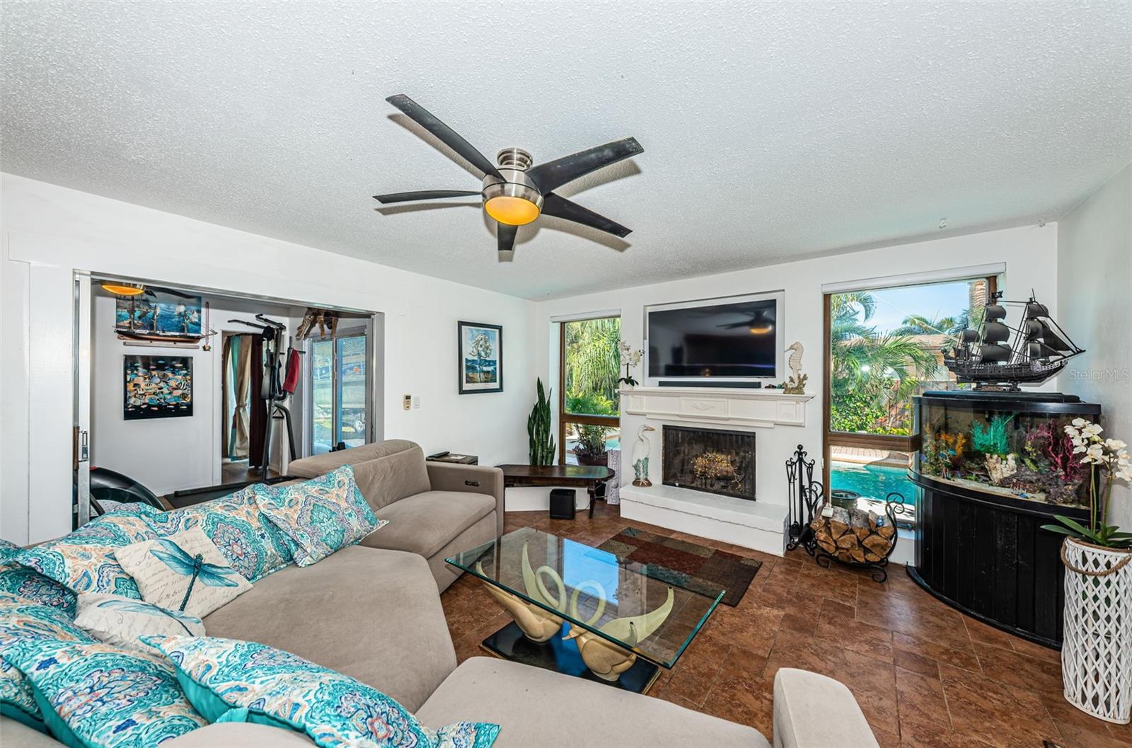 Nestled on a spacious Corner Lot in the Heart of Seminole, this 3Bedroom, 2 and 1/2 Bath, + Office home also features a Split Bedroom floor plan and Open floor plan, designed for ultimate relaxation & fun. This gem is in a great school district, non-evacuation, non-flood hazard zone, and non-HOA community, perfectly positioned between the vibrant heart of St Pete and the pristine beaches of Treasure Island, Redington Beach, Madeira Beach, and John’s Pass. This charming home is an entertainer’s dream with the openness of the spacious living room, dining area, large kitchen, and cozy family room with a wood-burning fireplace looking out to a resort style backyard. The spacious kitchen features newer custom cabinetry, granite countertops, SS Appliances, and breakfast bar. The Primary Bedroom Suite offers unique features: spacious bedroom looking at to the pool area, a bedroom size walk-in closet, large ensuite bath with tub and separate shower, and office off of the primary bedroom currently utilized as a workout area. The second and third bedrooms are also spacious on the other side of home with a large second bath that functions also as a pool bath. The half bath is perfect for your guests. The fenced backyard with mature landscaping encloses a sparkling pool with spillover spa and pavers, plus a spacious lanai area just perfect for hosting gatherings or spending quiet days outdoors. This backyard also accommodates a boat or RV parking. Updates included: GE Electric Panel Box, Water Heater 2017, Newer Shingle Roof 2023, AC 2013, Patio/Deck 2018, Pool 2003. Embrace the Florida Lifestyle you deserve in a non-flood hazard zone, non-evacuation zone with no HOA fees, and great schools!