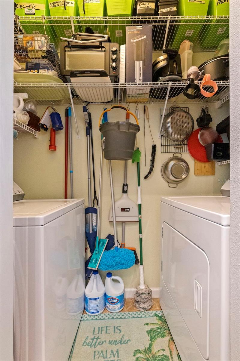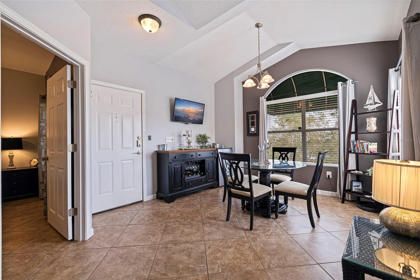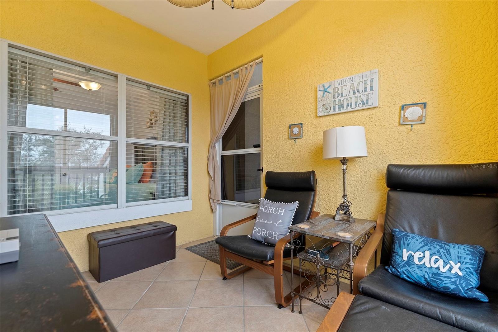 Largest sized unit located on a scenic and quiet top 3rd floor with beautiful and spacious cathedral ceilings. Gated community with cameras to provide extra security. Two external storage closets: Main closet, which comes with each condo is conveniently next to your unit for quick access items (tools, decorations, etc.). Extra closet #500 (purchased) is located on the first floor for your outdoor items (bikes, golf clubs, pool rafts, beach chairs, etc.) and only costs and extra $40/year which includes electric. Lanai (patio) includes glass sliders for fresh air and Florida sunshine. Extras included in unit are: Furniture and TVs (5), Home warranty for peace of mind (covers HVAC, appliances, plumbing, electric, etc. - see home warranty for details). LOW HOA at $535/month which includes: Management company with on-site manager and maintenance for your daily needs, high speed internet, 3 cable boxes, heated pool, indoor gym, pickleball/tennis court, shuffle board, exterior maintenance, EV charging stations, discounted guest rental unit for extra guests. Stress Free living where you are only responsible for maintaining the interior of your unit! Enjoy being close to world-famous beaches where you can indulge in sun, sand, and sea. Plus, a variety of shopping destinations are nearby including Seminole City Center which offers endless options for dining, entertainment, and retail therapy. Come see why this could be your next home sweet home.
