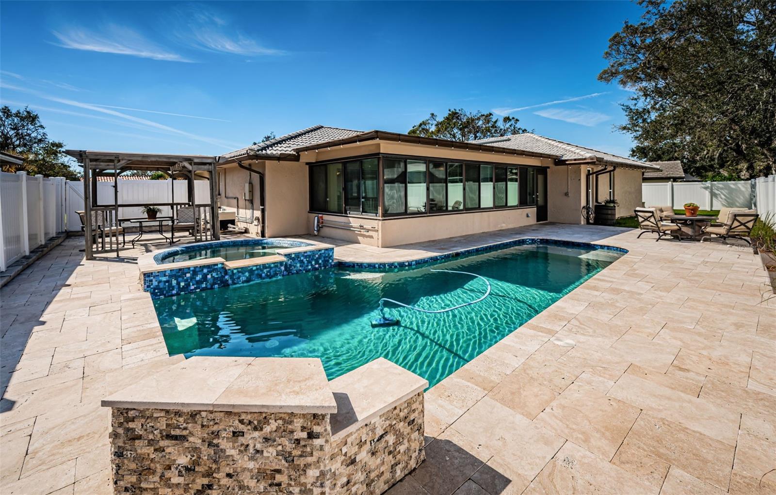 UPDATE - New price, new photos, and fresh interior paint! Also a brand new flat roof with transferrable warranty just installed! Canterbury Chase in Seminole, one of the highest locations in Pinellas County at 45ft above sea level. Extremely well maintained home with three bedrooms, two baths, a two car garage, 2,547sq.ft. of living area and an inground pool and spa. The home has been tastefully updated over the years! Since 2013 here are some of the many updates: All new kitchen with custom cabinets, granite tops, and stainless steel appliances, guest bathroom fully updated, new thermal windows through out, new interior and exterior doors, new water heater and water softener, newer flooring, new lighting through out, an upgraded service panel, crown molding, newer window treatments, fresh paint and so much more. In 2018 the entire pool and spa was resurfaced and new Travertine decking installed along with all new pool and spa equipment. Other features include: inside laundry with washer and dryer, new vinyl fencing, hurricane garage door, additional storage racks in garage, new A/C 2013, and more! Exceptional deed restricted neighborhood with private access to Millennium 182 ACRE park. It is also centrally located and only minutes to the Gulf Beaches, dining, and shopping. Be sure to view the virtual tour, and interactive virtual floor plan.