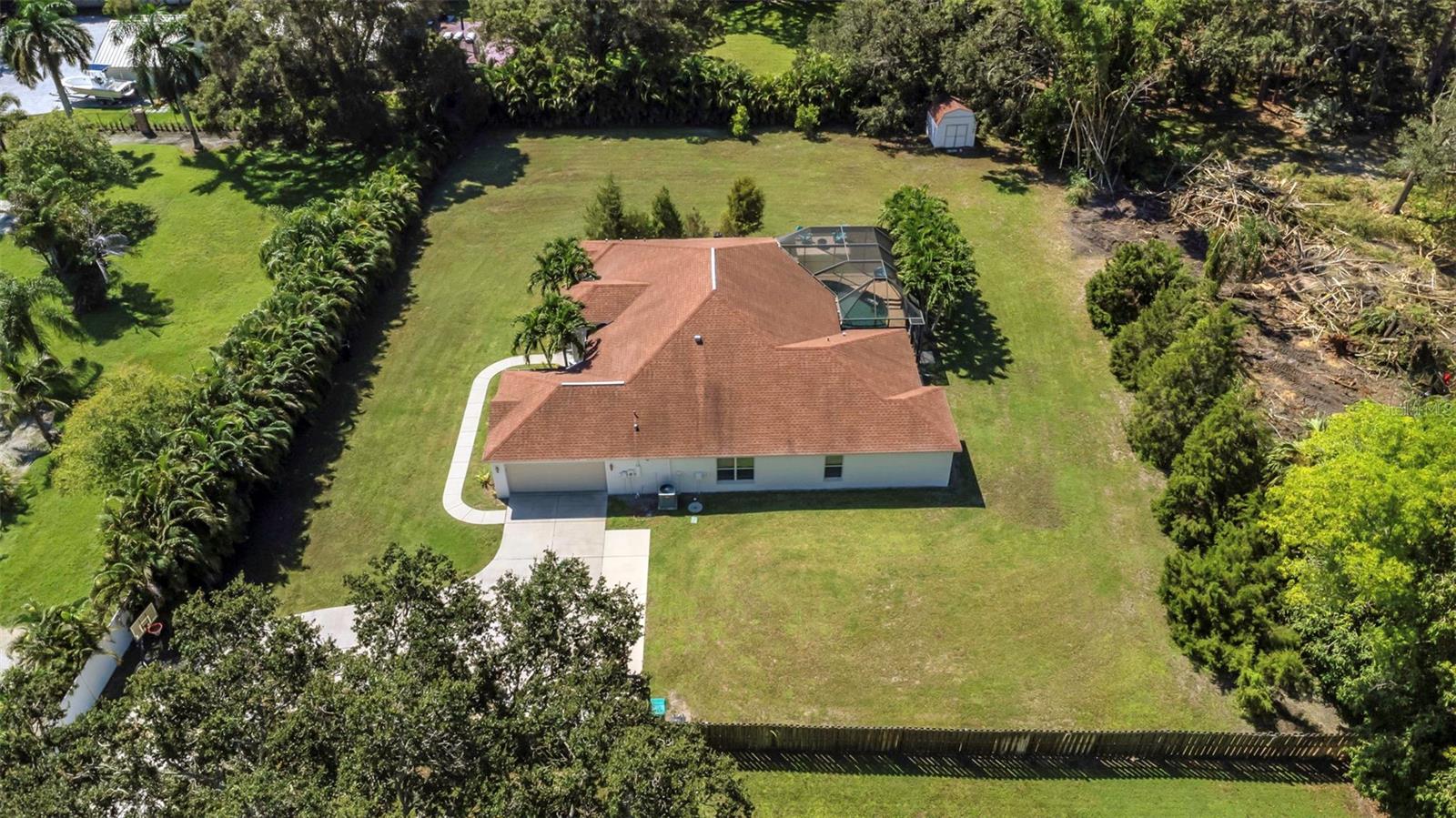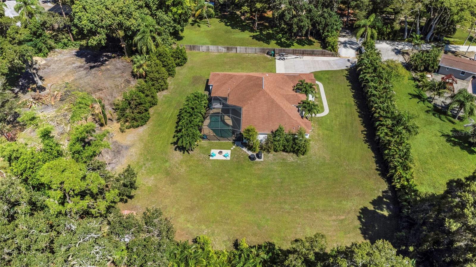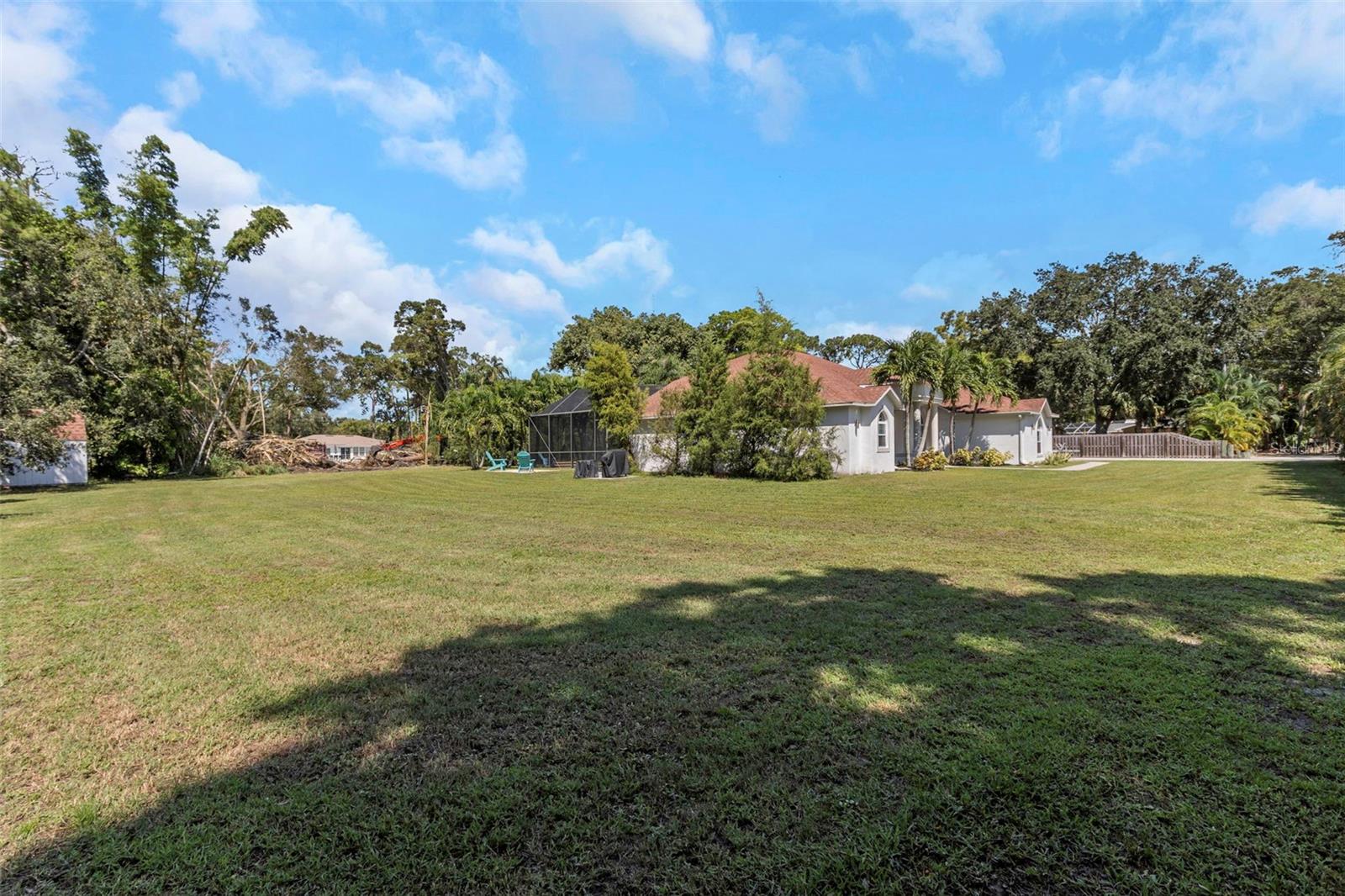 This IMPRESSIVE newer 2,709 sq ft pool home has it all! Custom built in Dec, 2013 on a huge WOW FACTOR WIDE-OPEN LOT (.85 acre), this home boasts 4 bedrooms, 2 baths, bonus room, separate office, dining, and laundry rooms, and an oversized 2 1/2-car garage. Enjoy peace of mind living here due to being in a NON-EVACUATION, NO FLOOD INSURANCE ZONE X! Low-E Hurricane Impact windows and doors offer added protection and energy efficiency. Imagine five minutes from the beach, boat ramp, parks, shopping, and city square, in the desirable Greater Harbor View neighborhood, Seminole. Fantastic curb appeal, then step through the two 8’ front “rain shower” privacy glass doors and be impressed by the comfortable style and exceptional floor plan. This home is perfect for entertaining with a large kitchen that offers shaker-style wood cabinetry, under-cabinet lighting, beautiful backsplash, granite countertops, and newer stainless-steel appliances. Your primary suite offers both spaciousness and functionality with two sizeable walk-in closets, dual sinks, a large shower, and garden tub. Other upgrades throughout include large Porcelain tiles throughout, poplar wood plantation shutters, rolling linen shades for all sliders, high custom tray ceilings, crown molding, and an entire home fire sprinkler system. And there is more, all of this amazingness overlooks the huge private paver patio and salt water Pebbletec pool with a tranquil waterfall and very high super polyester screened lanai, accessed via 8’ hurricane impact sliding doors from either the living room or primary suite. Now head out to this magical private oasis and imagine creating whatever your dreams desire…a pickleball court, RV parking, mother-in-law suite, kids’ soccer field, horse stables, additional larger house, workshop-- add-on possibilities are endless! etc., or do nothing at all and live in serene splendor. Plenty of space for endless possibilities with this spectacular lot, as the trees are on the perimeter, providing the utmost in privacy and upkeep. Already in place is a firepit, reclaimed water lawn sprinkler system, a barn-style tall shed on concrete slab with Timberline matching shingles, and underground electricity to the house. If you are looking to relax or entertain with the grandest house in a neighborhood full of beautiful homes, come live the life and imagine no more!
