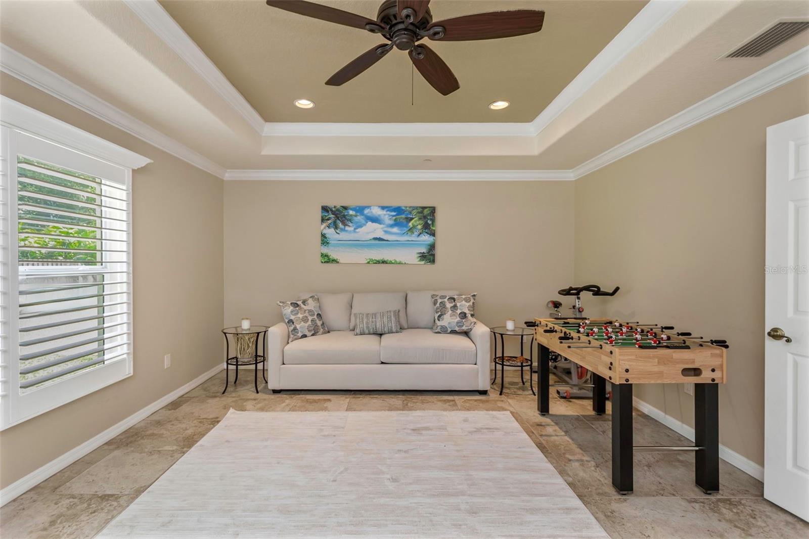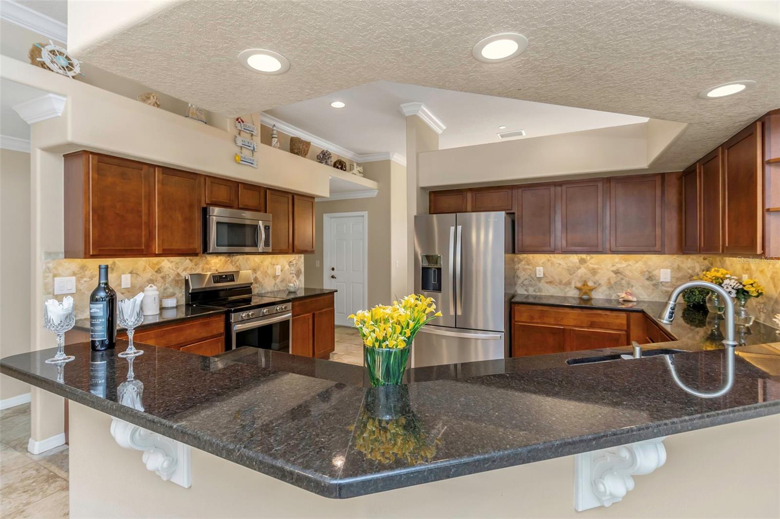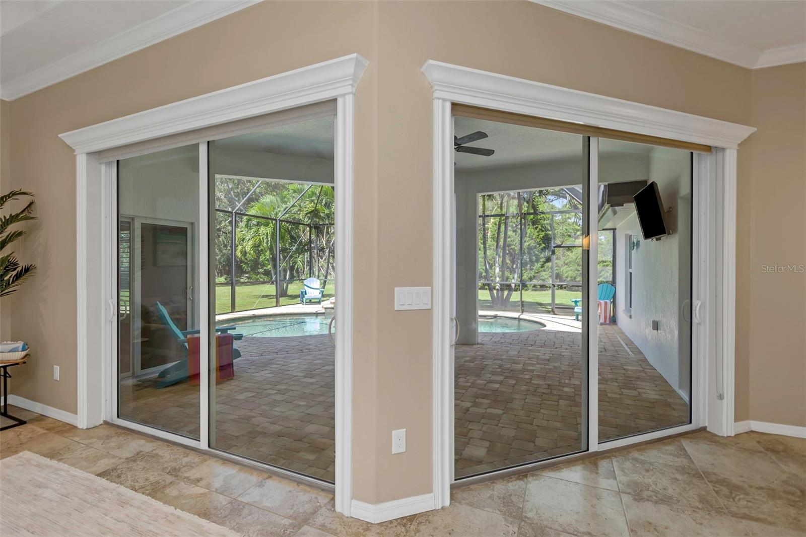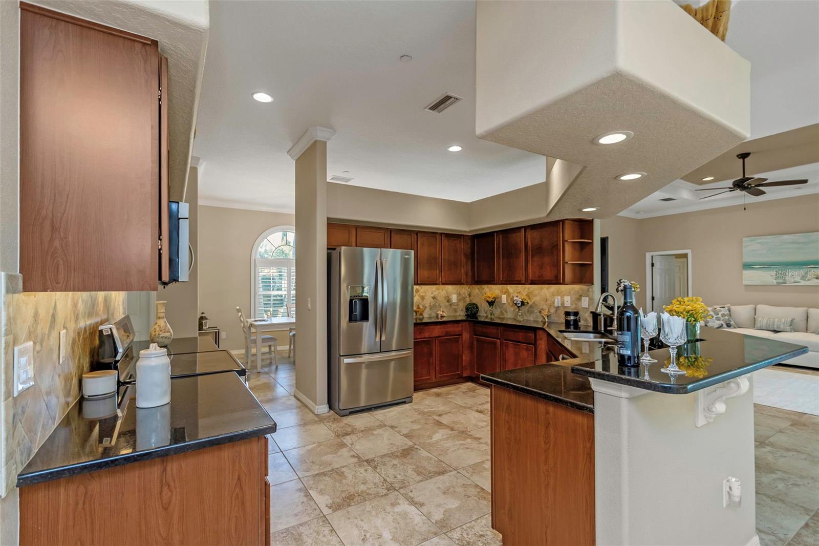 This IMPRESSIVE newer 2,709 sq ft pool home has it all! Custom built in Dec, 2013 on a huge WOW FACTOR WIDE-OPEN LOT (.85 acre), this home boasts 4 bedrooms, 2 baths, bonus room, separate office, dining, and laundry rooms, and an oversized 2 1/2-car garage. Enjoy peace of mind living here due to being in a NON-EVACUATION, NO FLOOD INSURANCE ZONE X! Low-E Hurricane Impact windows and doors offer added protection and energy efficiency. Imagine five minutes from the beach, boat ramp, parks, shopping, and city square, in the desirable Greater Harbor View neighborhood, Seminole. Fantastic curb appeal, then step through the two 8’ front “rain shower” privacy glass doors and be impressed by the comfortable style and exceptional floor plan. This home is perfect for entertaining with a large kitchen that offers shaker-style wood cabinetry, under-cabinet lighting, beautiful backsplash, granite countertops, and newer stainless-steel appliances. Your primary suite offers both spaciousness and functionality with two sizeable walk-in closets, dual sinks, a large shower, and garden tub. Other upgrades throughout include large Porcelain tiles throughout, poplar wood plantation shutters, rolling linen shades for all sliders, high custom tray ceilings, crown molding, and an entire home fire sprinkler system. And there is more, all of this amazingness overlooks the huge private paver patio and salt water Pebbletec pool with a tranquil waterfall and very high super polyester screened lanai, accessed via 8’ hurricane impact sliding doors from either the living room or primary suite. Now head out to this magical private oasis and imagine creating whatever your dreams desire…a pickleball court, RV parking, mother-in-law suite, kids’ soccer field, horse stables, additional larger house, workshop-- add-on possibilities are endless! etc., or do nothing at all and live in serene splendor. Plenty of space for endless possibilities with this spectacular lot, as the trees are on the perimeter, providing the utmost in privacy and upkeep. Already in place is a firepit, reclaimed water lawn sprinkler system, a barn-style tall shed on concrete slab with Timberline matching shingles, and underground electricity to the house. If you are looking to relax or entertain with the grandest house in a neighborhood full of beautiful homes, come live the life and imagine no more!