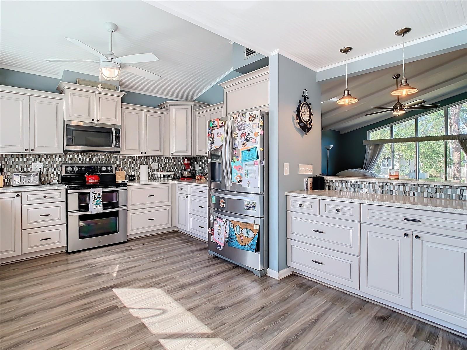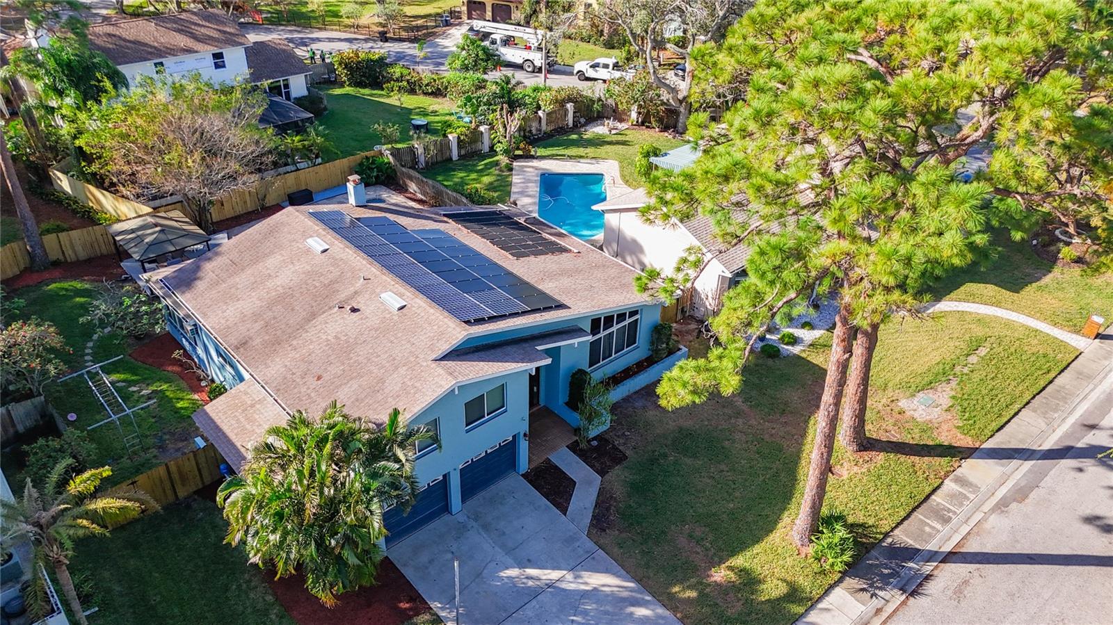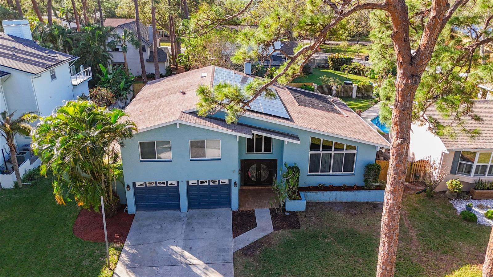 Your Dream Home Awaits in Whispering Pines – Stunning Tri-Level Sanctuary! Discover the perfect blend of luxury and practicality in this magnificent 3,237 sq. ft. tri-level home, nestled in the highly desirable Whispering Pines neighborhood. From the moment you step inside, soaring 16-foot ceilings welcome you into bright, open living spaces designed for both comfort and style. The showstopping kitchen is a chef’s delight, featuring elegant white wood cabinets, premium quartz countertops, and oversized windows that frame breathtaking views of your private 30,000-gallon extra-deep pool and expansive fenced backyard. Whether you're hosting unforgettable gatherings under the pergola or watching little ones play, this outdoor oasis is the perfect retreat. Meticulously updated within the past five years, this home is packed with thoughtful upgrades, including owned solar panels (four dedicated to pool heating and 23 reducing electricity costs), upgraded wood-look laminate and tile flooring, whole-house water filtration, two newer HVAC systems, and a new 40-gallon water heater and TONS of storage. Designed for flexibility, it features four spacious bedrooms and three full baths, including a ground-level bathroom, plus an oversized family room with a wet bar, kegerator, and wine fridge—a perfect space that can easily accommodate a 5th bedroom if needed. A window-wrapped bonus room seamlessly connects to the backyard, while a convenient laundry chute, oversized two-car garage, and allowances for RV/Boat parking and short-term rentals add even more versatility. And with a brand-new roof to be installed at closing, this meticulously maintained home—never experiencing interior water intrusion—is truly move-in ready. Don't miss this rare opportunity to own a slice of paradise in one of Seminole’s most sought-after communities—schedule your showing today before it's gone!