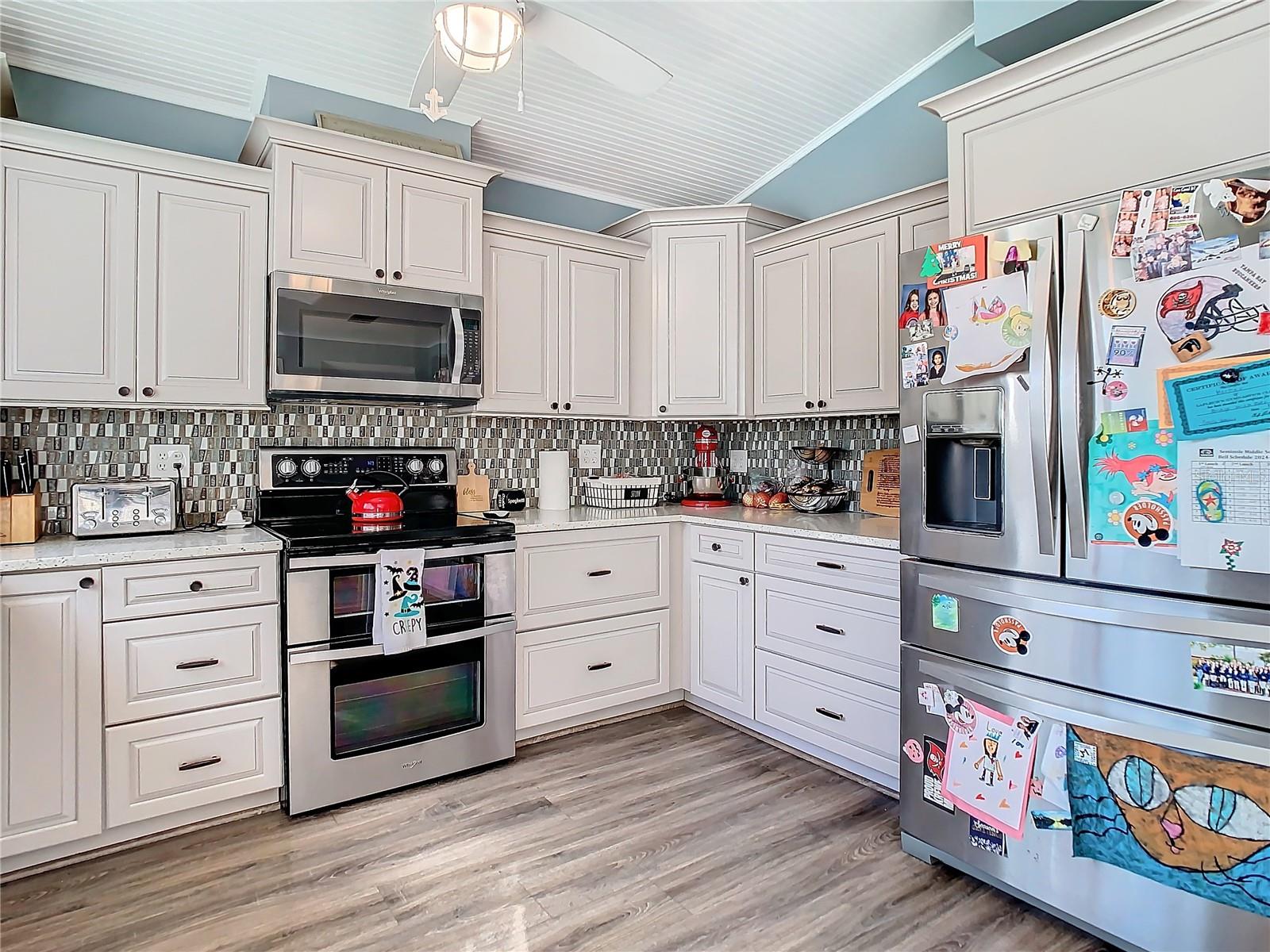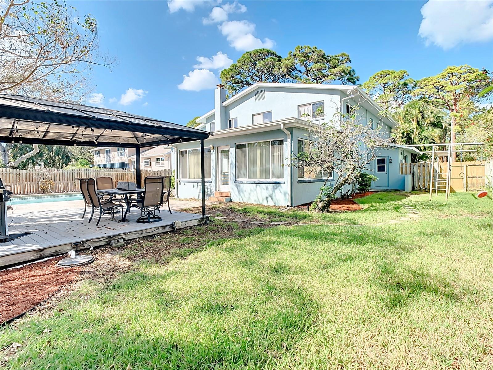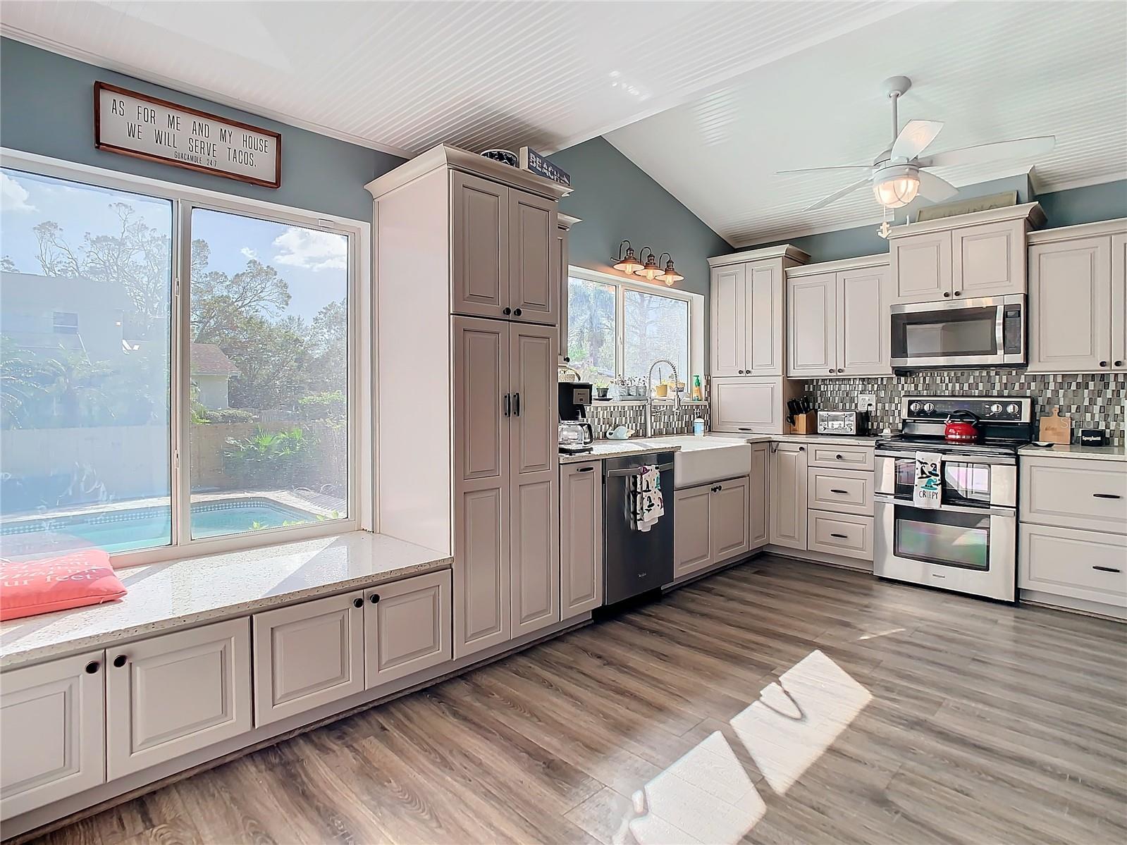 Your Dream Home Awaits in Whispering Pines – Stunning Tri-Level Sanctuary! Discover the perfect blend of luxury and practicality in this magnificent 3,237 sq. ft. tri-level home, nestled in the highly desirable Whispering Pines neighborhood. From the moment you step inside, soaring 16-foot ceilings welcome you into bright, open living spaces designed for both comfort and style. The showstopping kitchen is a chef’s delight, featuring elegant white wood cabinets, premium quartz countertops, and oversized windows that frame breathtaking views of your private 30,000-gallon extra-deep pool and expansive fenced backyard. Whether you're hosting unforgettable gatherings under the pergola or watching little ones play, this outdoor oasis is the perfect retreat. Meticulously updated within the past five years, this home is packed with thoughtful upgrades, including owned solar panels (four dedicated to pool heating and 23 reducing electricity costs), upgraded wood-look laminate and tile flooring, whole-house water filtration, two newer HVAC systems, and a new 40-gallon water heater and TONS of storage. Designed for flexibility, it features four spacious bedrooms and three full baths, including a ground-level bathroom, plus an oversized family room with a wet bar, kegerator, and wine fridge—a perfect space that can easily accommodate a 5th bedroom if needed. A window-wrapped bonus room seamlessly connects to the backyard, while a convenient laundry chute, oversized two-car garage, and allowances for RV/Boat parking and short-term rentals add even more versatility. And with a brand-new roof to be installed at closing, this meticulously maintained home—never experiencing interior water intrusion—is truly move-in ready. Don't miss this rare opportunity to own a slice of paradise in one of Seminole’s most sought-after communities—schedule your showing today before it's gone!
