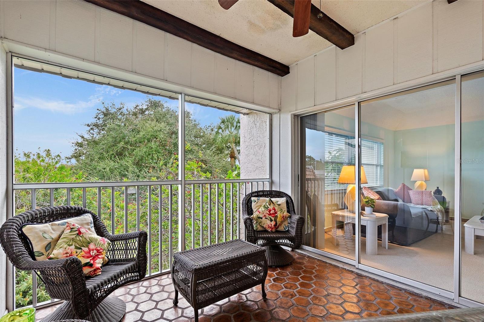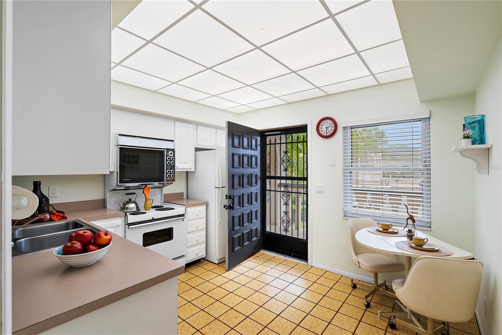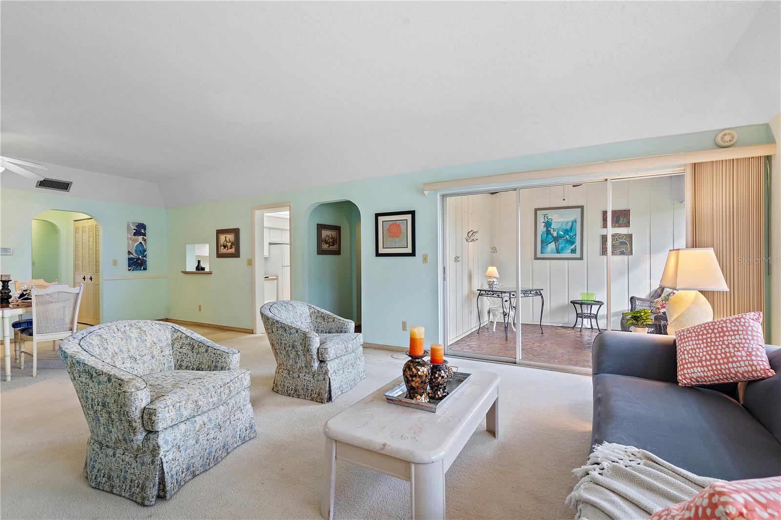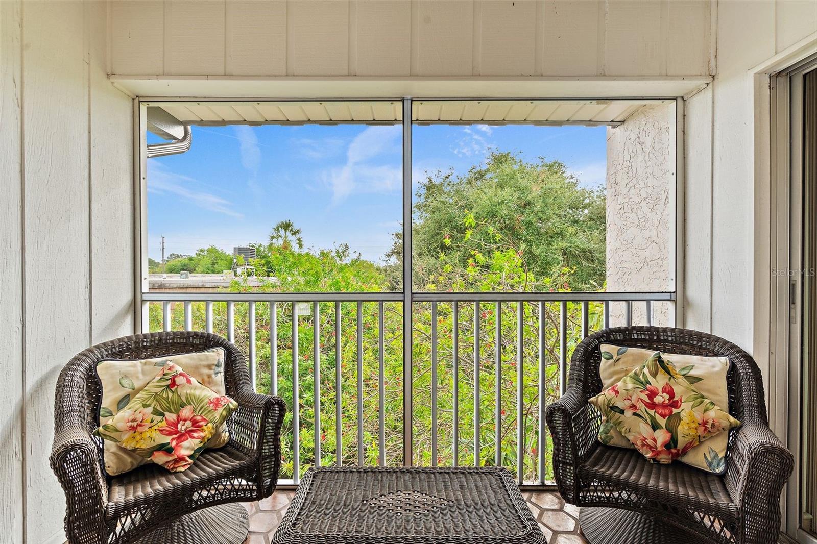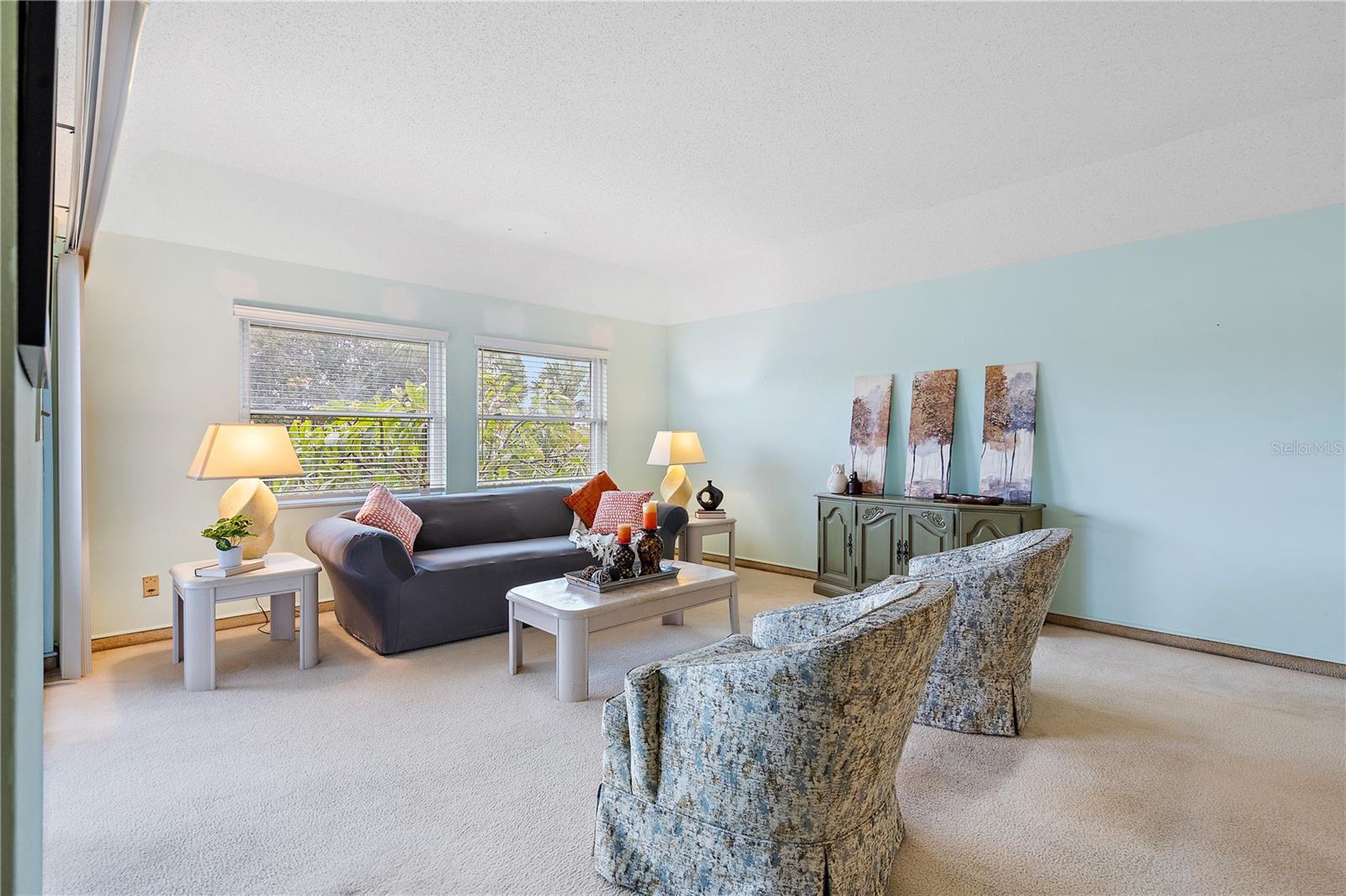 This top-floor condo sits high and dry in a non-flood zone within a FULLY FUNDED community. Immerse yourself in the tranquility of this expansive living space and the amenities that the community provides. As a Bardmoor Neighborhood owner, there are options to join two country clubs, offering access to golf courses, tennis facilities, pickleball, restaurants, and social gatherings. The combined dining and living room open to a spacious 100-square-foot screened lanai. Three-panel sliding glass doors link the living room to the lanai, inviting refreshing breezes that blend indoor comfort with outdoor freshness. The south-facing greenbelt view is perfect for unwinding at day’s end and enjoying the breathtaking Florida sunsets. Architectural details like taller ceilings, chair rails, and curved arches elevate the 1,400 square feet of living space, imparting a sense of grandeur uncommon in typical condos. The formal foyer, complete with a coat closet, sets a sophisticated tone, while the kitchen provides a cozy breakfast nook to enjoy sunrise views over your morning coffee. The hallway leading to the bedrooms is enhanced with closets, including linen, laundry, and a utility closet for the water heater. The guest bathroom features an updated walk-in shower, and the two north-end bedrooms are generously sized. The primary suite is a private retreat, offering a walk-in cedar closet, vanity with makeup seating, an additional split vanity, and an elevated garden tub. All the windows are updated, double-paned and white-framed with custom blinds. The condo is offered AS IS and FULLY FURNISHED, from seating to beds, tableware, and pans. Recent building renovations include a membrane wrap roof completed in October 2023 and new attic insulation in 2024. Condo ownership includes private locked storage under the south stairwell and the nearby carport space 1403. There are six close guest parking spaces, and guests have parking options throughout the complex. The community pool is heated and cooled throughout the year to maintain a temperature of 87 degrees. The pool serves as a social hub for residents from Associations I, II, and III, where you can gain insights from long-time owners, unwind in the Jacuzzi hot tub, and enjoy the convenience of two bathrooms and an outdoor shower. Situated south of Bardmoor Blvd, it provides easy access to walking and biking on the wide shoulder of Bardmoor Blvd. Lake Seminole, Waterfront Kayak Park, and the Gulf of Mexico's pristine sands are less than 10 miles from the condo. The Cordova Greens II association spans 7 acres, consisting of 90 condos, and owns the land outright, ensuring no additional land lease fees. The $894.19 monthly condo fee includes all utilities except electricity, as well as Spectrum high-speed internet and cable. This fee also covers exterior maintenance, eliminating the need for individual lawn care or upkeep, and the fee for 2025 was reduced by $61. When evaluating a condo purchase, consider how these fees simplify budgeting compared to the costs of maintaining a house, utilities, and landscaping. There are no age restrictions, and the community is dog friendly with a new pet weight limit of up to 30 lbs. There are new rental guidelines: ownership of one year prior to leasing and a rental span of a full month at a time (e.g., Jan 1 – 31). If this condo captivates you, contact your Realtor for an in-person viewing and move right in to customize your piece of paradise.