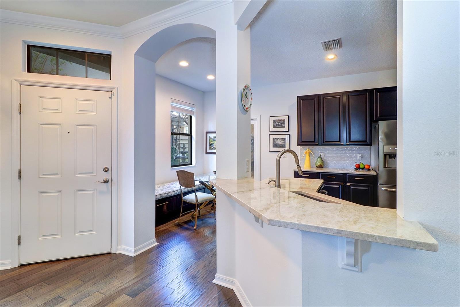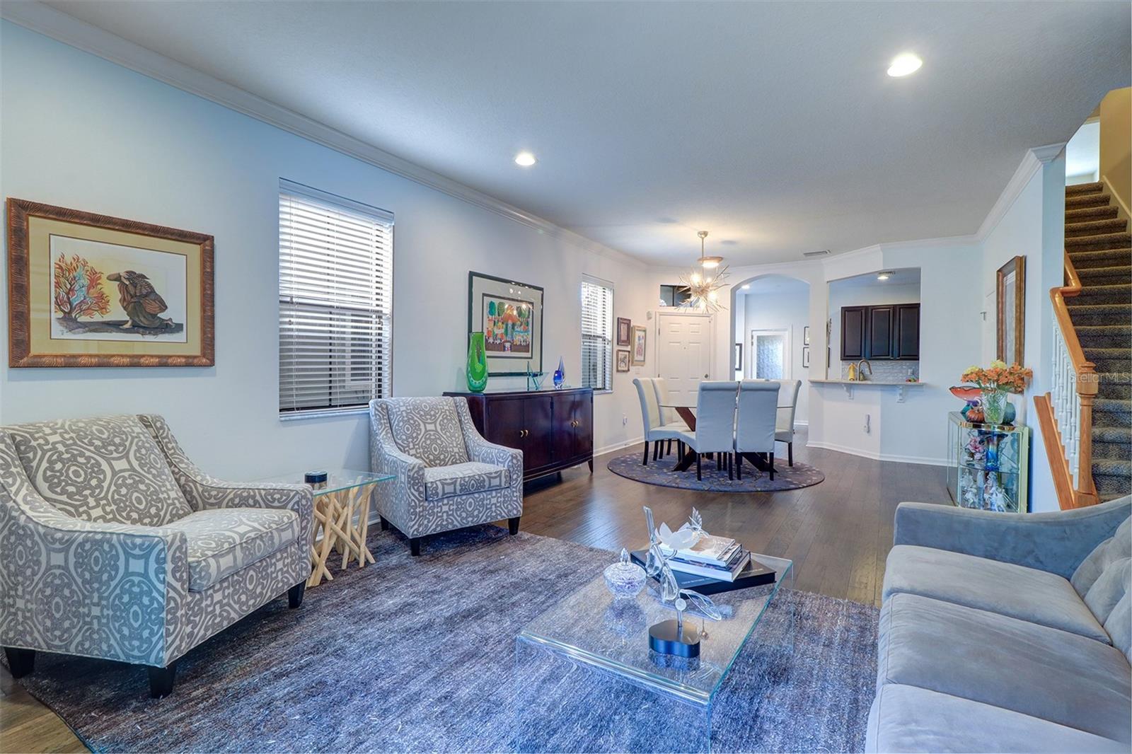Discover this impeccably maintained townhome in the serene gated community of Hidden Bayou. From the moment you step inside, you’ll be greeted by an inviting open floor plan with hardwood floors and stylish upgraded lighting. The spacious living room flows seamlessly to a screened lanai, offering picturesque views of the Cross Bayou Wildlife Preserve, an ideal spot to unwind. There is a powder room for guests adjacent to the first floor living area. The first-floor primary suite is a retreat of its own, featuring a walk-in closet with custom built-ins and a luxurious en-suite bath, complete with granite double vanity, a tiled walk-in shower and a large linen closet with pullout shelves. Kitchen updates include stunning countertops, a cozy built-in banquette and an impressive butler’s pantry with ample storage. Adjacent to the kitchen, the laundry room provides extra convenience with storage, a utility sink and full-size appliances, while the two-car garage offers step-free access. Upstairs, a flexible living area awaits, ideal for a media room or playroom, along with three spacious bedrooms and two full baths. The gated neighborhood also features a sparkling community pool.