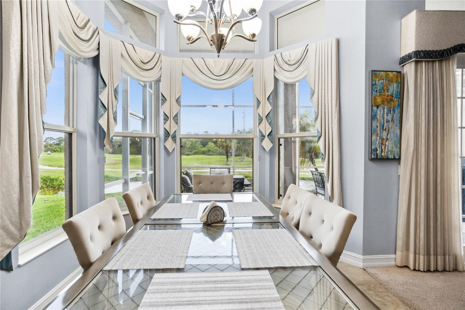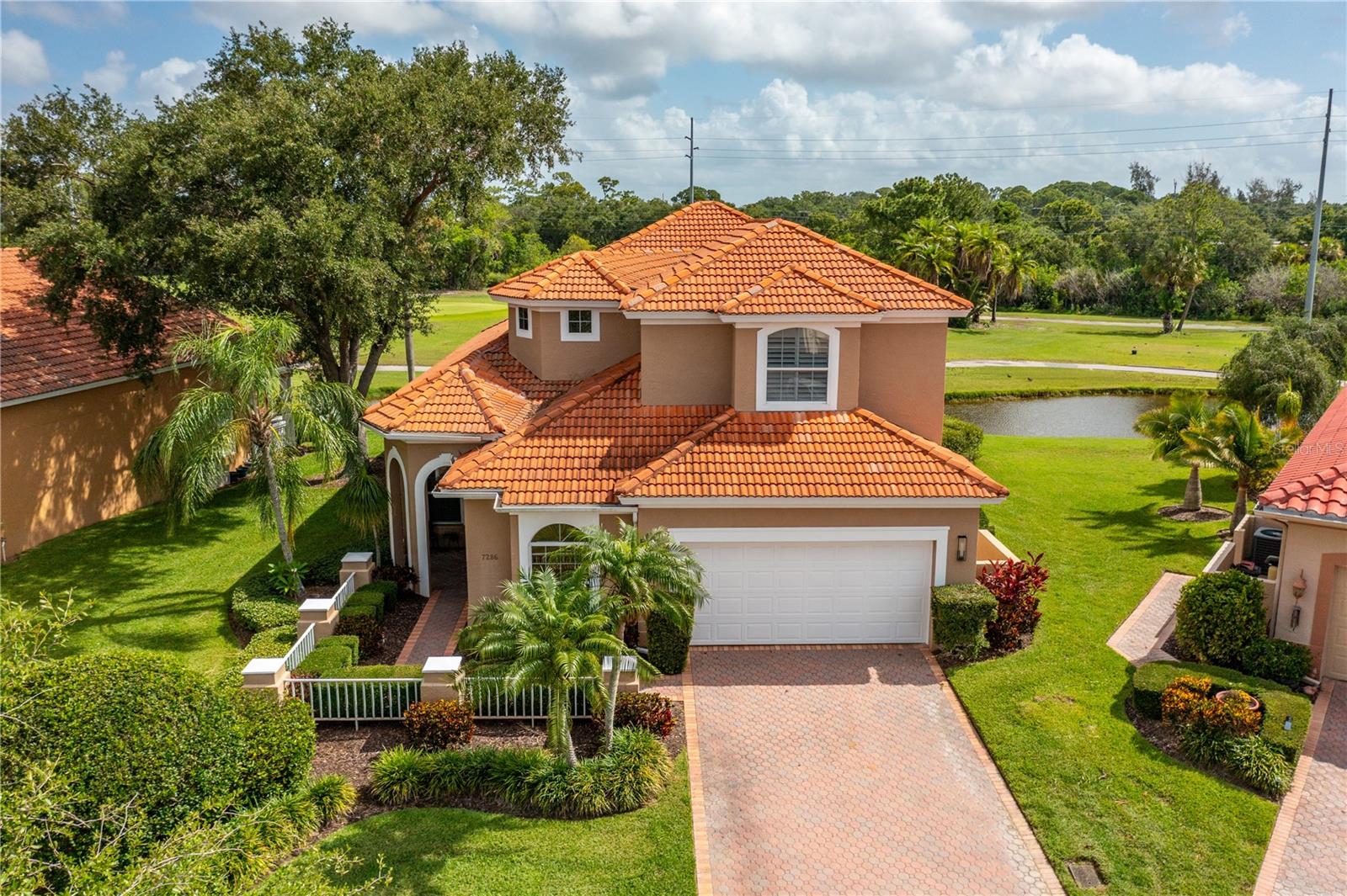 Welcome to the epitome of luxury living in prestigious Bayou Club Estates on Maidencane Court. This stunning 4 bedroom, 2 1/2 bathroom home sits gracefully on a premiere, cul-de-sac, oversized lot on a Tom Fazio signature championship golf course, offering breathtaking views and a tranquil setting. Upon entering the home, you are greeted by cathedral high rotunda and high ceilings throughout the home. The double entry into the primary bedroom on the first floor provides added privacy and convenience. The gourmet kitchen is a chef's dream, featuring granite countertops, breakfast nook, real wood cabinets high-end stainless-steel appliances, and a center island for prep work and casual dining also enjoy a gas fireplace in the great room. The open floor plan flows seamlessly into the spacious living and dining areas, making it perfect for entertaining guests or enjoying family time. Crown molding and plantation shutters add an elegant touch to every room, while the large indoor laundry room with cabinets and a sink for your convenience and bonus room upstairs provide additional convenience and storage options. The primary bedroom features a lavish ensuite bathroom with a soaking tub and walk-in shower for a spa-like experience. Step out back to the screened porch situated between holes #2 & #3 and on a tranquil pond, perfect for al fresco dining or relaxing in the Florida sunshine. This home is truly a rare find in one of the most sought-after communities in the area. The Bayou Club is a 24-hour security gated community, offering peace of mind and exclusive amenities. Don't miss your chance to own this exquisite masterpiece in Bayou Club Estates. Experience unparalleled luxury and comfort in this stunning home.