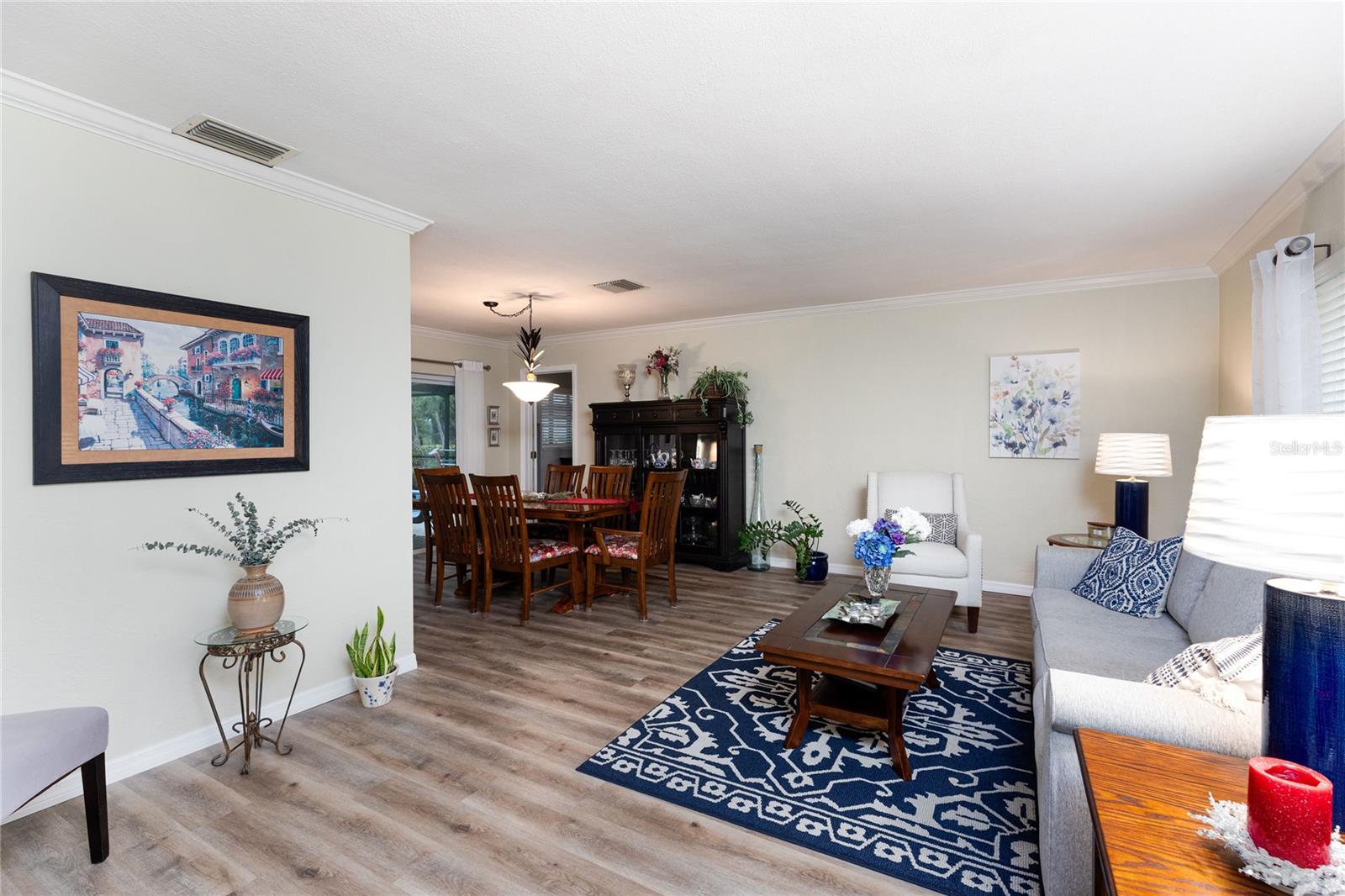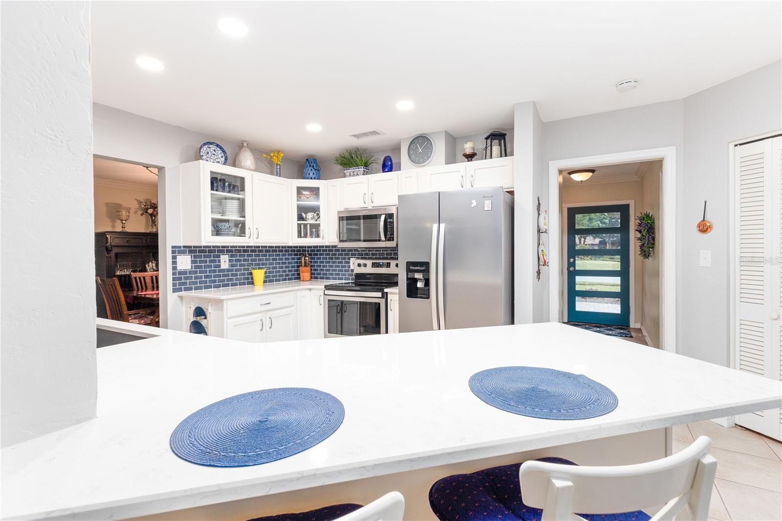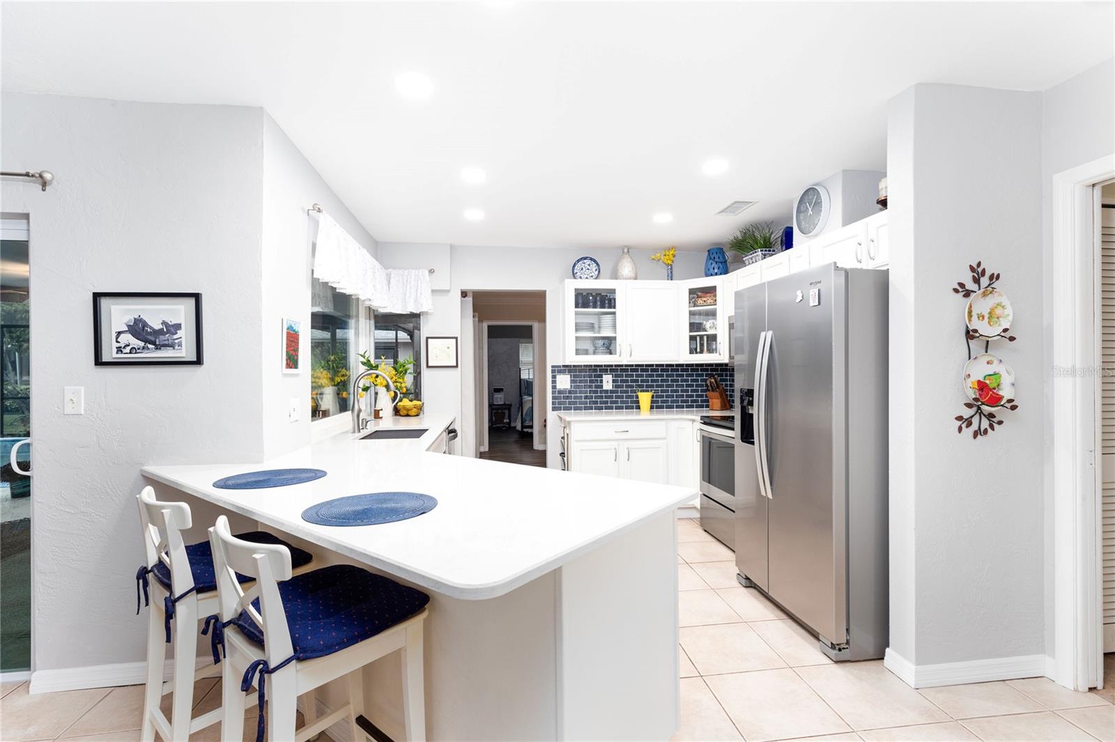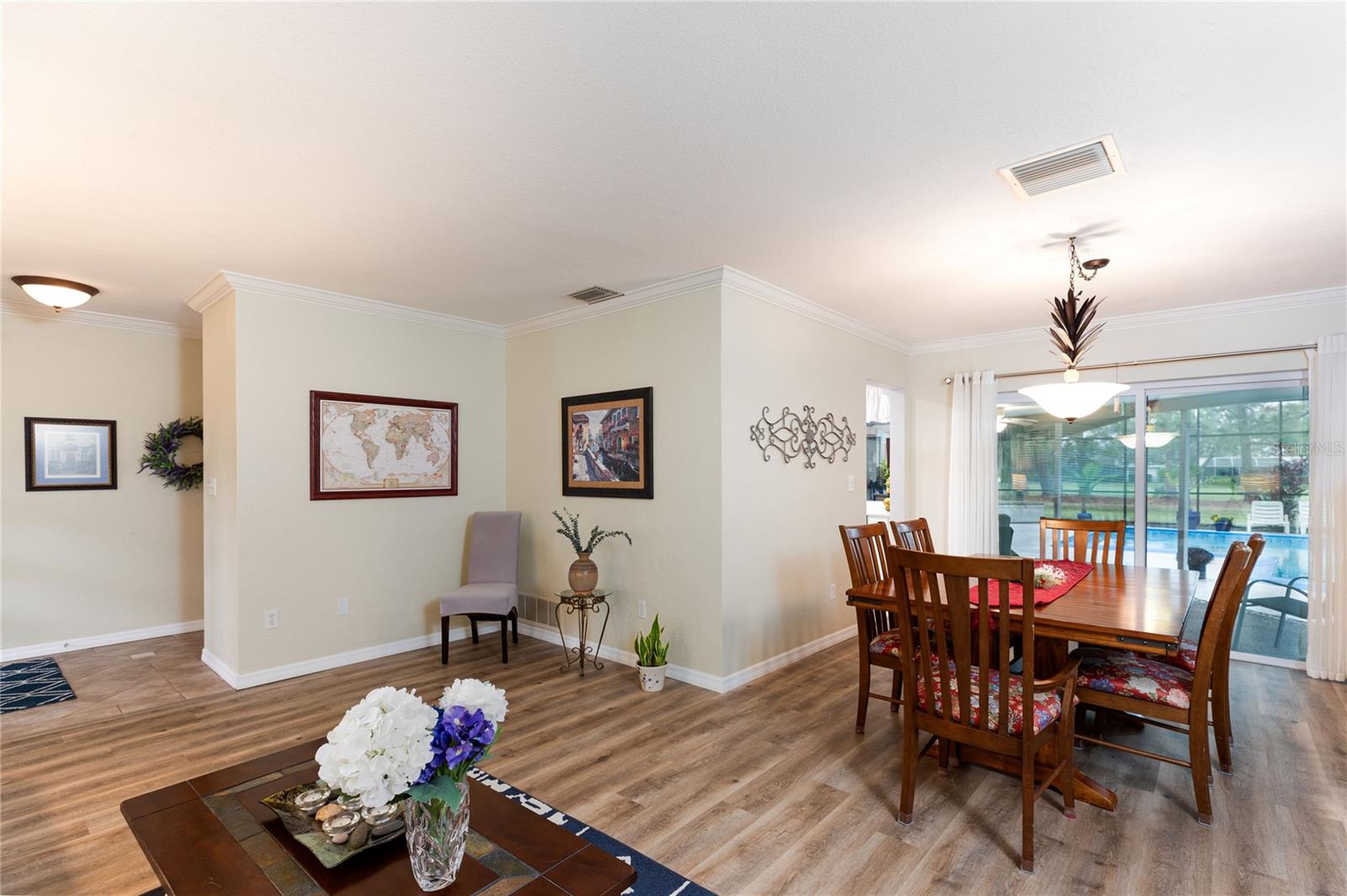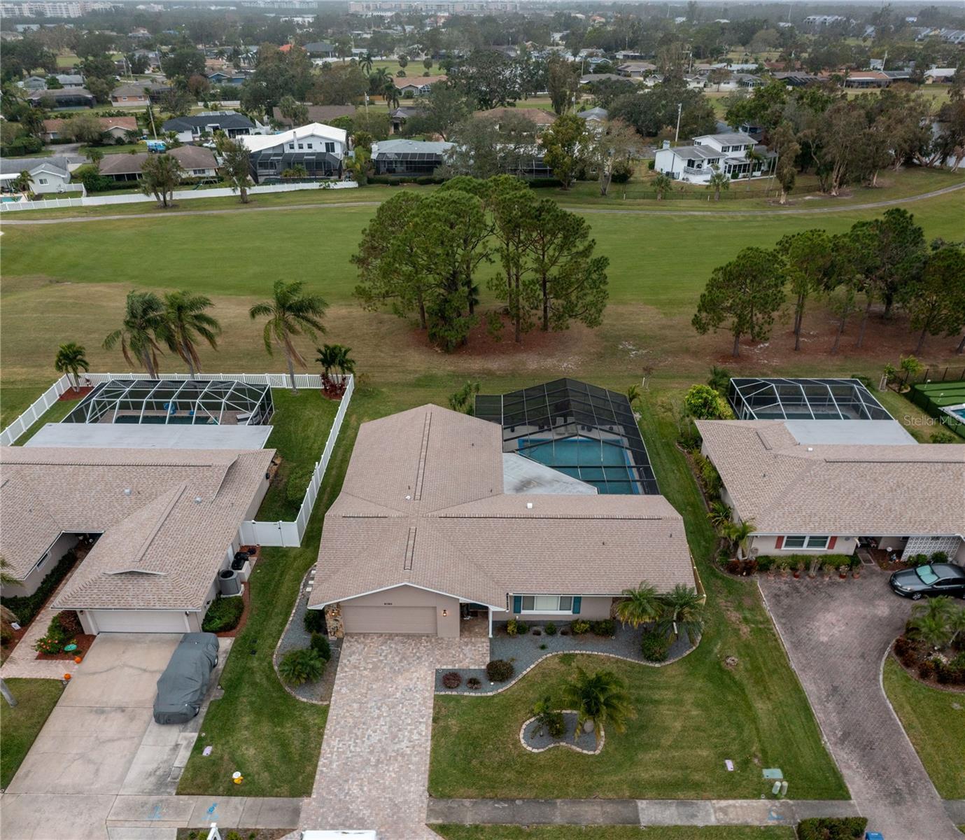 Welcome to Seminole Lake Golf and Country Club, where breathtaking sunsets and a warm, inviting neighborhood await you! This meticulously maintained 4-bedroom, 2-bathroom home overlooks the 17th fairway and features a sparkling saltwater pool with a covered lanai, perfect for entertaining or relaxing. From the moment you step inside, you’ll know this is the one. The home’s split floor plan offers privacy and functionality, with formal living and dining rooms and a large owner’s suite with an en suite bath. The updated kitchen, featuring custom cabinetry, stylish countertops, and a newly added window, opens to a spacious family room, creating a seamless flow for daily living. Thoughtful upgrades include a new roof, remodeled kitchen and bathrooms, new sliding glass doors, and new doors and trim throughout. The new AC system, duct sealing, electrical panel, and water heater ensure modern convenience and reliability. Outdoors, lush landscaping surrounds the resurfaced pool, complemented by a new pool screen enclosure, multi-speed pool pump, and updated drainage system. A new fence and brick paver driveway enhance privacy and curb appeal. Centrally located, this home offers easy access to Gulf beaches, downtown St. Petersburg, and Seminole City Center’s shopping, dining, and entertainment. Residents of Seminole Lake Golf and Country Club enjoy a vibrant community with optional memberships and amenities. Roof: 10/2020; Electrical Panel: 3/2021; HVAC: 12/2021; Pavers: 10/2022 Don’t miss this opportunity to own a beautifully updated home in one of Seminole’s most desirable neighborhoods. Schedule your private showing today and experience the perfect blend of elegance and comfort!