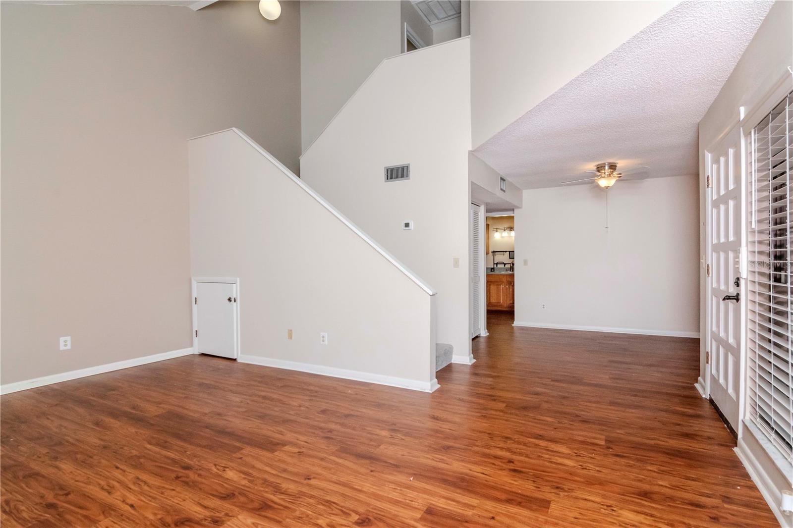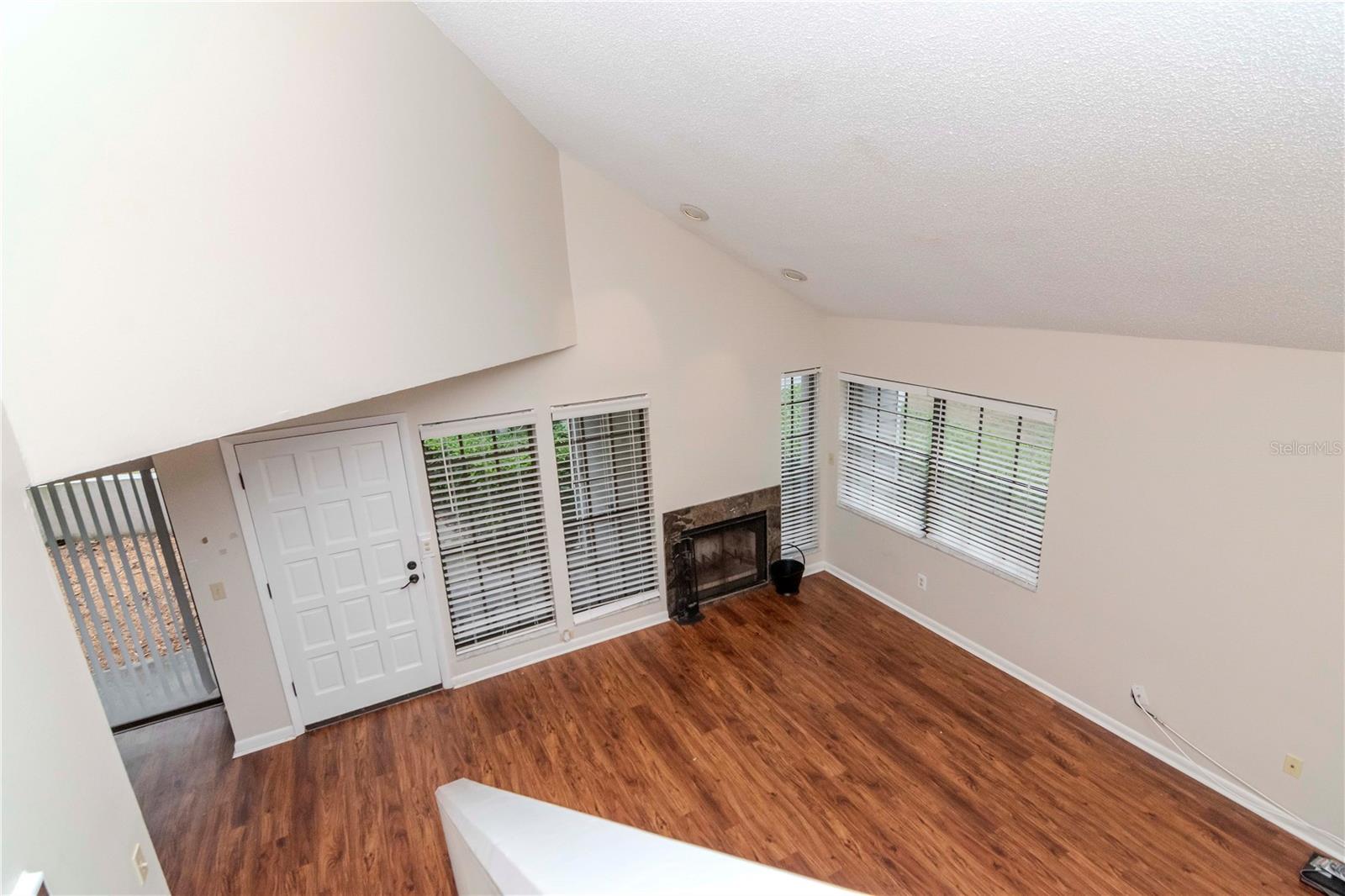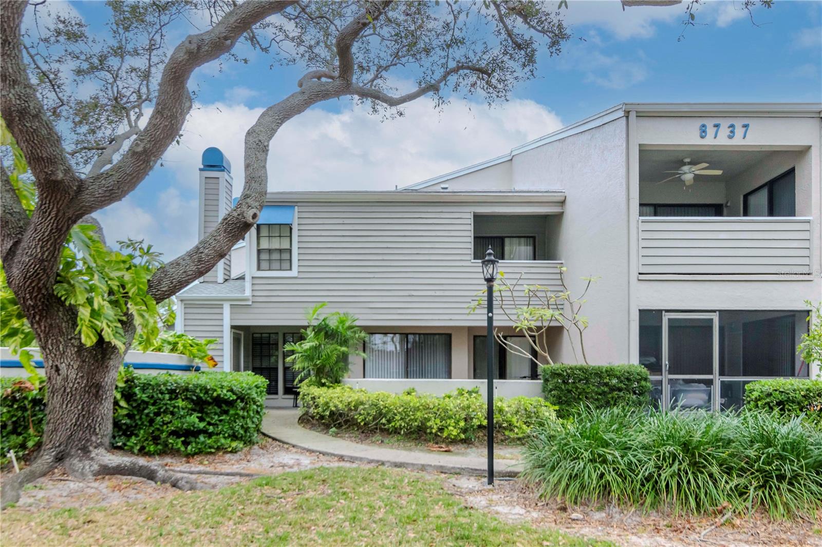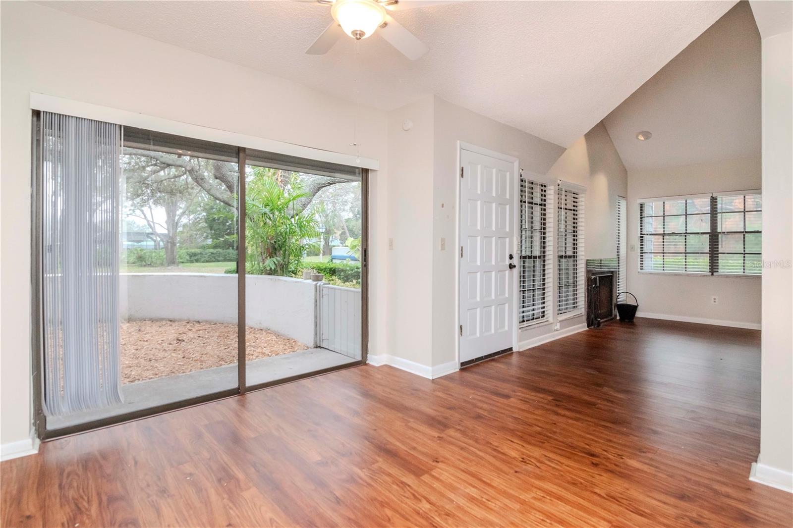 This two-bedroom, two-bathroom home offers approximately 1,090 square feet of living space. The property is a corner unit with vaulted ceilings, providing an open and airy atmosphere. The living area features a cozy fireplace, abundant natural light, and plenty of storage space. The home's exterior boasts a covered entry, allowing for a protected and welcoming entryway. On the first floor, residents can enjoy a private outdoor seating area, perfect for relaxing or entertaining. Upstairs, a private balcony on the second floor provides additional outdoor living space. Covered parking is available, offering protection from the elements. Residents will also appreciate the convenience of being close to the community pool, as well as the nearby Bardmoor Promenade and Seminole City Center, providing easy access to shopping, dining, and other local amenities. One or more photos have been virtually staged.