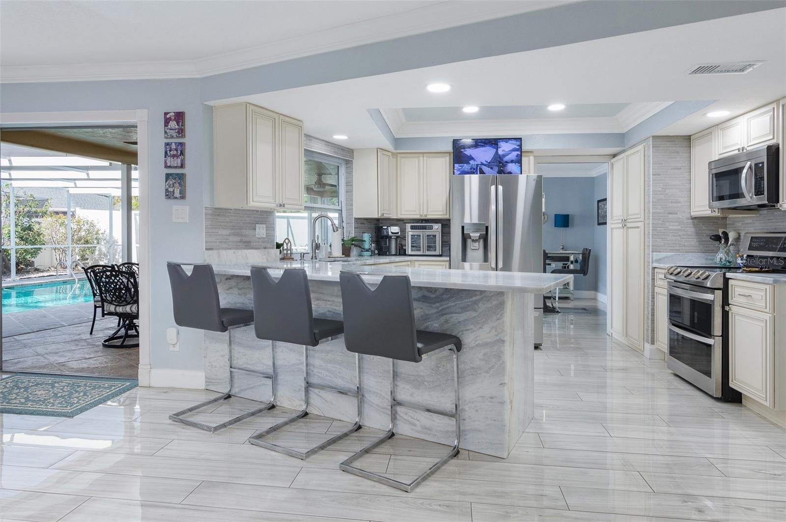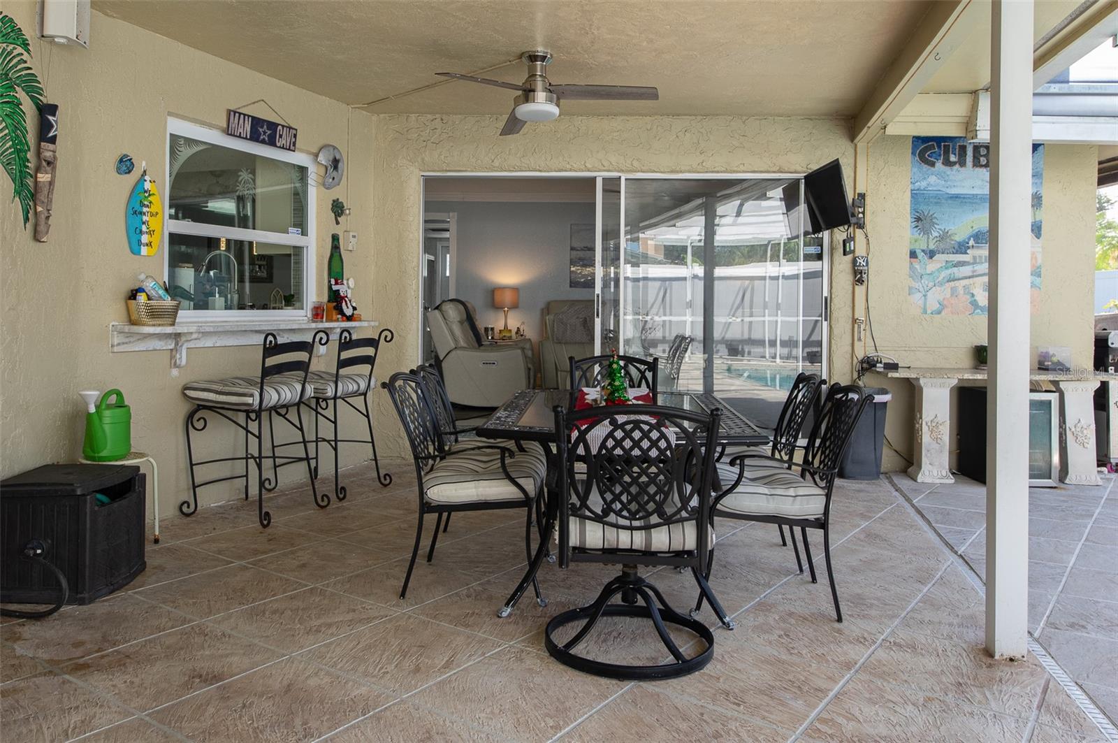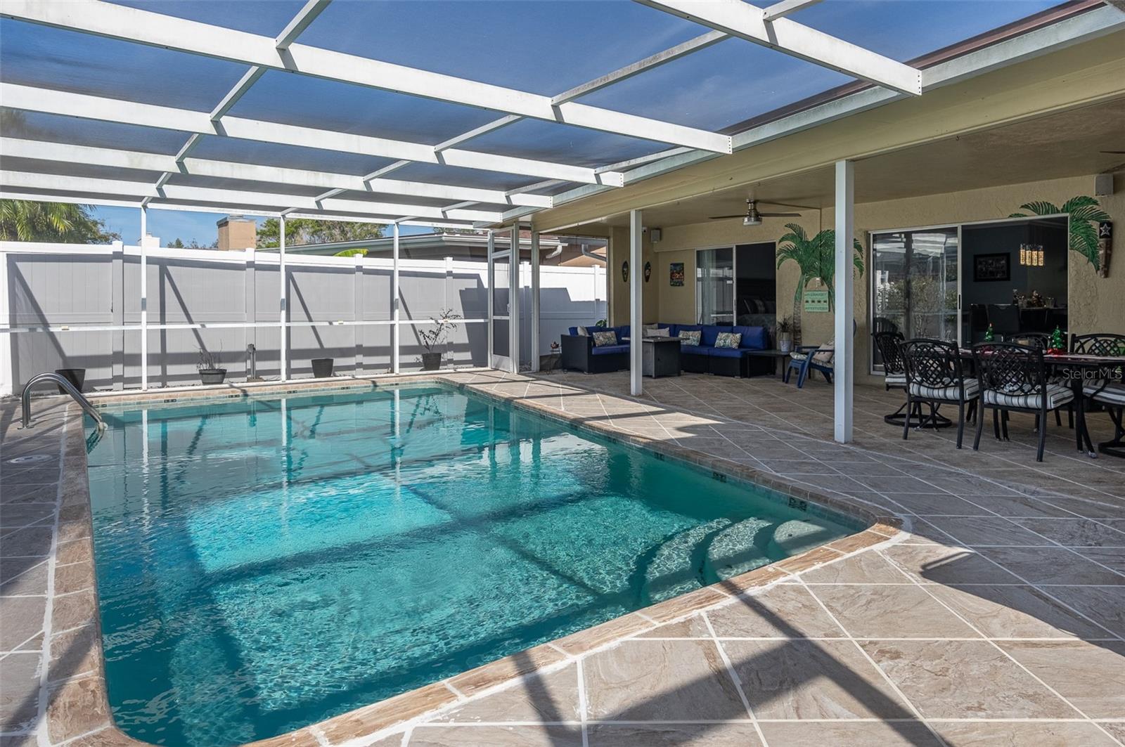 During the 2024 hurricane season, the home stayed high and dry. Whether entering house through the two car garage or the front door, this house is so welcoming, you want to kick your shoes off and relax. You are home. The split floor plan makes the primary suite even more of a private oasis. The kitchen appliances, HVAC, and water heater were replaced in 2022. This house has everything you need for the Florida lifestyle. This house is perfect for entertaining with it's open design. The dining room, family room, and the primary bedroom have sliding doors that open to the pool. This allows for an easy flow and incorporates the patio/pool area as more utilized living space. The patio has plenty of covered area to relax in the shade and plenty of area to relax and perfect your tan.