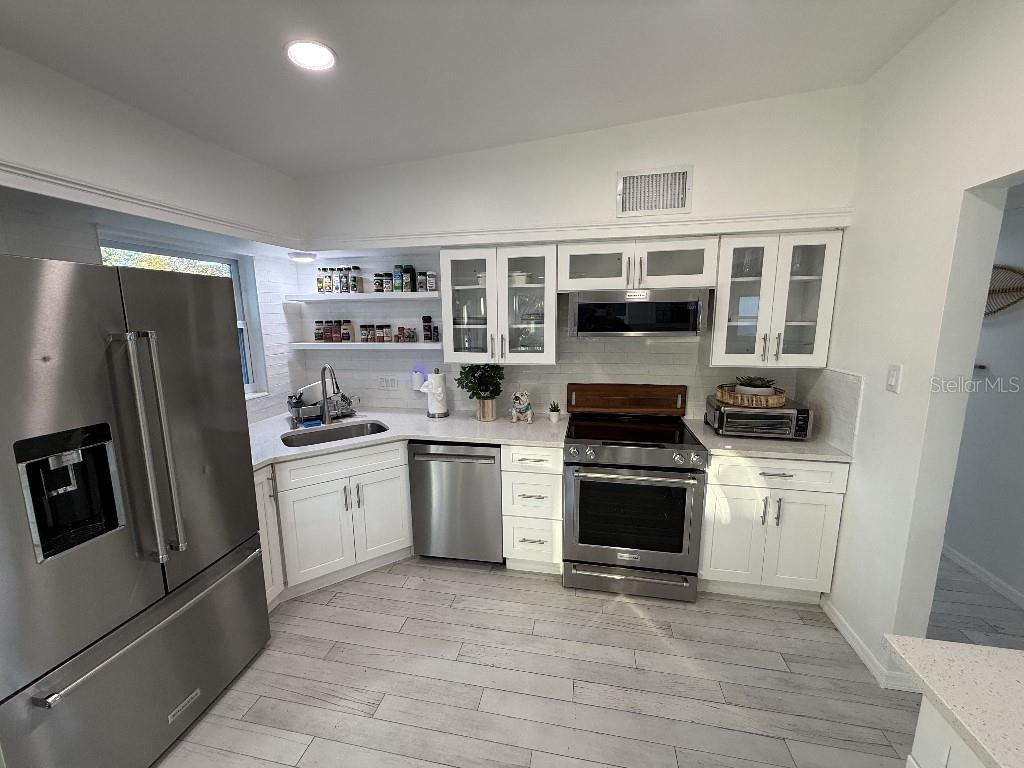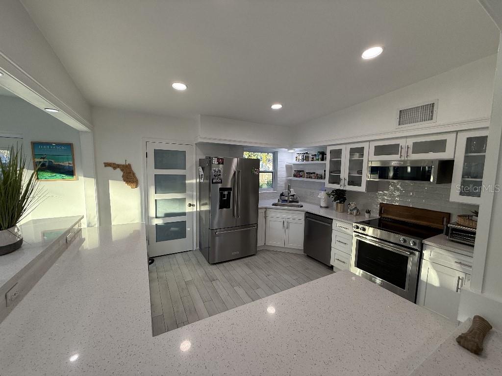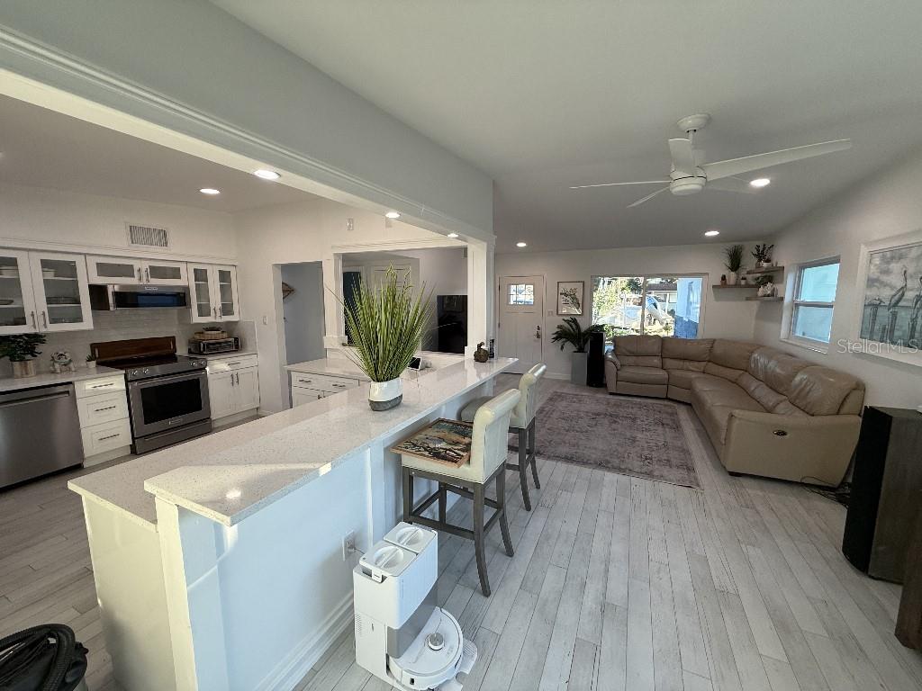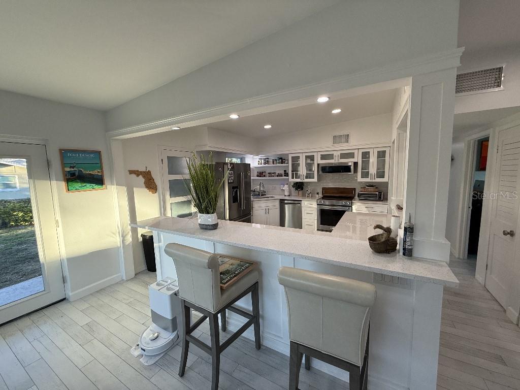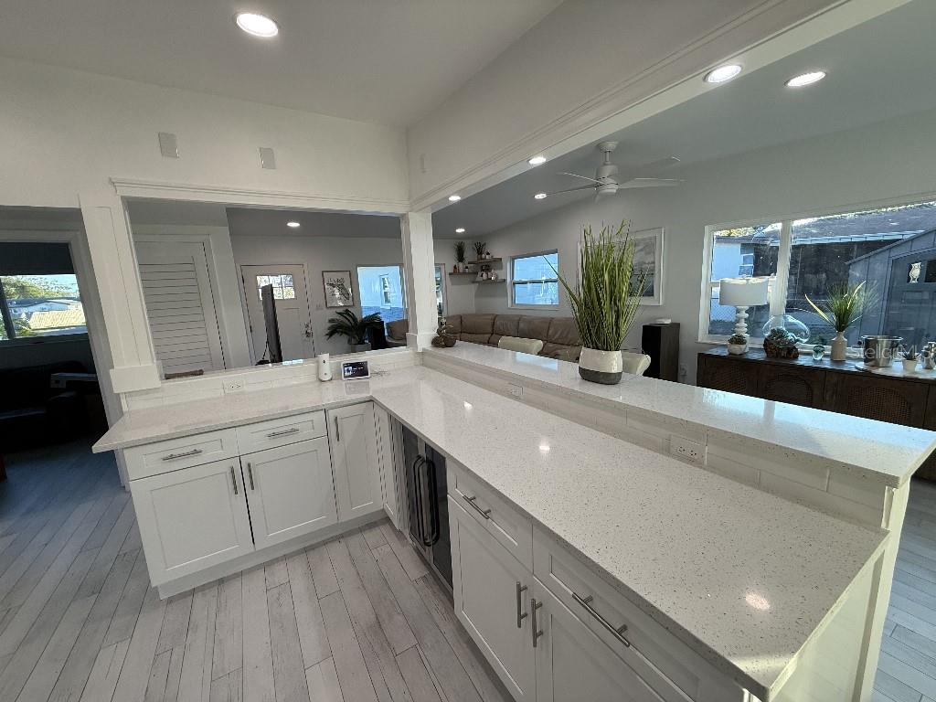 Welcome to 8401 Jacaranda Ave, a stunningly renovated 3-bedroom, 2-bathroom home in the heart of Seminole, FL! This meticulously updated property offers the perfect blend of modern elegance and functionality. Situated just 10 minutes from the beach and steps away from Bardmoor Golf Course and Bayou Club, this home is a dream for those seeking both relaxation and recreation. Every detail of this home has been thoughtfully upgraded, including new windows, doors, and energy-efficient LED lighting throughout. The interior features wood-look tile floors, fresh paint, and a large, spacious kitchen with sleek light quartz countertops, custom cabinetry, and premium KitchenAid appliances. This kitchen now boasts a beautiful wine and beer fridge, perfect for entertaining. Additionally, a new 200-amp electrical service and a tankless water heater enhance the home’s modern functionality. The open floor plan is ideal for hosting guests or enjoying cozy evenings at home. Step outside to an amazing outdoor area complete with a large gazebo and fire pit, perfect for gatherings or relaxing under the Florida sky. The property sits on a large oversized lot with a spacious driveway and an impeccably finished garage with an epoxy-coated floor, perfect for storage or projects. The bedrooms feature generous closets, while the bathrooms have been updated with modern fixtures and finishes. Additional upgrades include a fairly recent roof and a new HVAC system. With proximity to top-rated schools, shopping, and dining, this home offers unmatched value. Best of all, the property is high and dry, with NO FLOOD INSURANCE REQUIRED, and has never sustained storm damage. Located in a fantastic area of Central Pinellas, this home is a true gem. The seller is motivated and has listed this home competitively. Don’t miss your chance to own this incredible Seminole property—schedule your showing today and experience the Florida lifestyle at its finest!