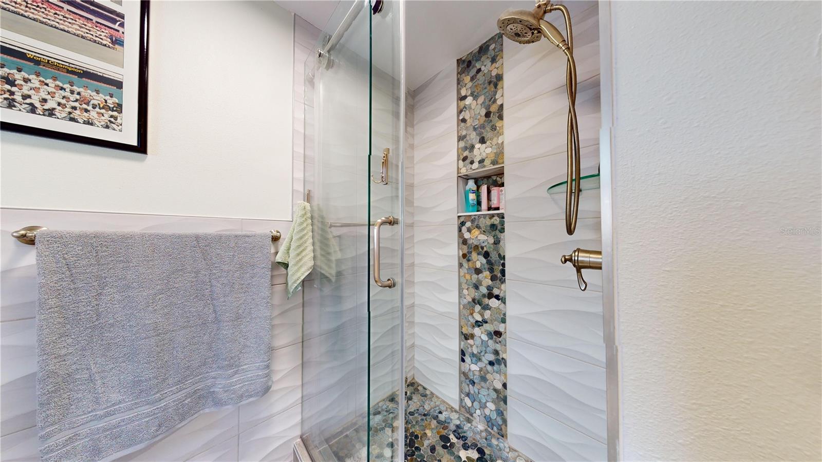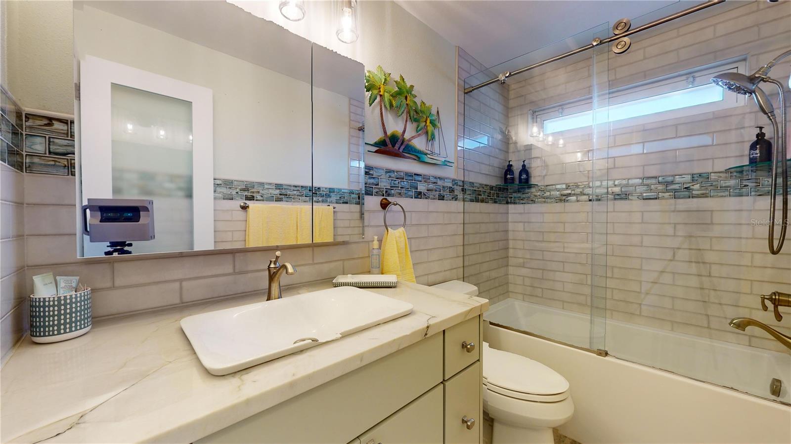 OFFERING $10K SELLER CREDIT TO BE USED AT BUYER’S DISCRETION FOR RATE BUY DOWN, CLOSING COSTS, HOME DÉCOR, OR 3RD BEDROOM. Located near Boca Ciega Millenium Park and in highly desirable Canterbury Chase, this gorgeous, fully remodeled home was HIGH AND DRY THROUGH 2024 HURRICANE SEASON! No detail has been spared! This 2 bedroom, 2 bath split floor plan offers ultimate flexibility with a bonus room that has 3rd bedroom potential, currently being used as a home office. The newly designed kitchen (2023) has soft close custom cabinets and drawers, granite countertops, top of the line Tuscan Stainless Steel Samsung appliances and "extras" seen mostly in magazines: Ferguson's Plumbing Flexible Touch faucet, Elkay Quartz Composite double sink, custom shelving, and more! Along with a new flat roof, a new tile roof was installed in 2020, as well as a hurricane rated garage door with a new opener, and a new fence! But it doesn't stop there! In 2021 the house received a whole house water softener, new gas water heater, wind rated exterior doors, and plantation shutters on all windows. Both bathrooms were refreshed in 2023 with Diamon-Fusion Lifetime Warranty glass shower doors, commercial grade power-flush toilets, and Ferguson's Plumbing Brizo Fixtures. During the update, bath #2 was fitted with a 60X30 soaking tub that is supported by concrete installation. Upgrades for the exterior are just as impressive! The exterior of the home has recently been painted, super gutters have been installed, and the garage floor, driveway, and sidewalk have received an epoxy coating that carries a lifetime guarantee. HVAC (2015) is maintained every 6 months. LG Washer & Dryer set (2022) conveys with purchase. Live close to white sand beaches, shopping, and restaurants! Check out the virtual tour at https://my.matterport.com/show/?m=ahXFjVxKkCZ