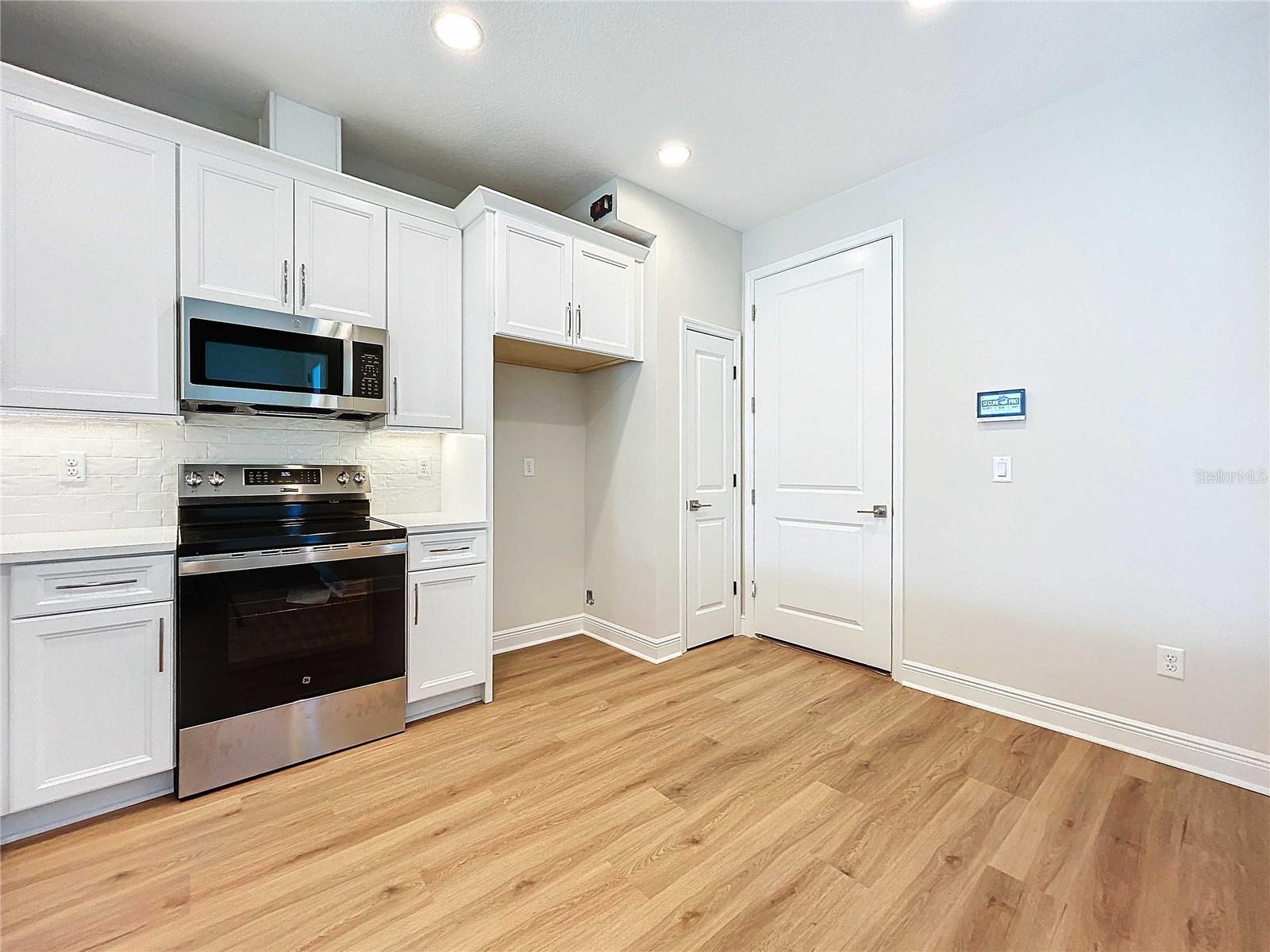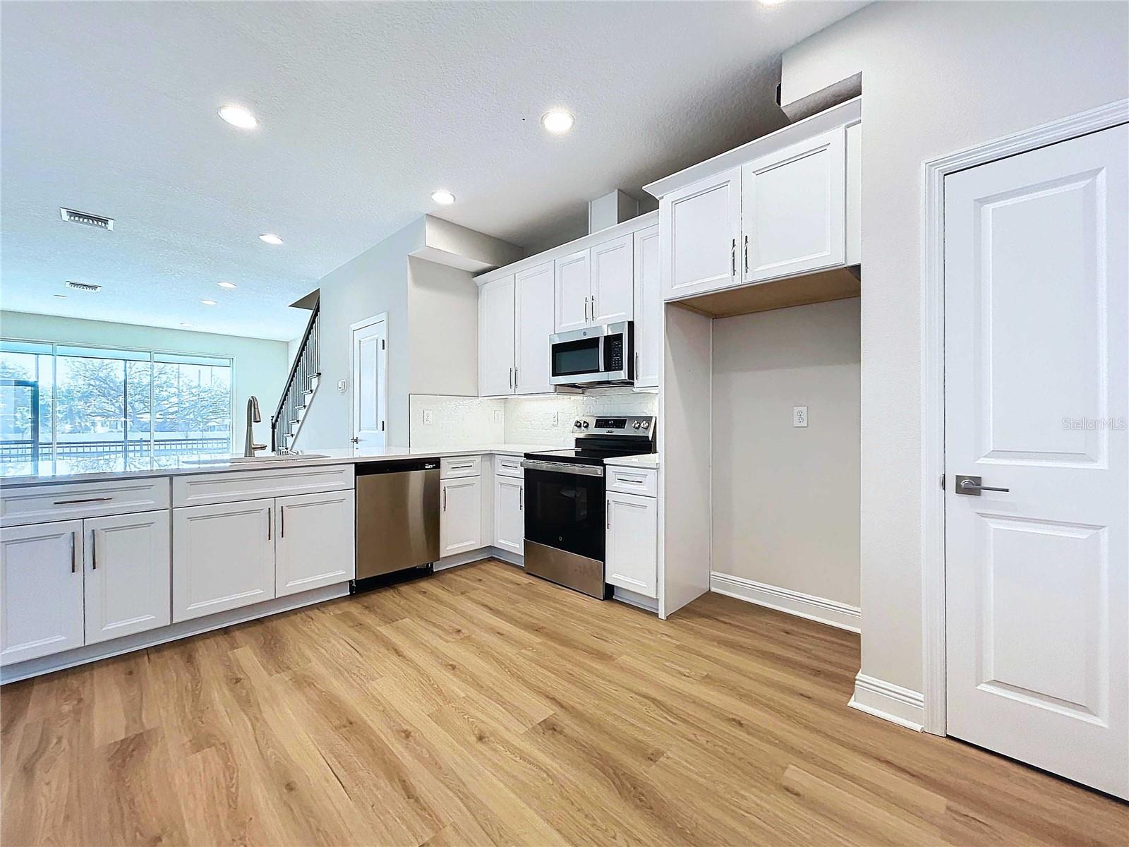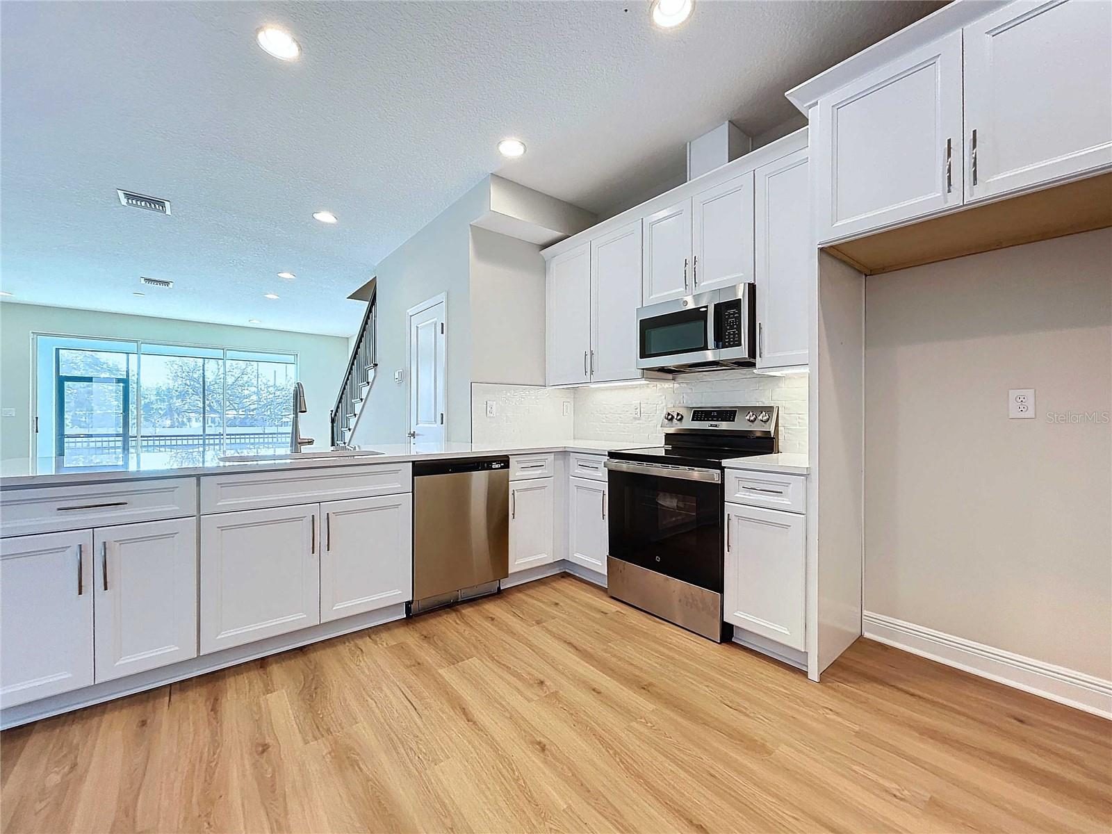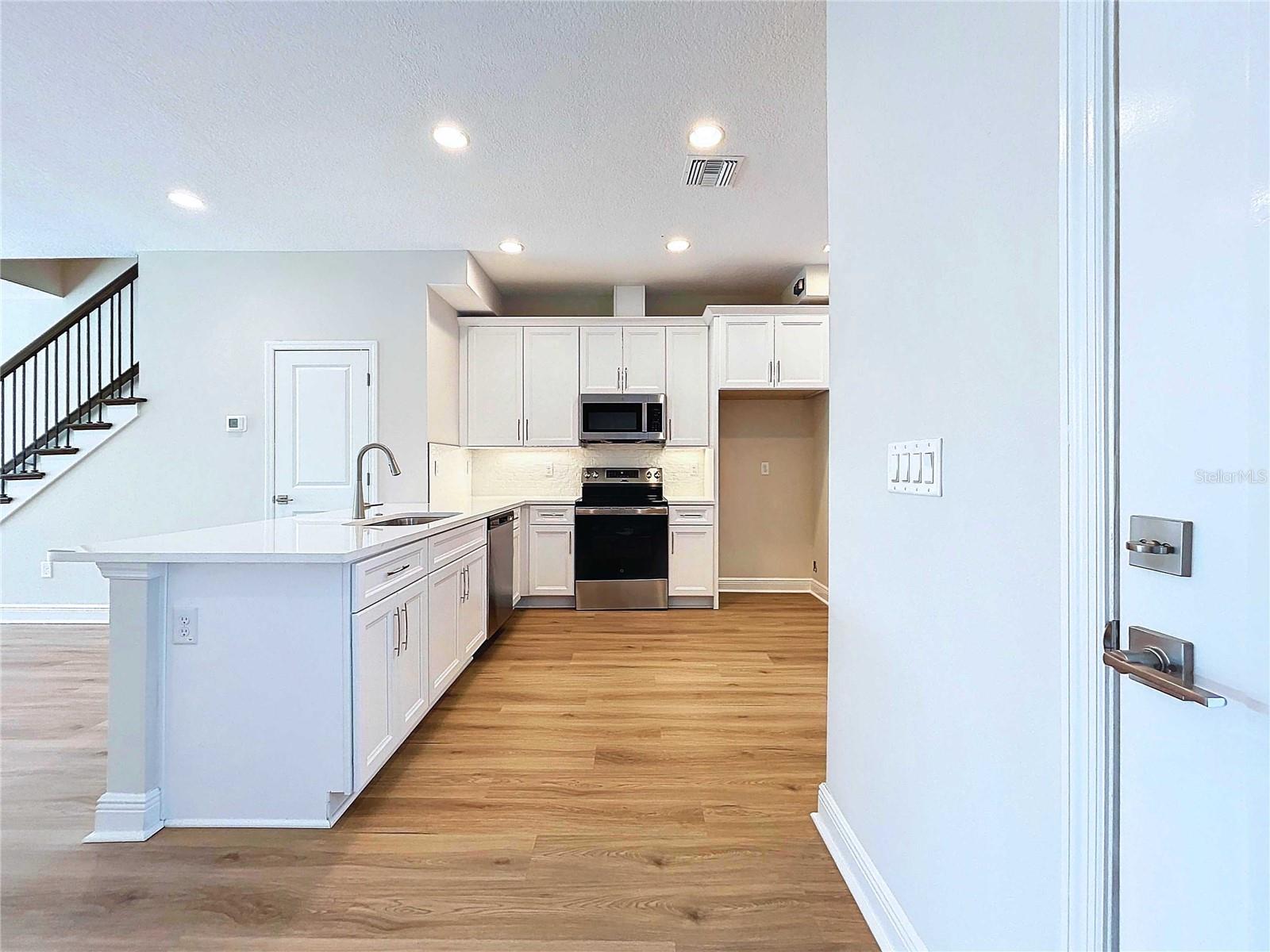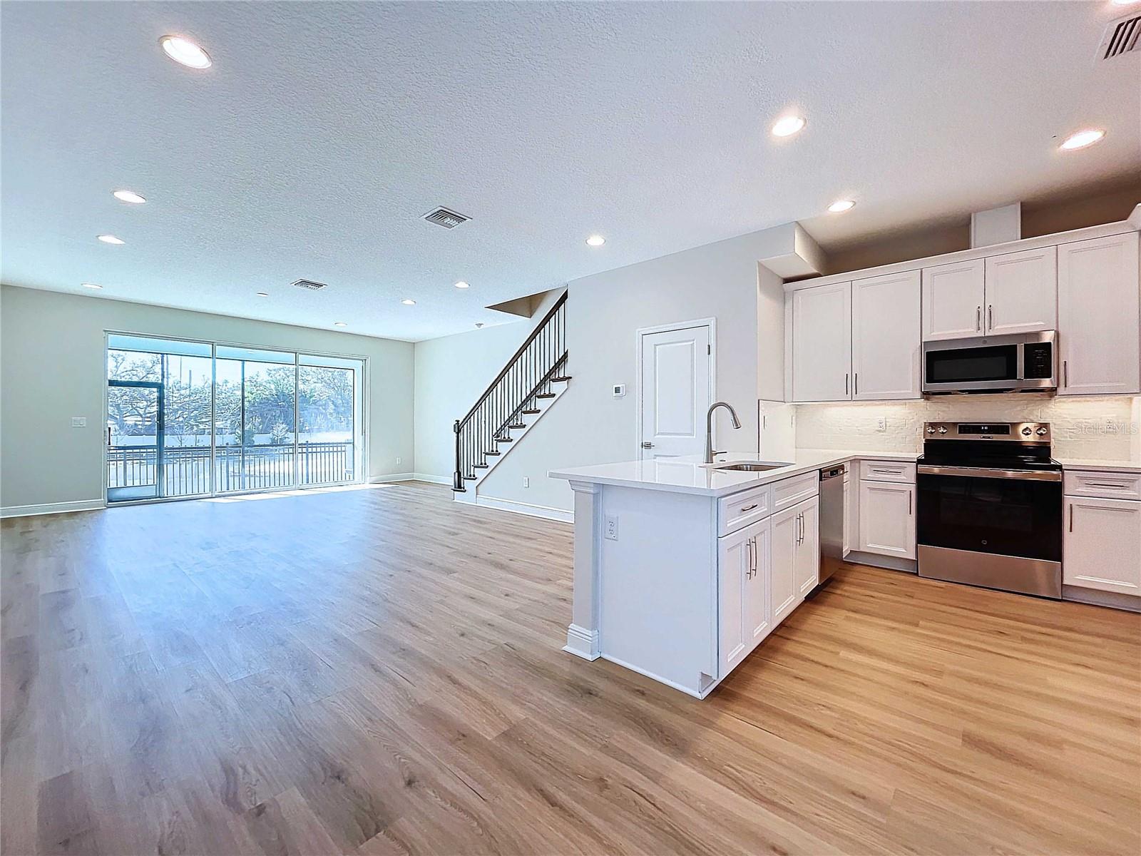 Discover this stunning new construction townhome in Seminole, FL, offering modern elegance and a maintenance-free lifestyle. This beautifully designed 3-bedroom, 2.5-bathroom home features a spacious 2-car garage and a screened-in covered lanai overlooking a peaceful pond with a large fountain, creating a serene backdrop for everyday living. Inside, luxury vinyl flooring flows throughout the home, complementing the bright white cabinets and quartz countertops in the open-concept kitchen. The primary and guest bathrooms both offer double vanities for added convenience and style. With a low HOA, you can enjoy a carefree lifestyle in this thoughtfully crafted townhome. Experience comfort, style, and scenic views all in one exceptional property.