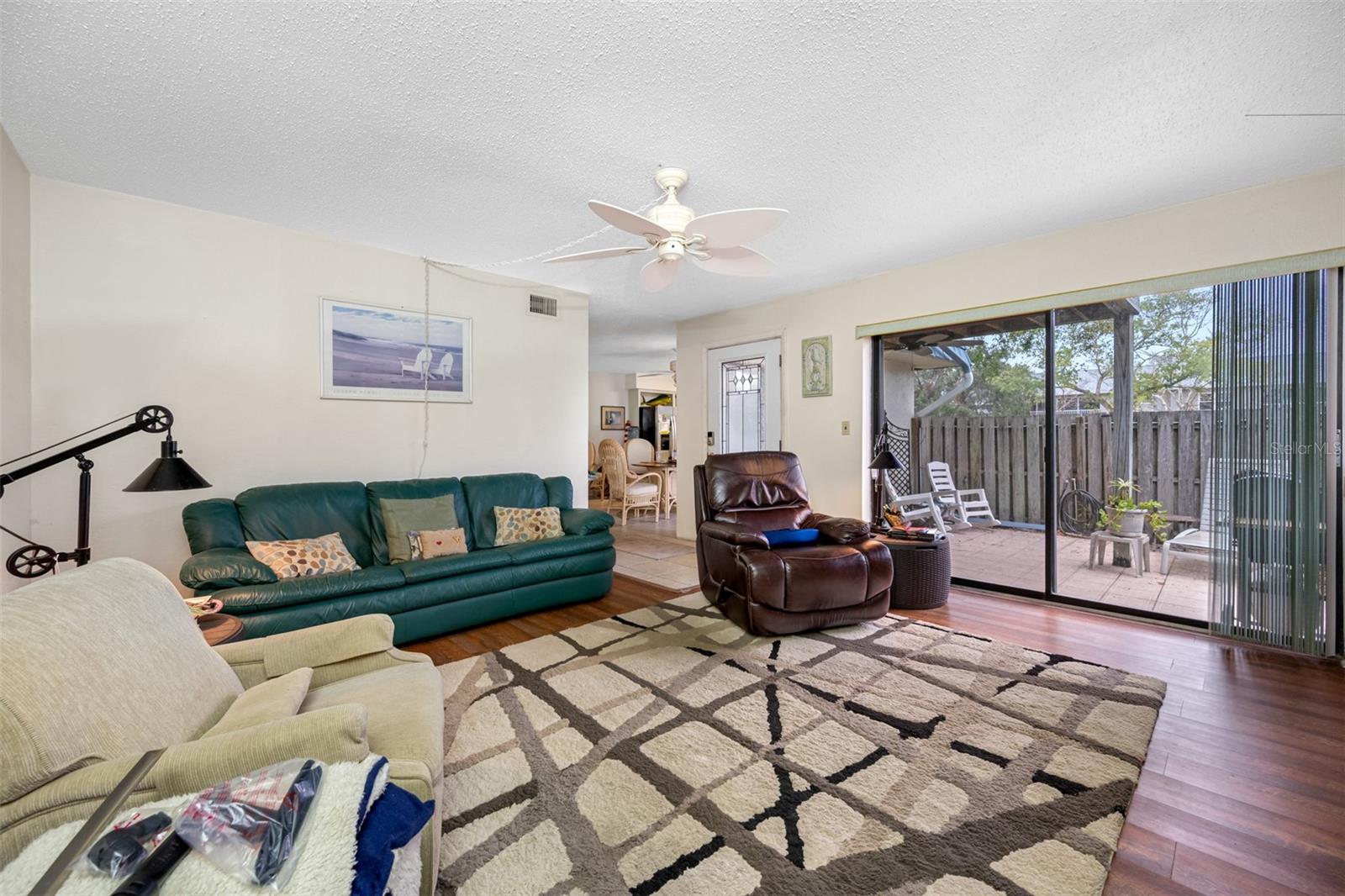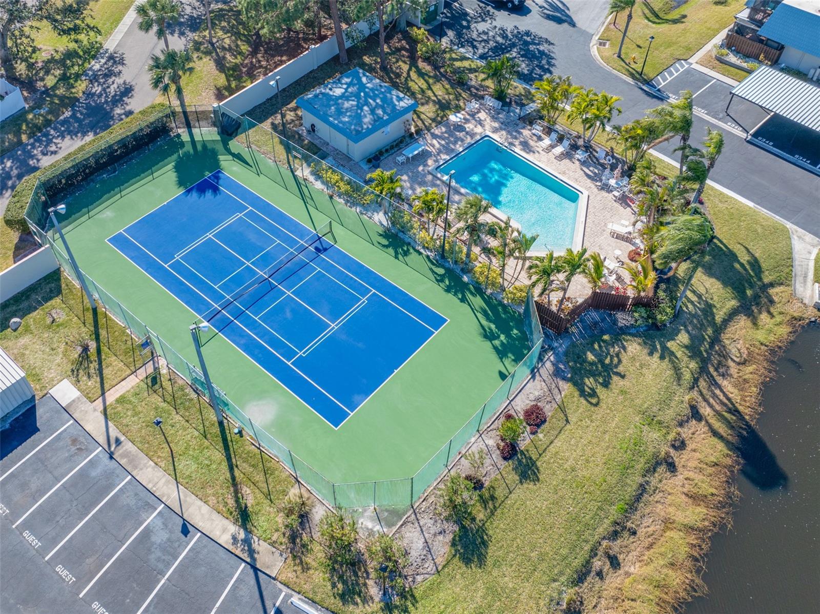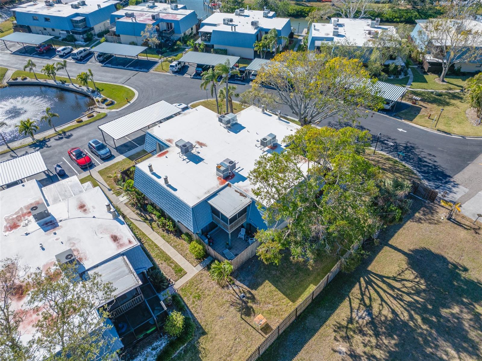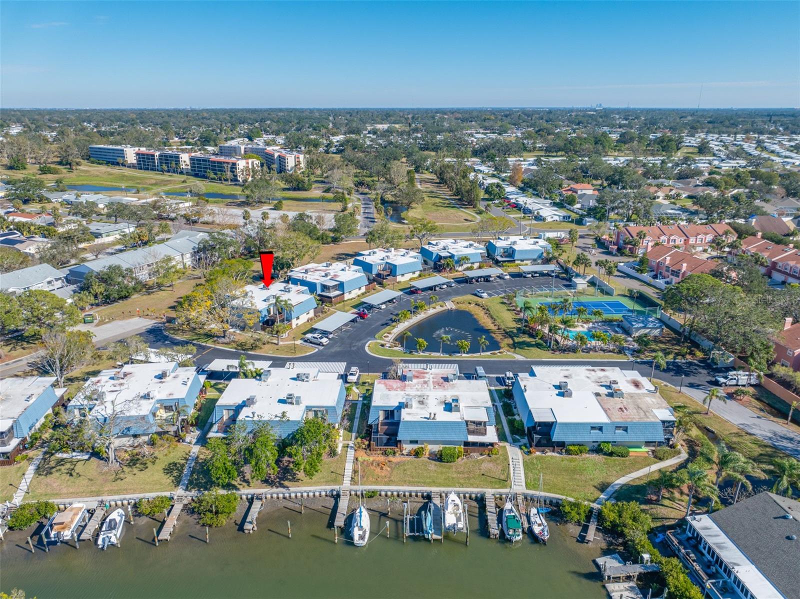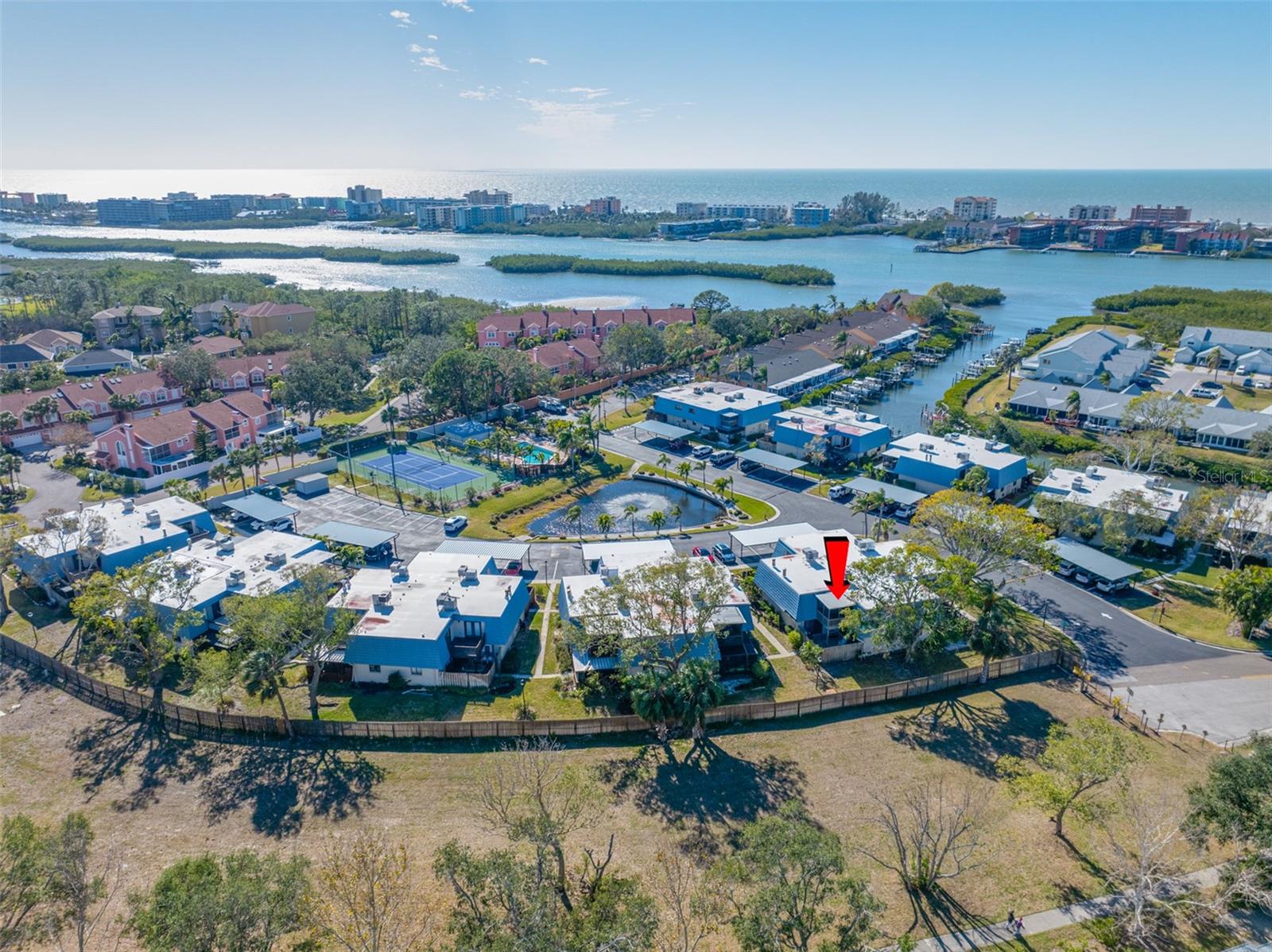 Catalina Cove is a quiet 40 unit townhome community off the beaten path. Low HOA fees of $320. All ages. Waterfront community. This unit does not have a water view. It is in flood zone x500 and sustained NO damage or flooding from hurricanes. This home is priced right so you can afford to update. The first floor is the living room with sliders out to the open porch, dining room, full bathroom and a nice large kitchen. The 2nd floor has 2 large bedrooms with double closets and a full bathroom. Master has sliding doors out to the 2nd floor screen enclosed balcony. View out the back is a lot of green space giving you a private feel. Roof on this building was replace in 2023 and paid by owner. Community has a pool and tennis courts.